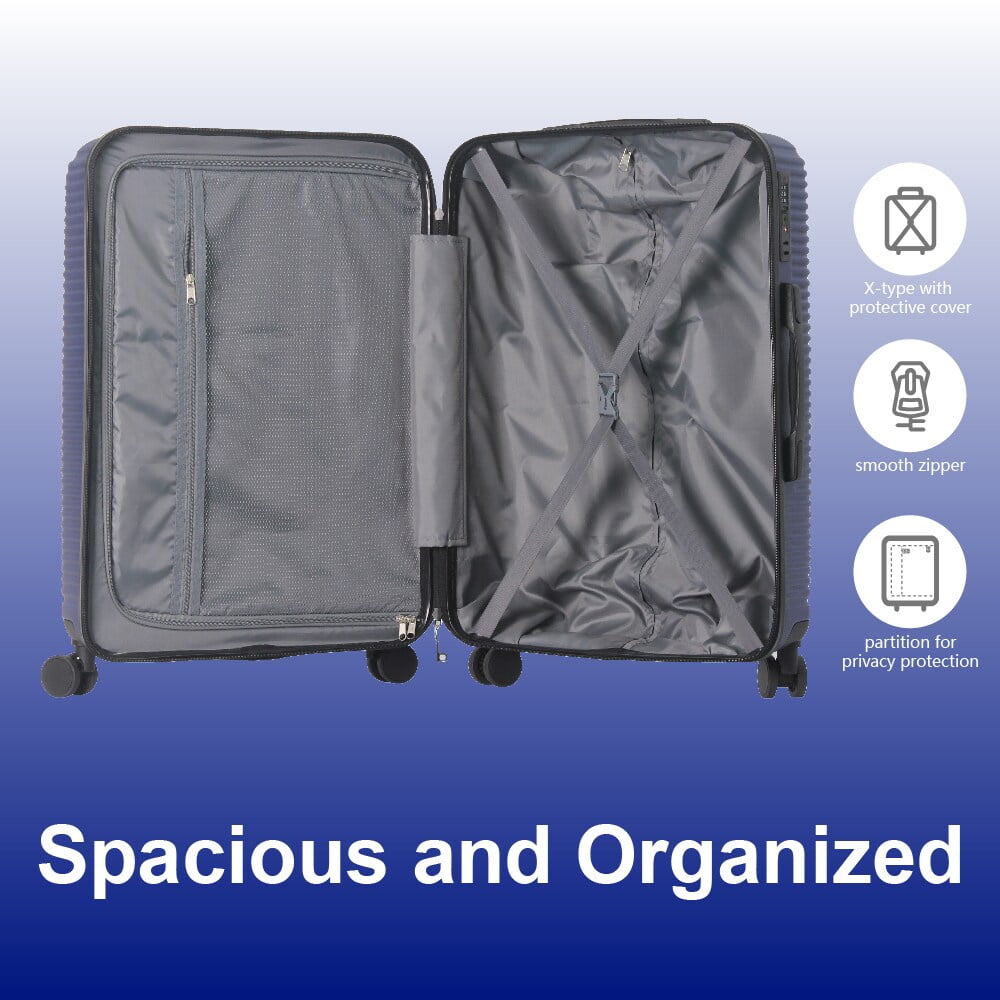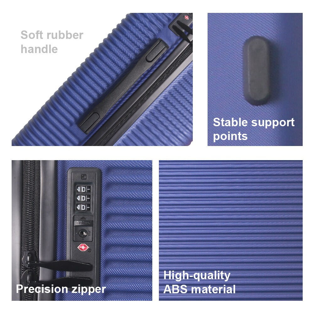 MAYEERTY 3-Piece ABS Luggage Set, Spinner Wheels, TSA Lock, Lightweight Suitcase, Dark Blue