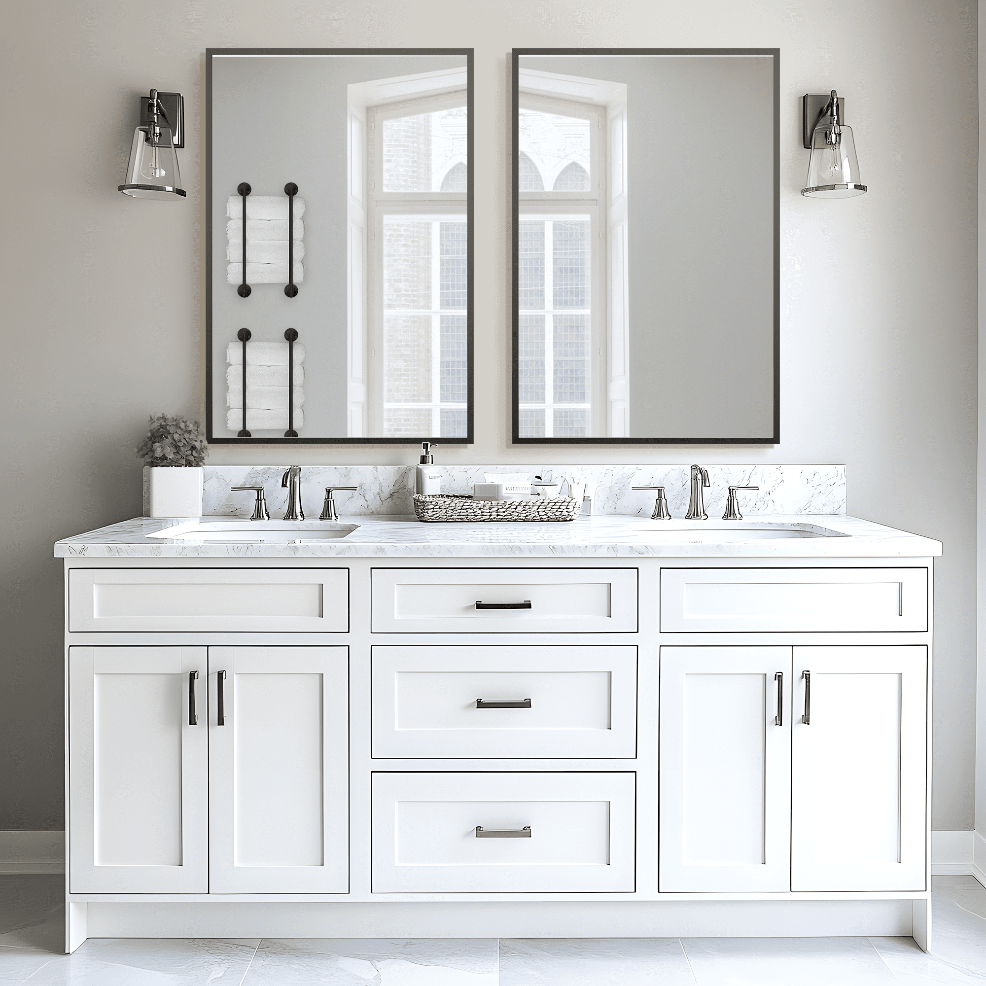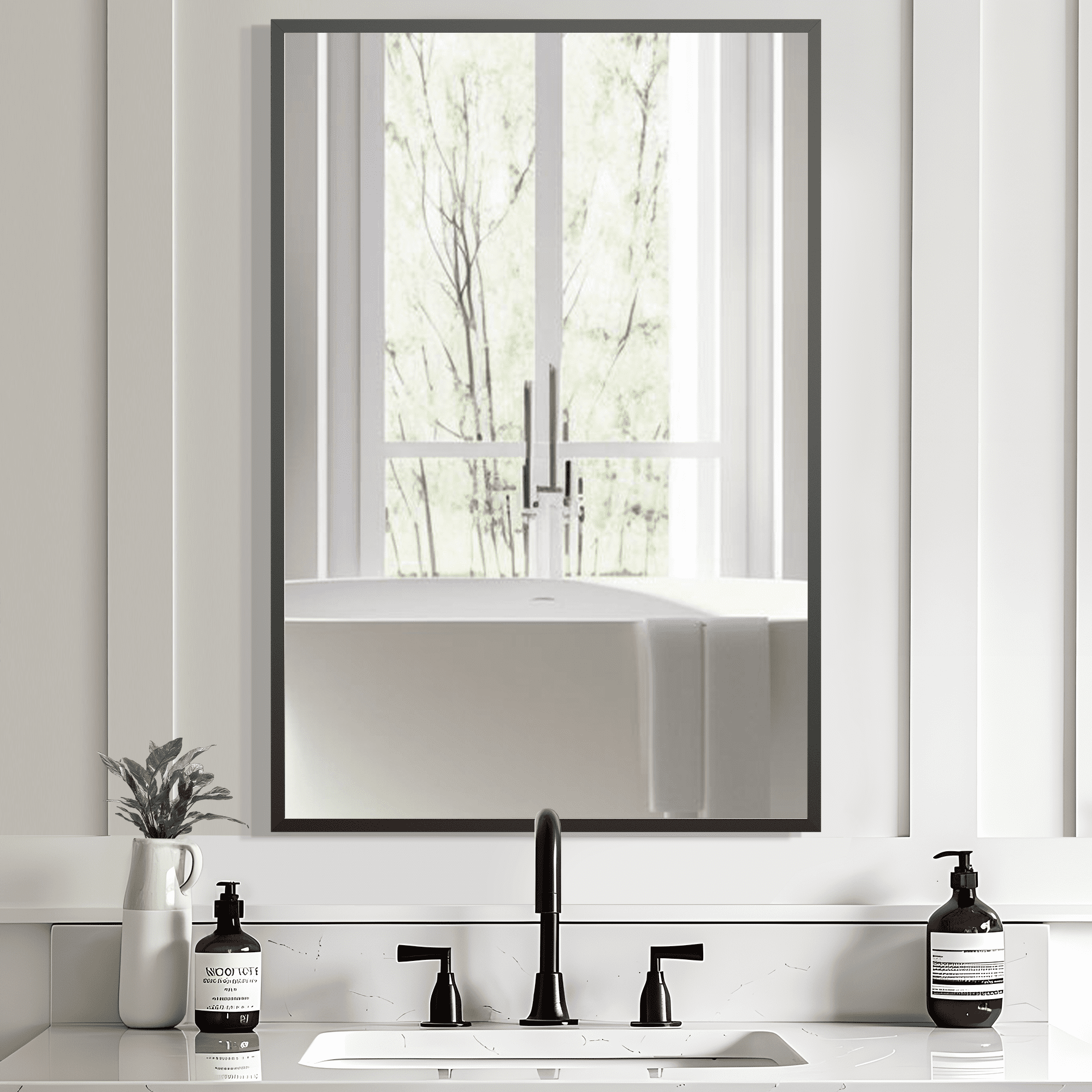 MAYEERTY 36×24 Aluminum Alloy Thin-Edge Right-Angle Rectangular Black Wall Mirror with Double-Sided Installation