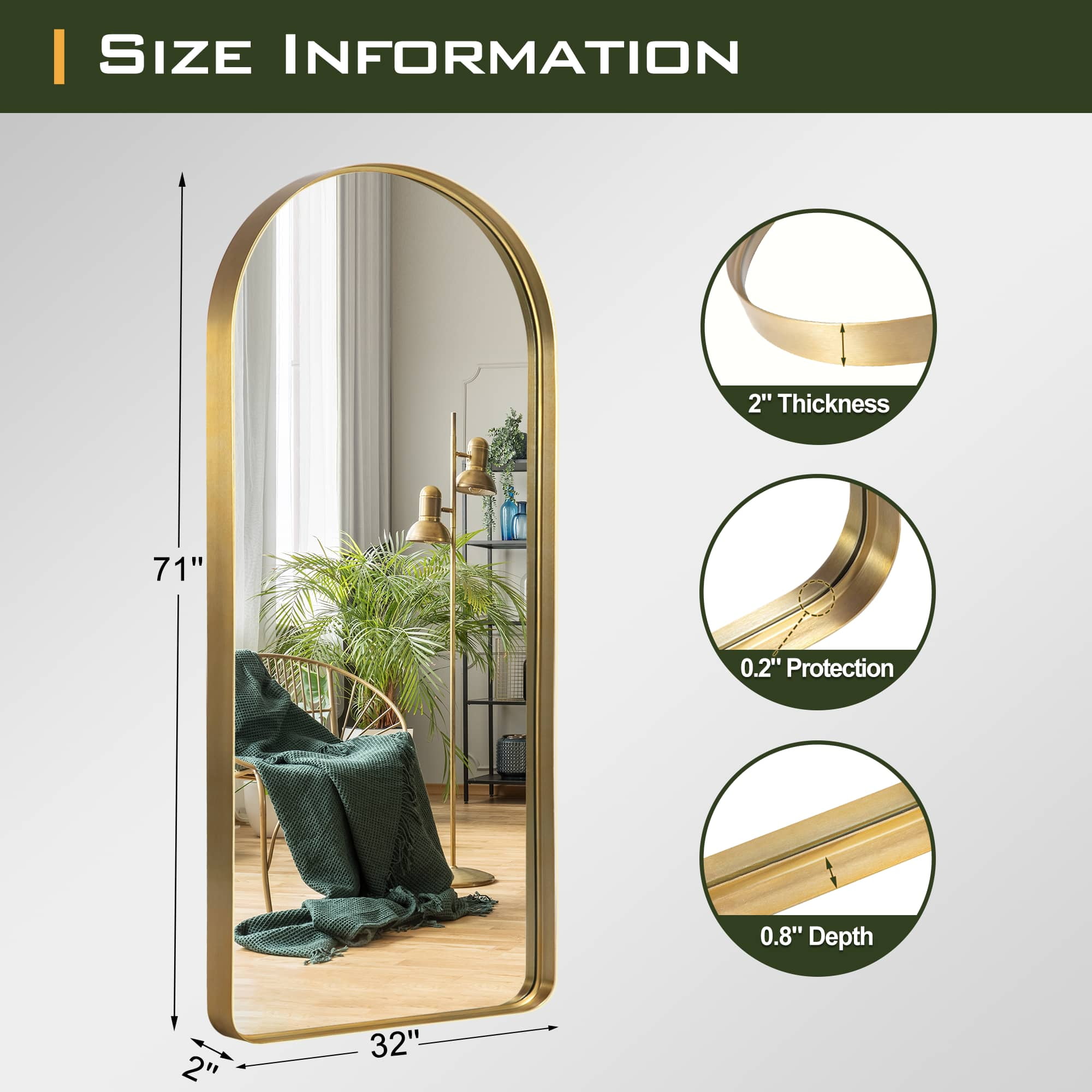 MAYEERTY 71″ × 32″ Arched Full Length Mirror Aluminium Alloy Floor Mirror, Gold