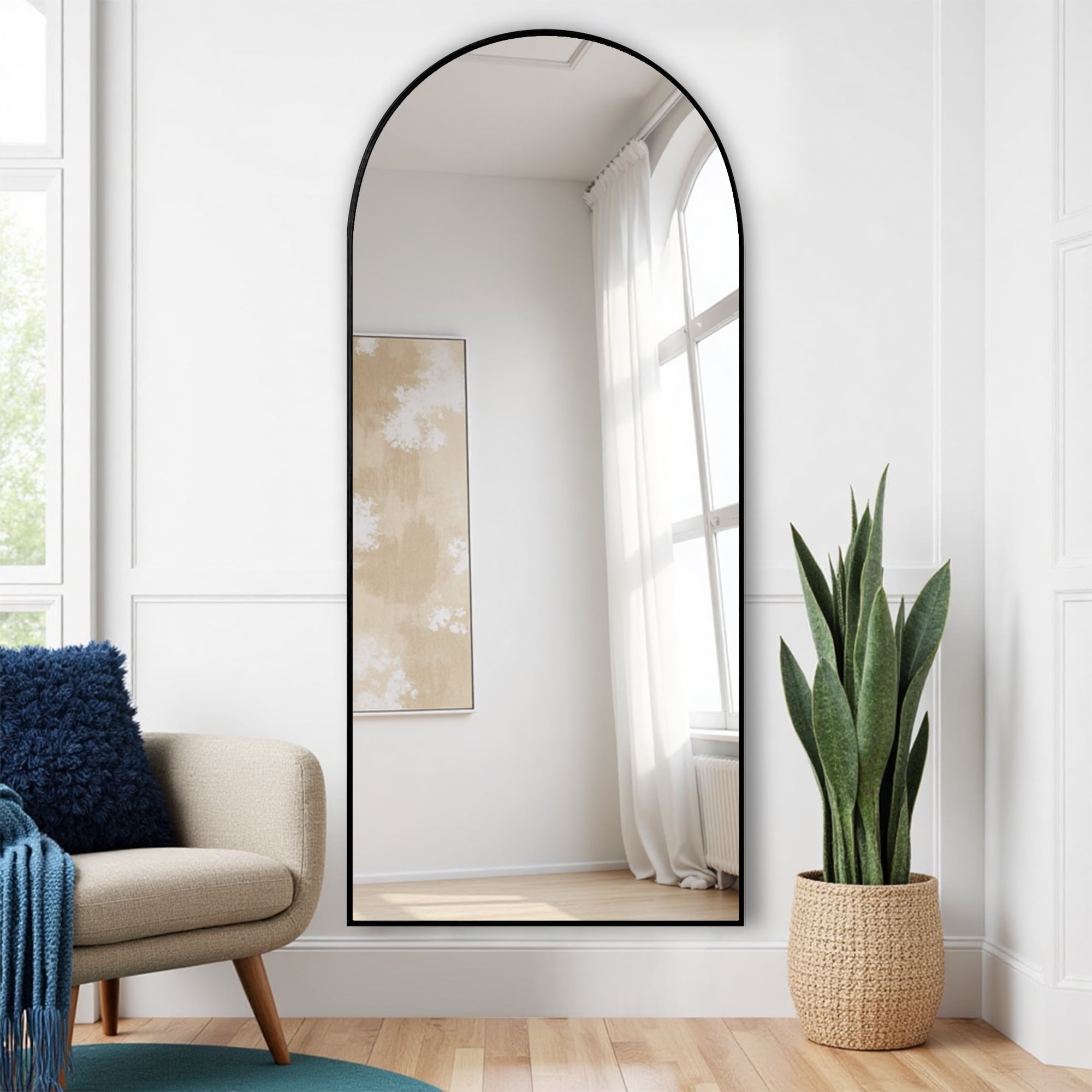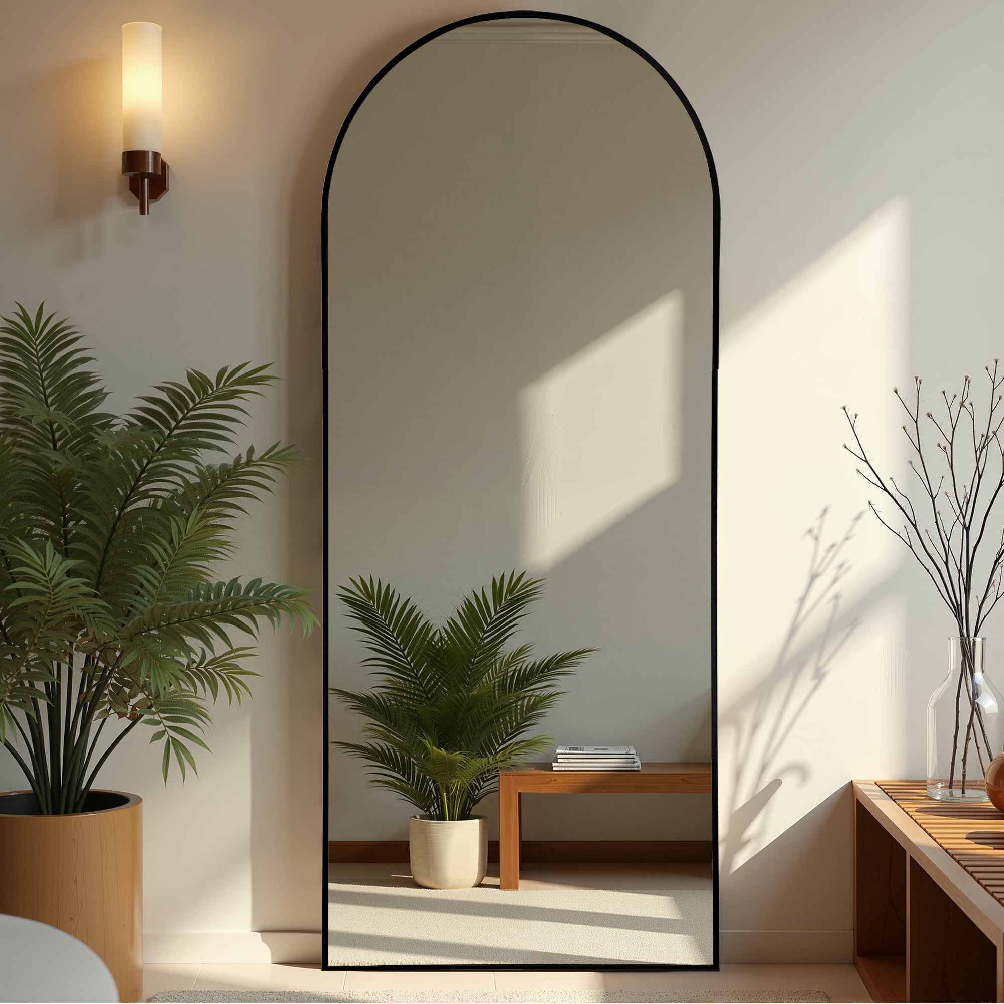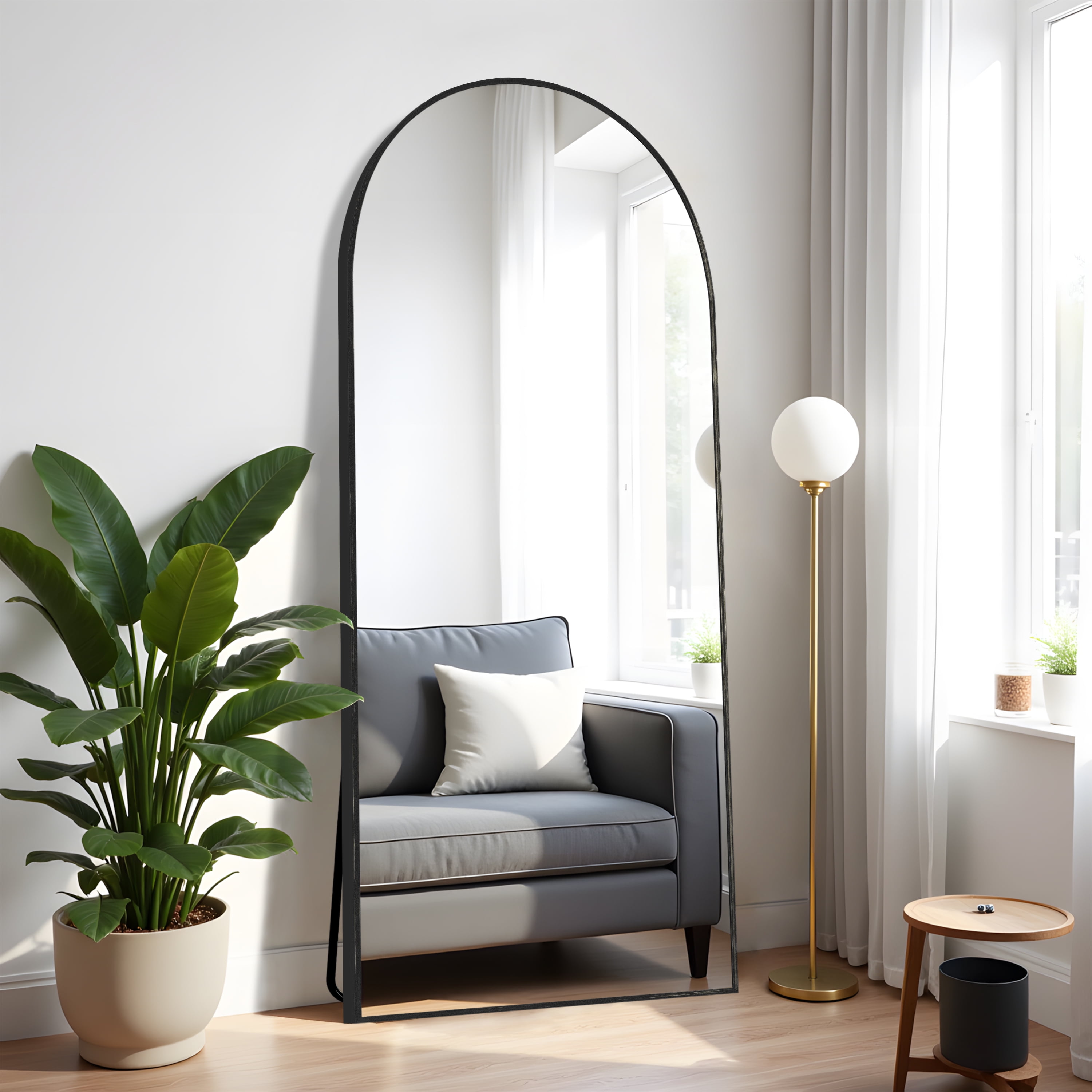 Elevate your space with this Aluminum Alloy Arched Full – Length Mirror, where sleek design meets lasting durability. Crafted from premium aluminum alloy, the black arched frame resists rust and scratches, ensuring long – lasting elegance. Its classic arched silhouette brings a modern, refined touch, perfectly fitting bedrooms, entryways, and dressing areas. Beyond delivering clear, distortion – free reflections for daily outfits, it visually expands spaces, becoming a stylish accent. Paired with a hassle – free floor – standing stand, no wall drilling needed—effortlessly infuse sophistication into your home.