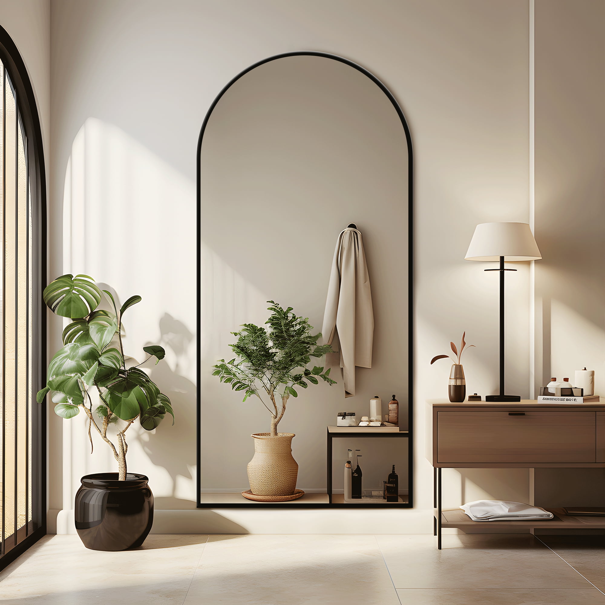 MAYEERTY 71″x32″ Modern Aluminum Alloy Arch Full Length Floor Mirror Full Oversize Mirror,Black