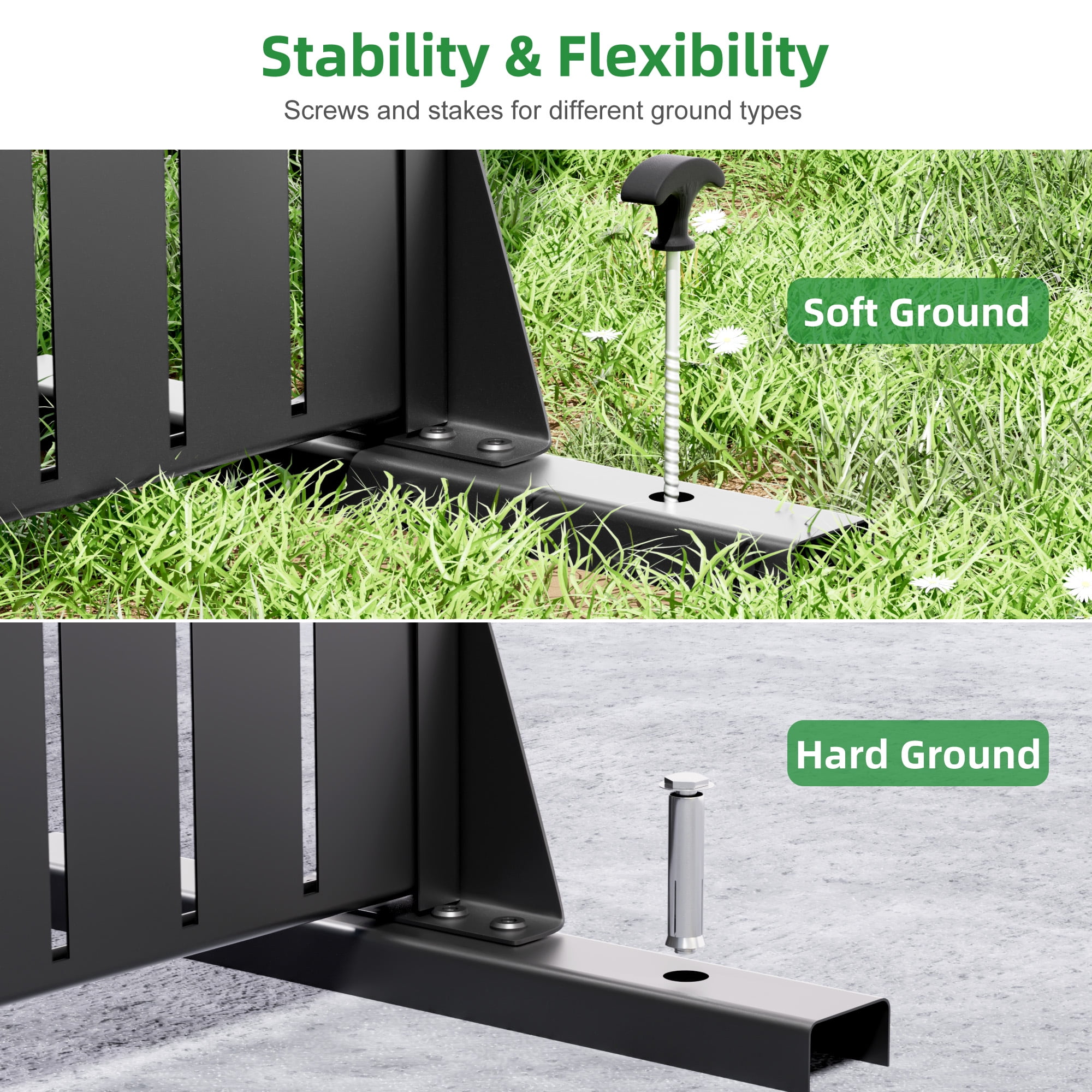 Sturdy and durable material: Our outdoor privacy screen uses a high-strength metal frame, which is anti-oxidation, corrosion-resistant, and not easy to fade, providing reliable protection for your outdoor space. Convenient installation design: This screen adopts a modular splicing design, without the need for complex tools, you can easily complete the assembly by following the clear installation guide. Even users with no installation experience can easily get started. Height adjustable function: Considering the needs of different scenarios, the height of the screen can be flexibly adjusted according to your wishes. Whether it is to build a private camping rest area or to create an exclusive leisure corner in the garden, you can adjust the height to meet your personalized requirements.
