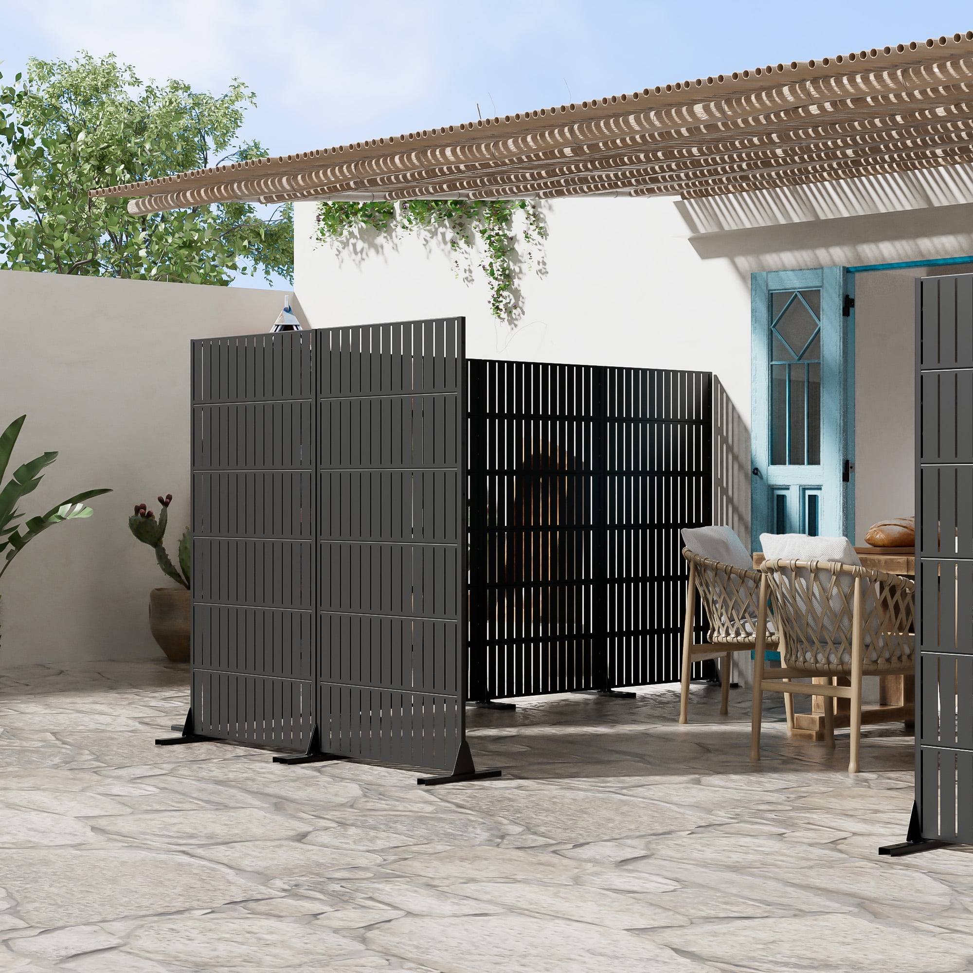 MAYEERTY 72 × 35in Outdoor Privacy Screen with Stand Metal Balcony Decorative Screen, Black