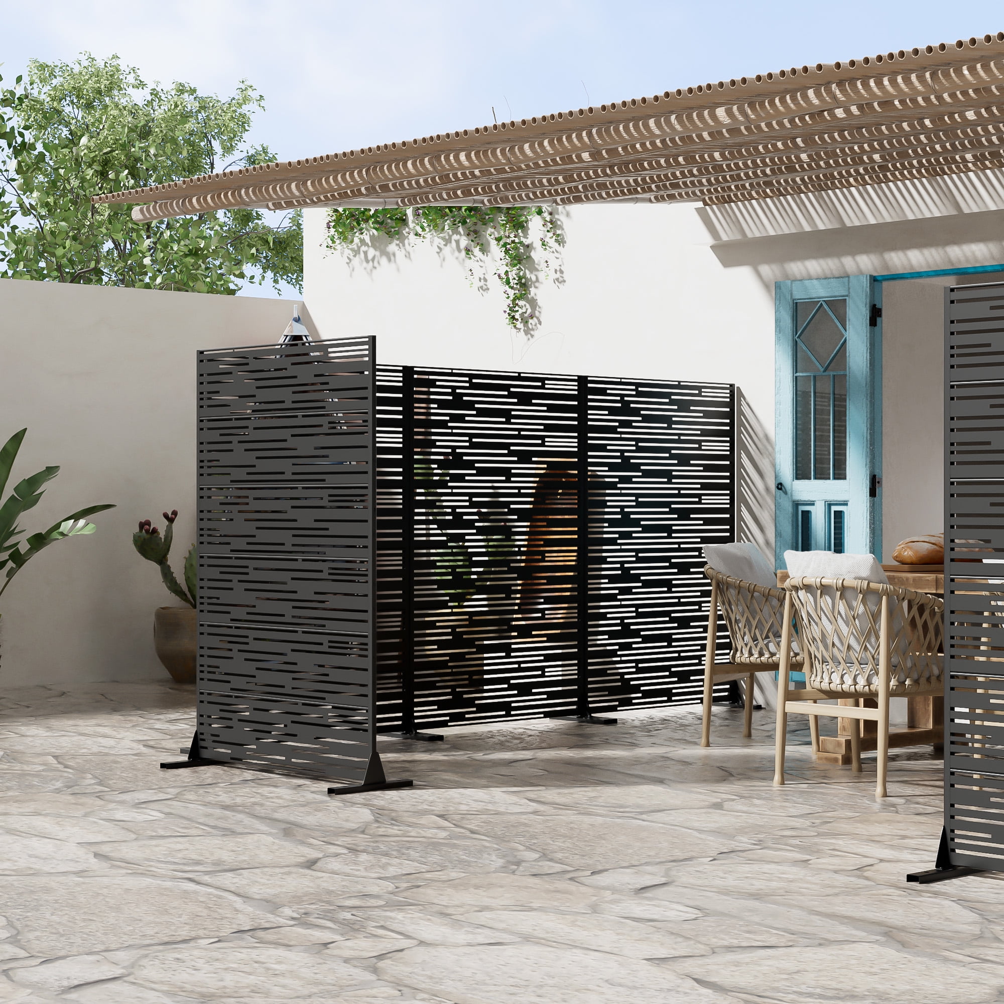 MAYEERTY 72 × 47in Outdoor Privacy Screen with Stand Metal Balcony Decorative Screen, Black