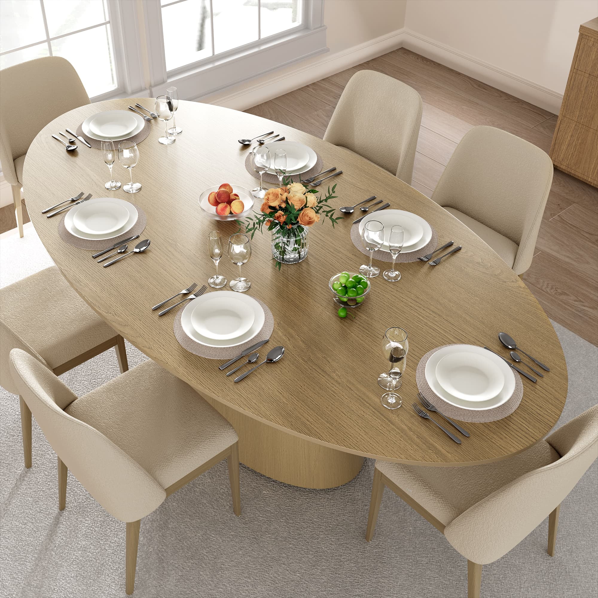 Crafted from premium solid wood with a hand-finished wood grain, this table adds natural beauty to any space. Its oval design fosters conversation and seats 6–8 guests comfortably, ideal for family meals or gatherings. The sturdy pedestal base ensures stability, while the scratch-resistant, easy-to-clean finish maintains long-lasting beauty. Blending warm, timeless aesthetics with practical durability, this table is a versatile centerpiece for every occasion.