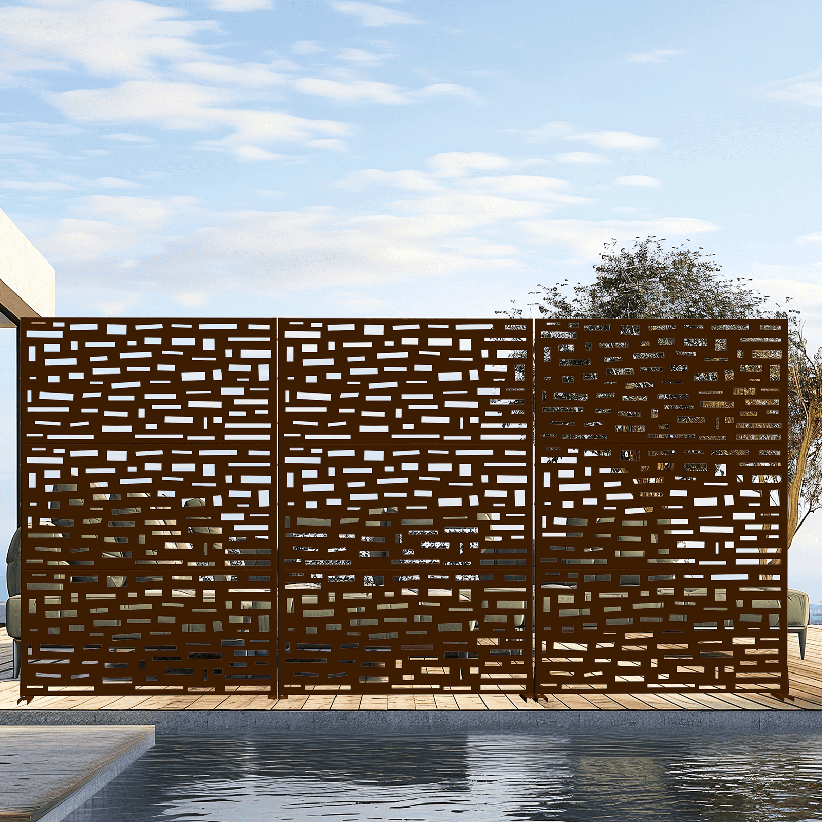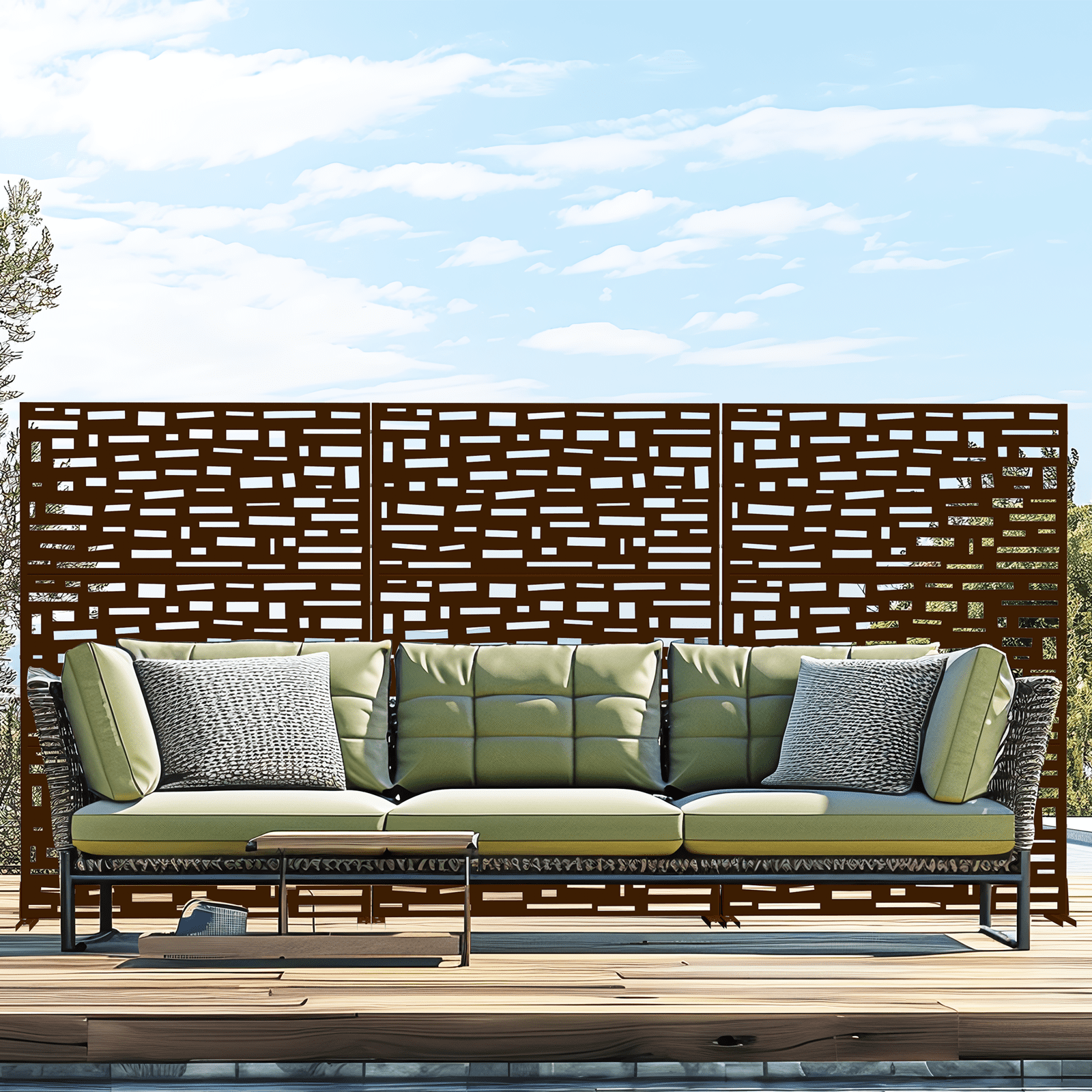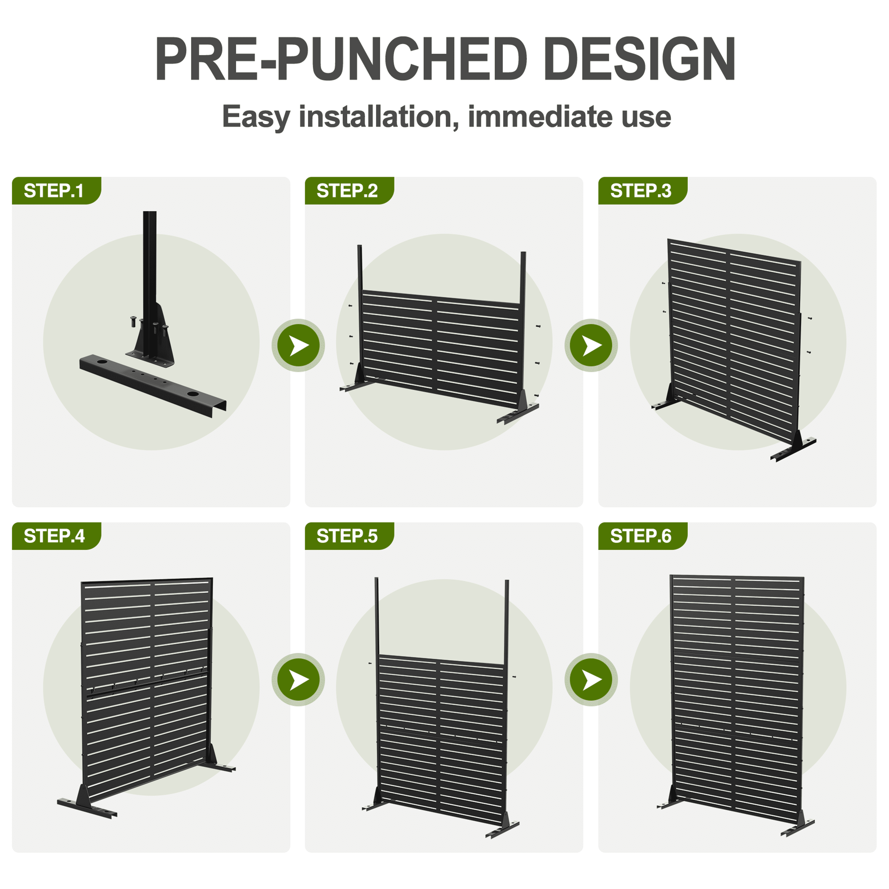 HIGH QUALITY MATERIALS:MAYEERTY privacy screens are made of laser-cut galvanized steel,which is durable.The privacy screen is good coating to prevent rust from weather. PRIVACY PARTITION:The size of the metal privacy screen is H 72in×W 47in,which can be very good to fulfill the role of partition privacy.If you think one piece is not enough,you can put several freestanding privacy screens together to form a big partition screen.You don’t have to destroy your house to build a divider wall. VARIOUS PRIVACY SCREEN OPTIONS:we have a variety of graphic screens,you can choose according to the style of the screen you like to decorate your space or the privacy of the screen you need. MULTIPLE PLACEMENT PLACES:Our screens can be placed both outdoors and indoors such as parks,yards,by the swimming pools,beach,bedrooms,kitchen,living rooms,balconies and other scenes that need to protect privacy or be decorative. A VARIETY OF INSTALLATION METHODS:Our screens can be installed horizontally or vertically according to your needs.Our privacy screens are easy to install and we have installation instructions.The privacy screenshot has special screws at the bottom to fix the screen without shaking.The privacy screens are free standing with stand and can be moved to different place according to your needs.
