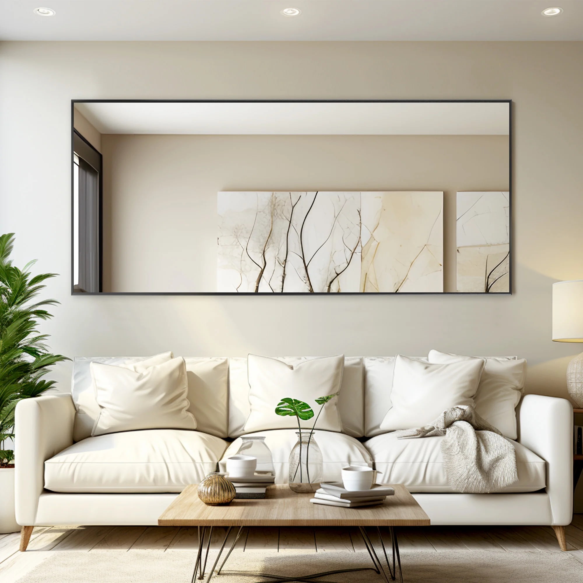 This 71-inch modern rectangle floor mirror from MAYEERTY brings sleek style to any space. The matte polished aluminum alloy frame is light but durable,making it easy to move and install wherever needed. The mirror itself is coated in environmentally-friendly silver nitrate for an HD reflection without rust or oxidation worries. Best of all,should it ever break,the mirrored glass won’t shatter,keeping your space safe. Versatile mounting options allow this oversized mirror to lean against the wall,stand freely on its own, or mount vertically or horizontally for an unbroken view. Whether standing alone or installed,this full length mirror from MAYEERTY is a contemporary pick to brighten up any room in the home.