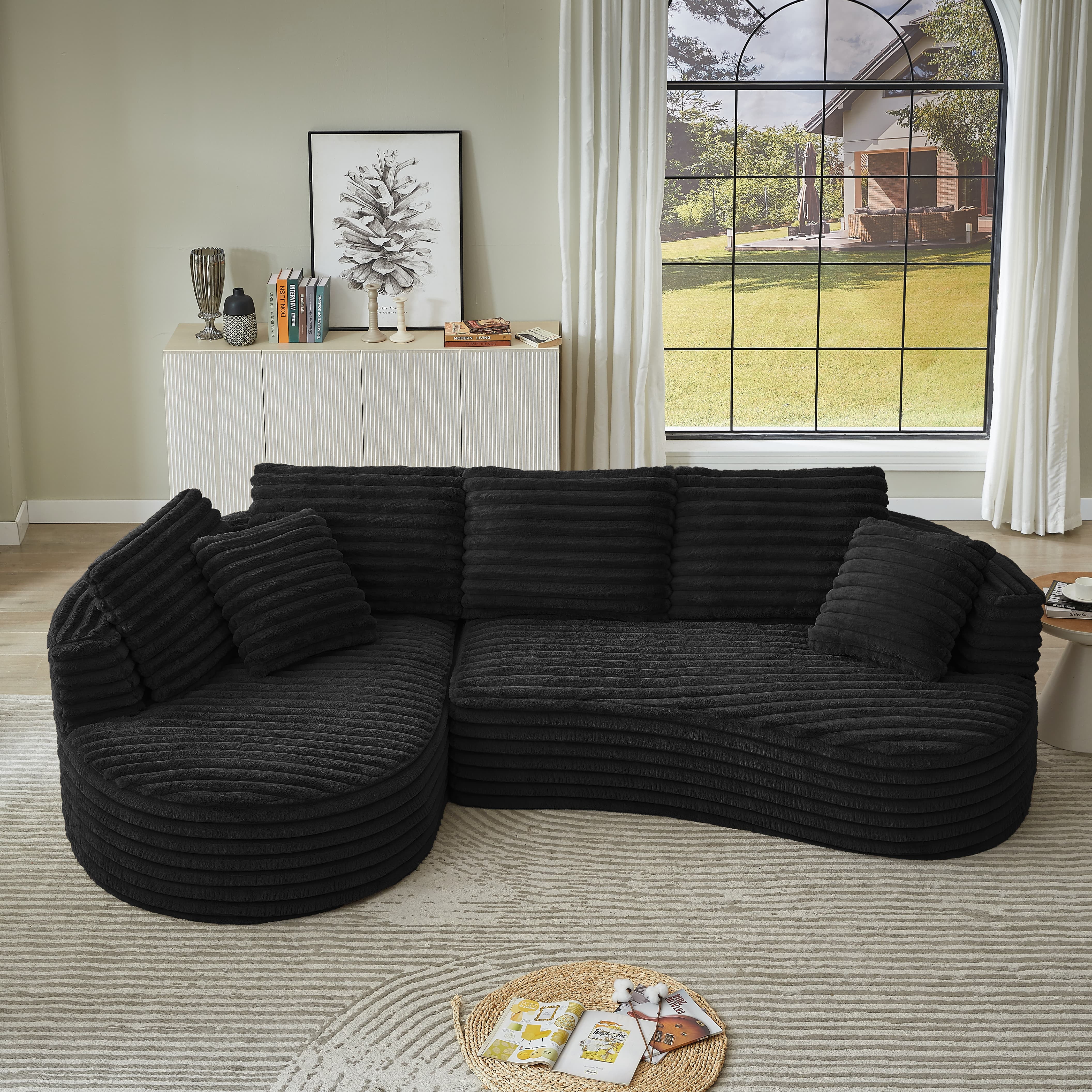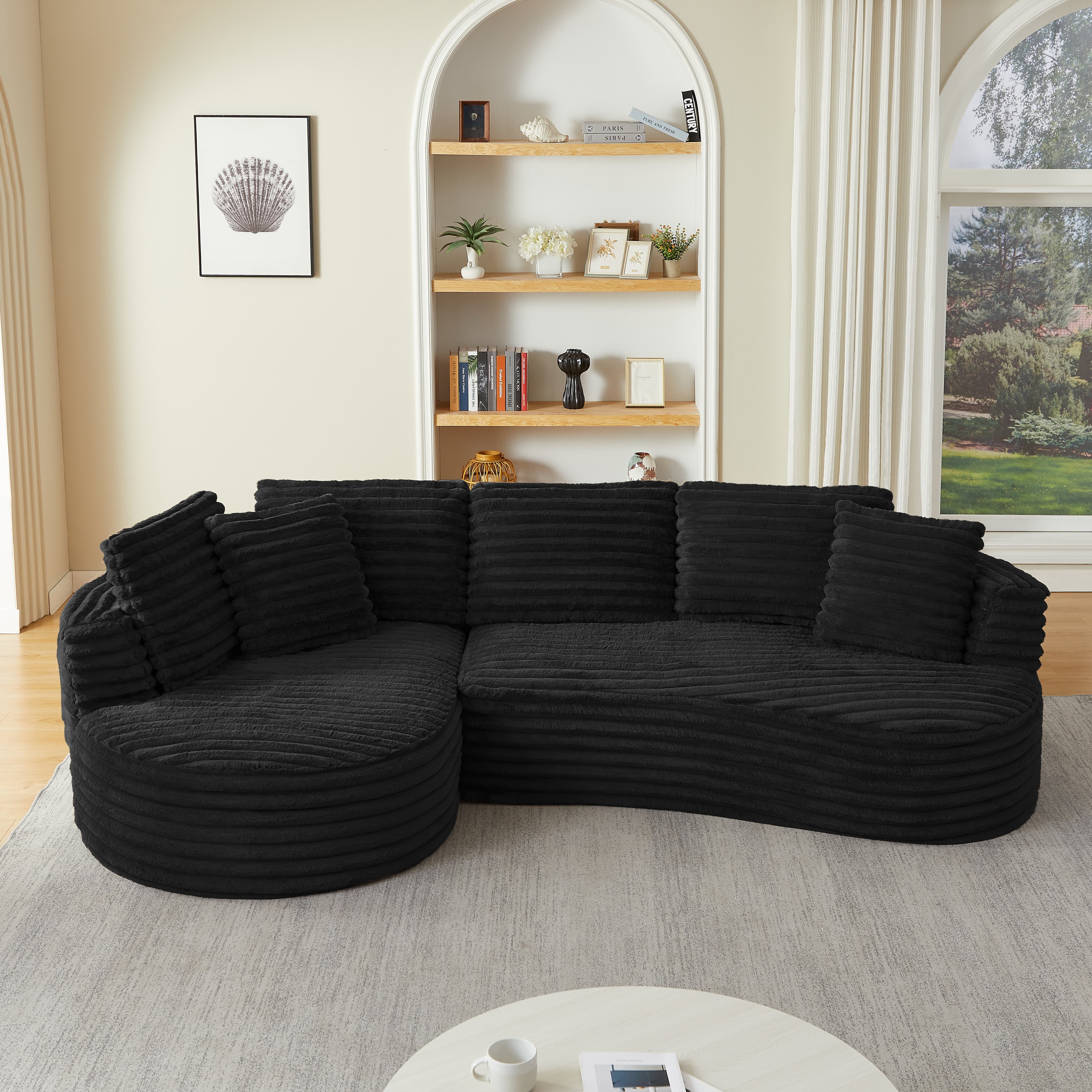 MAYEERTY Corduroy Curved L-Shape Oversized Sectional Sofa for Apartment, Minimalist & Luxury, 121*66*35″Black