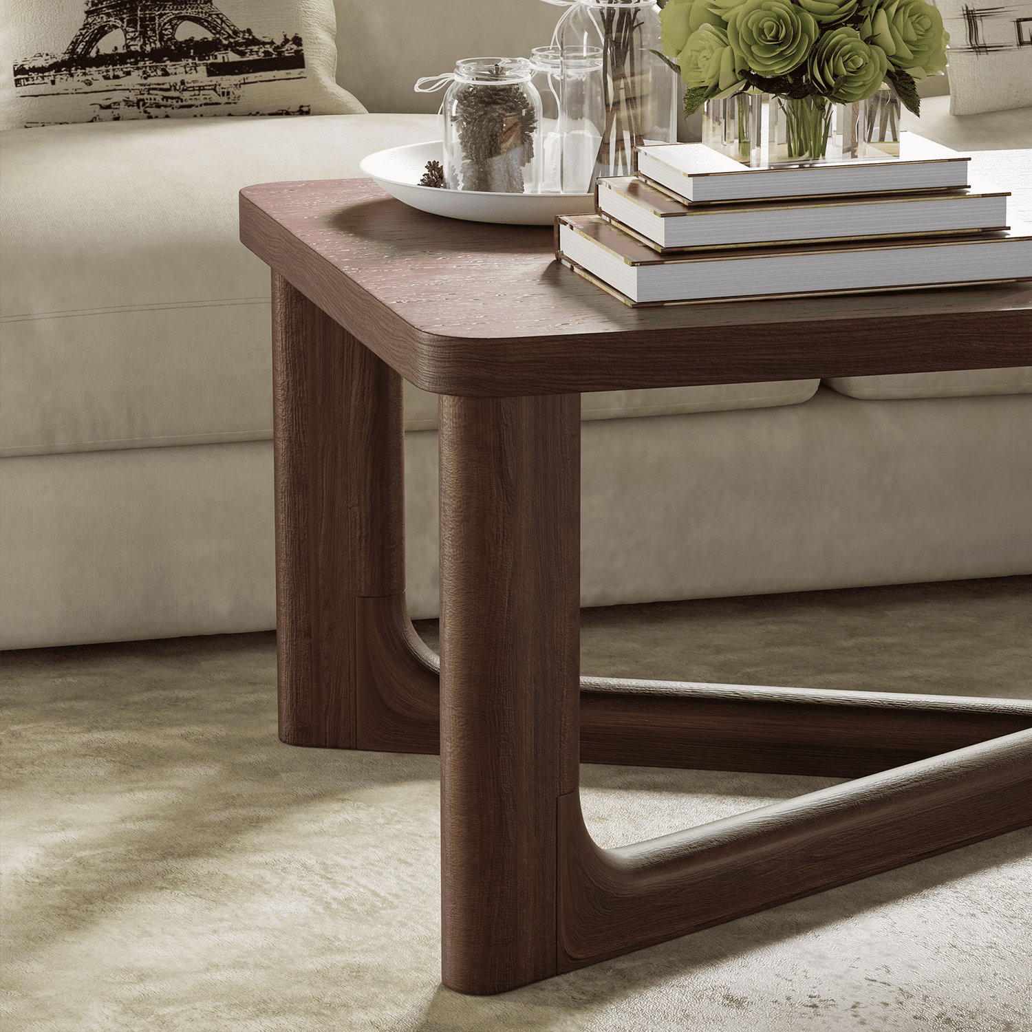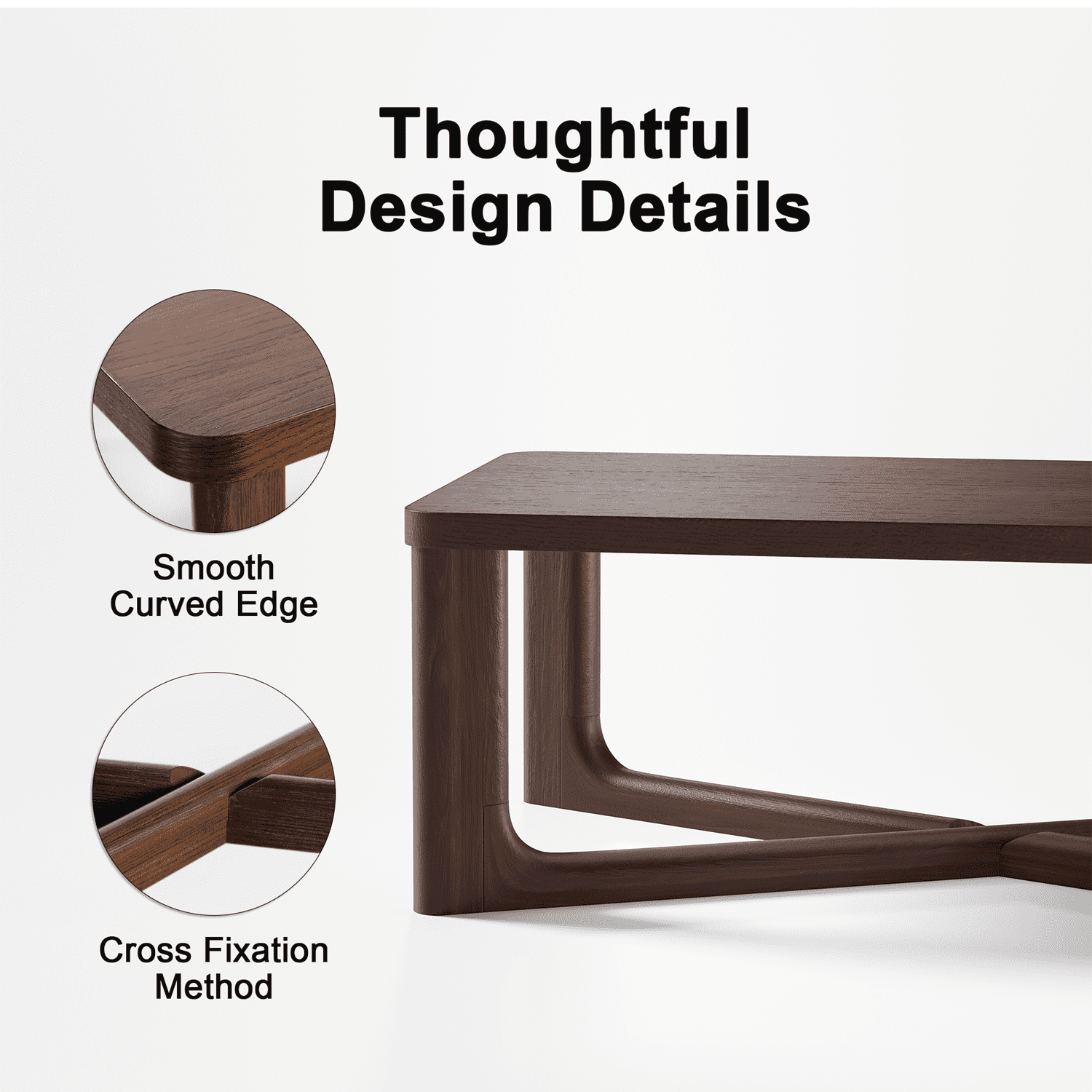 MAYEERTY Modern Collection Mid-Century Style Wood Coffee Table with L+X-Shaped Structure, Walnut Stable Structure: Features an L+X-shaped integrated design that greatly enhances stability Easy to Clean: Made of solid wood with a smooth surface for effortless cleaning Comfortable Touch: Crafted from solid wood, providing a gentle texture and soft touch