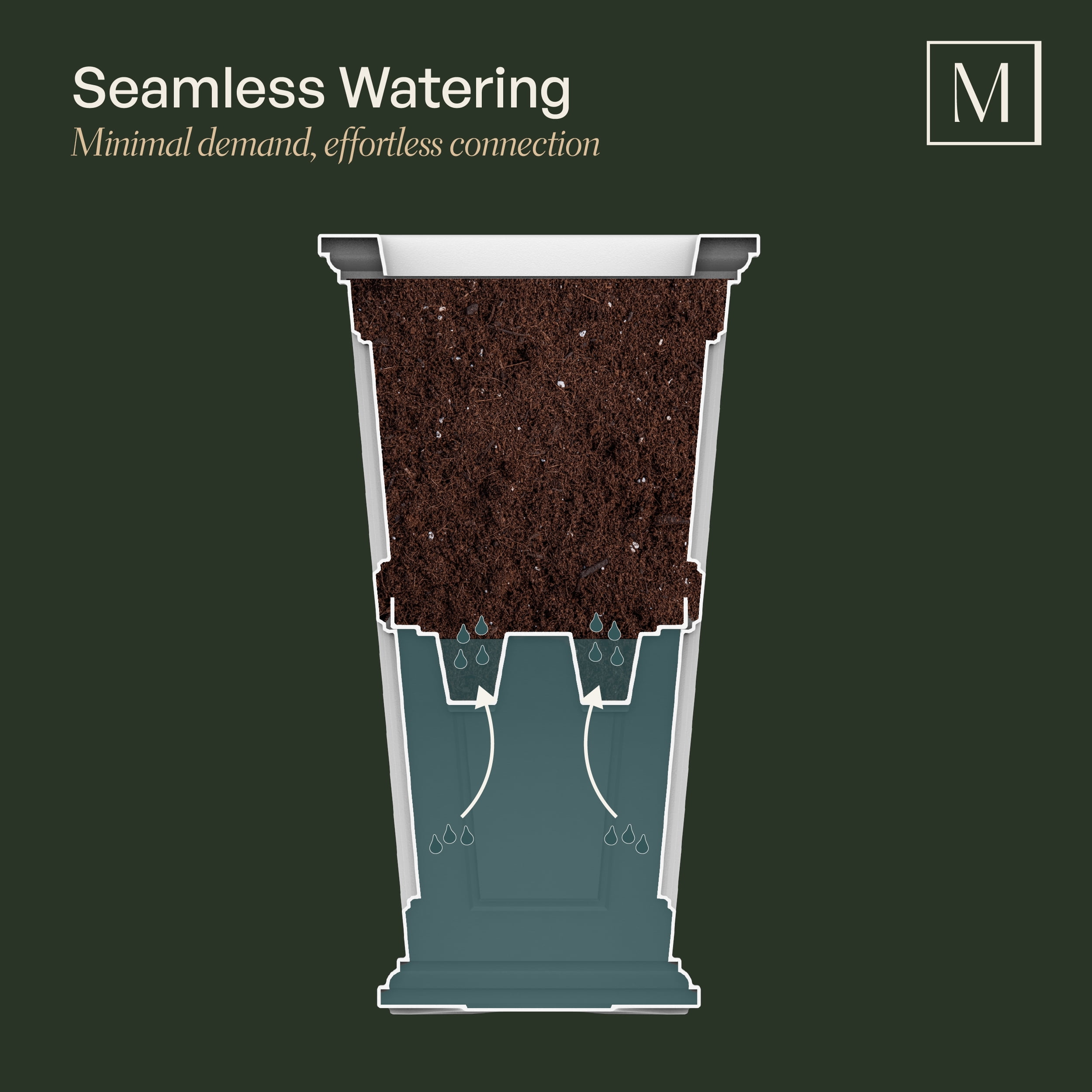 Fade resistant for lasting elegance and durability Self watering nurtures thriving, vibrant plants Reversible tray securely supports potted plants Designed for all seasons with custom drainage