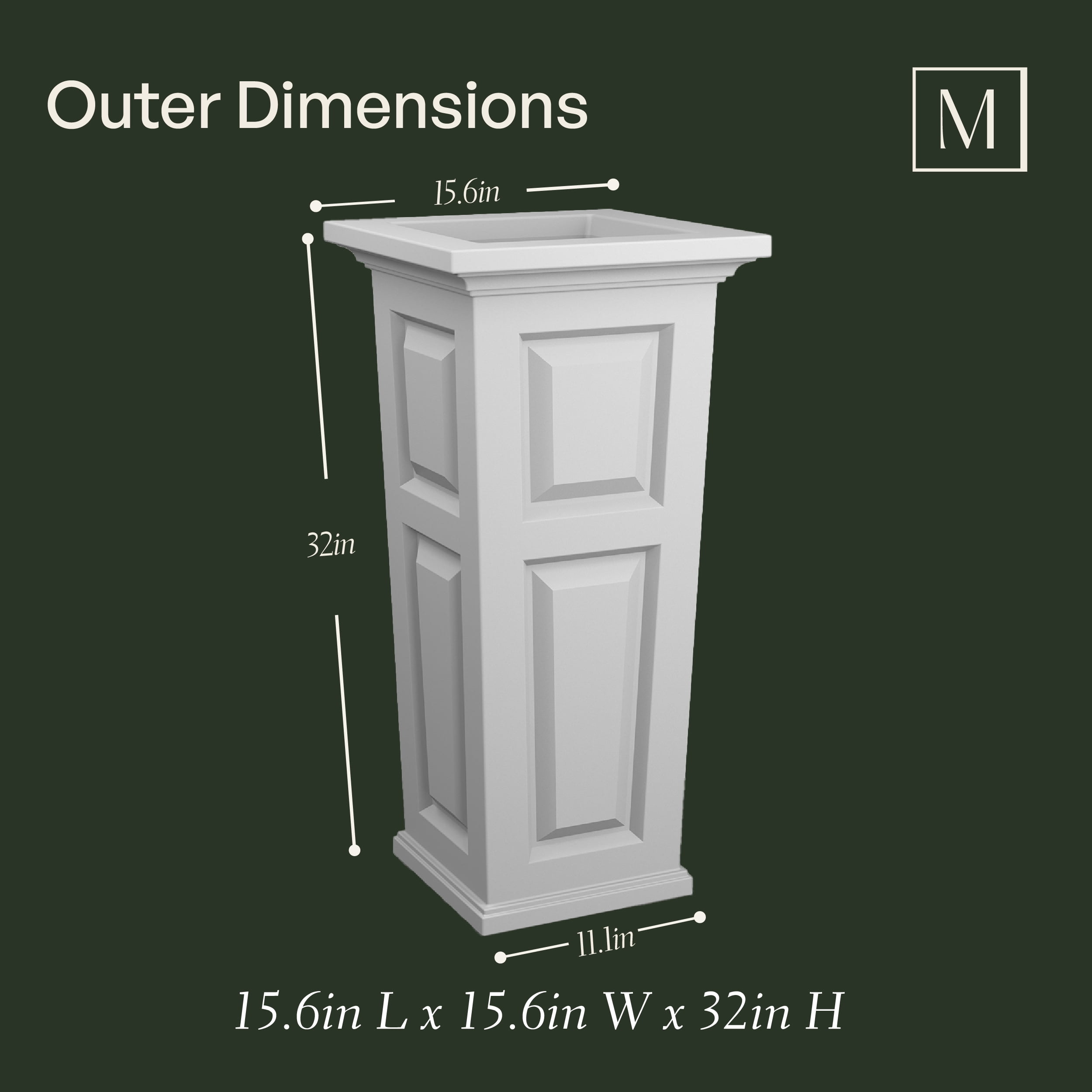 Transform your outdoor space with the Mayne Nantucket 16″ x 16″ x 32″ Tall Square Plastic Plant Planter, where timeless charm meets modern durability. Expertly crafted from premium materials, its classic paneled design showcases vibrant flowers and greenery, adding elegance to patios, gardens, and porches.