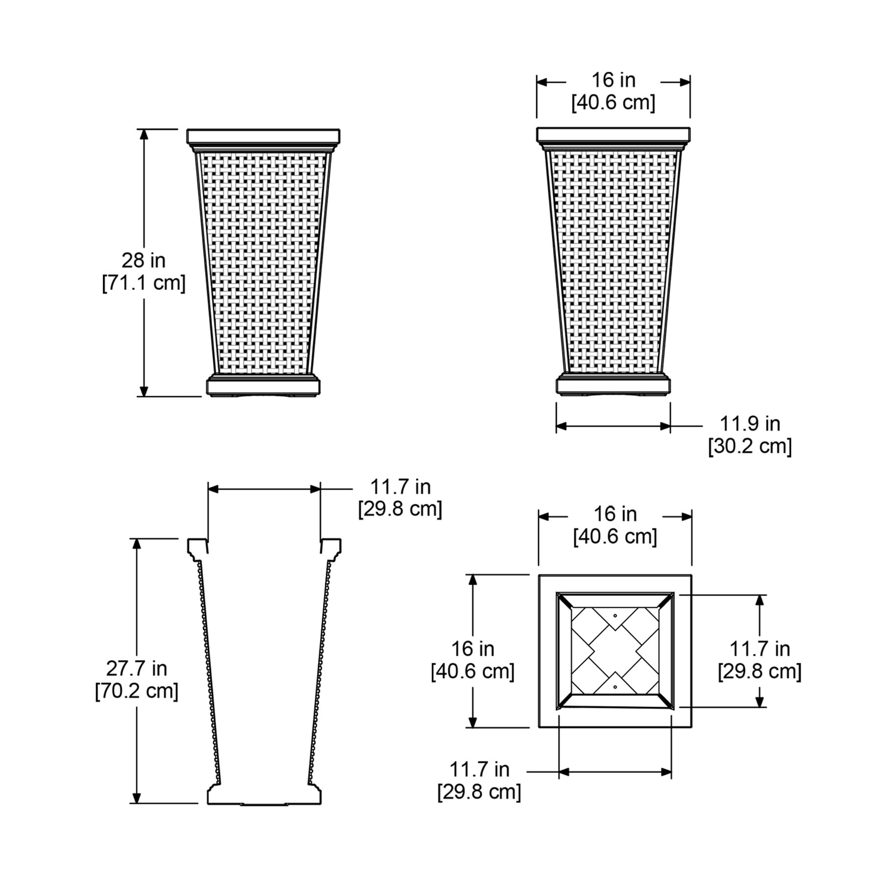 Beautiful wicker design adds a charming touch to any patio or deck. Mayne products are made with 100% high-grade polyethylene resin. The resin used in these planters have built-in UV inhibitors that ensure it does not fade easily. Unlike wood planters that need regular maintenance, our planters look like wood without any effort. Mayne offers a 15-year residential warranty or a 5-year commercial warranty on this planter. Mayne products are proudly designed in Canada and .