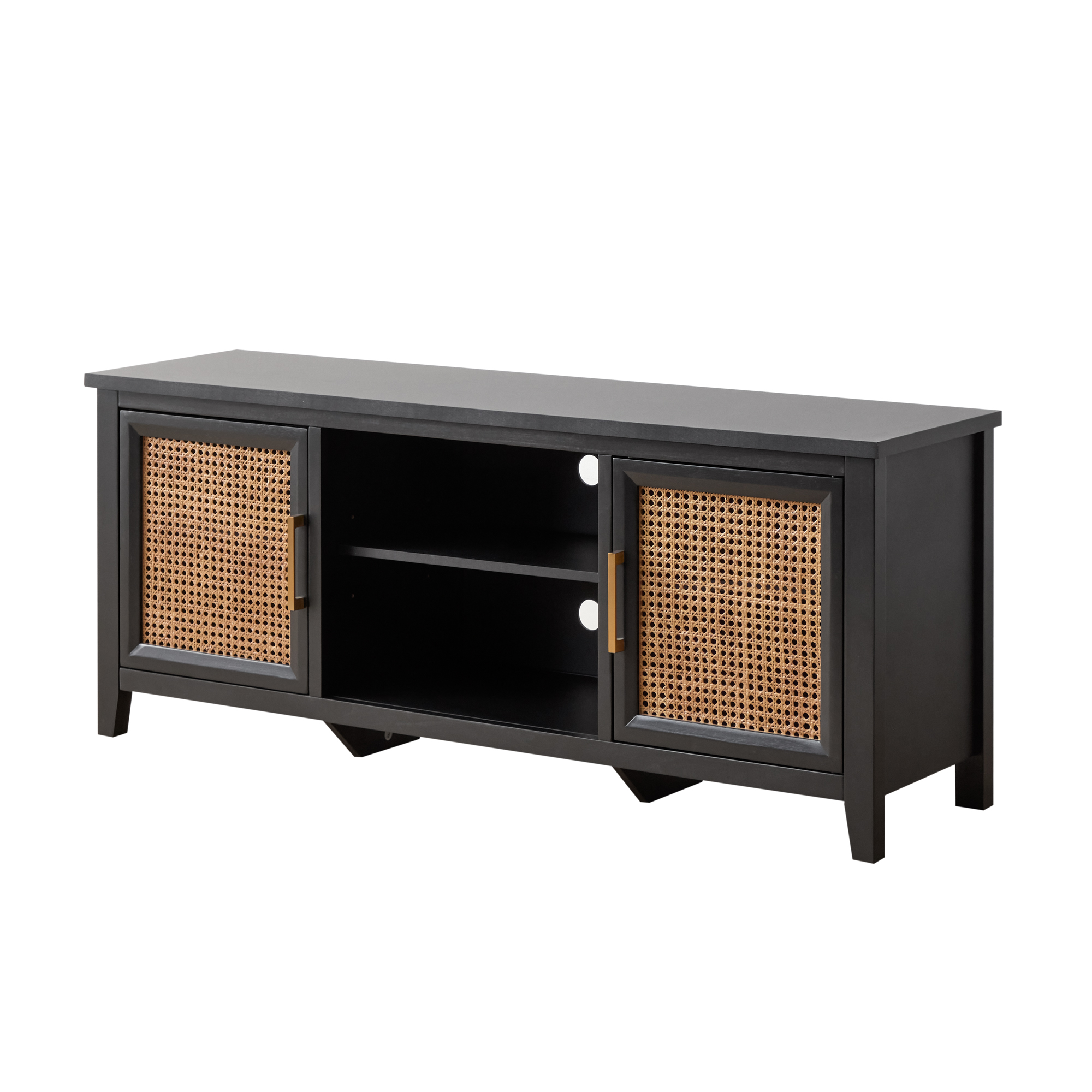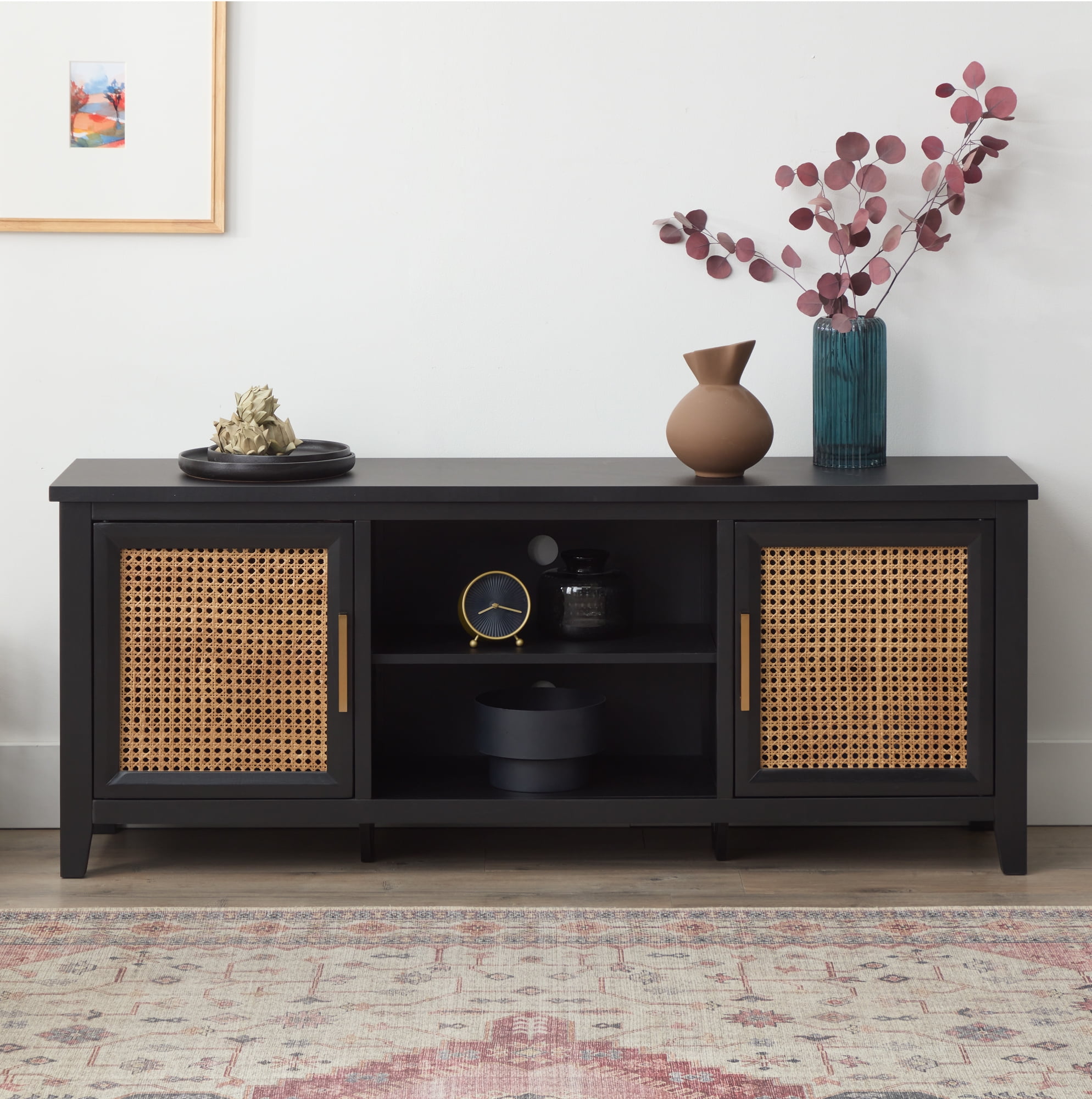 Mayview Carlson Wood and Cane TV Stand for TVs up to 60″, Quick Assembly, Black