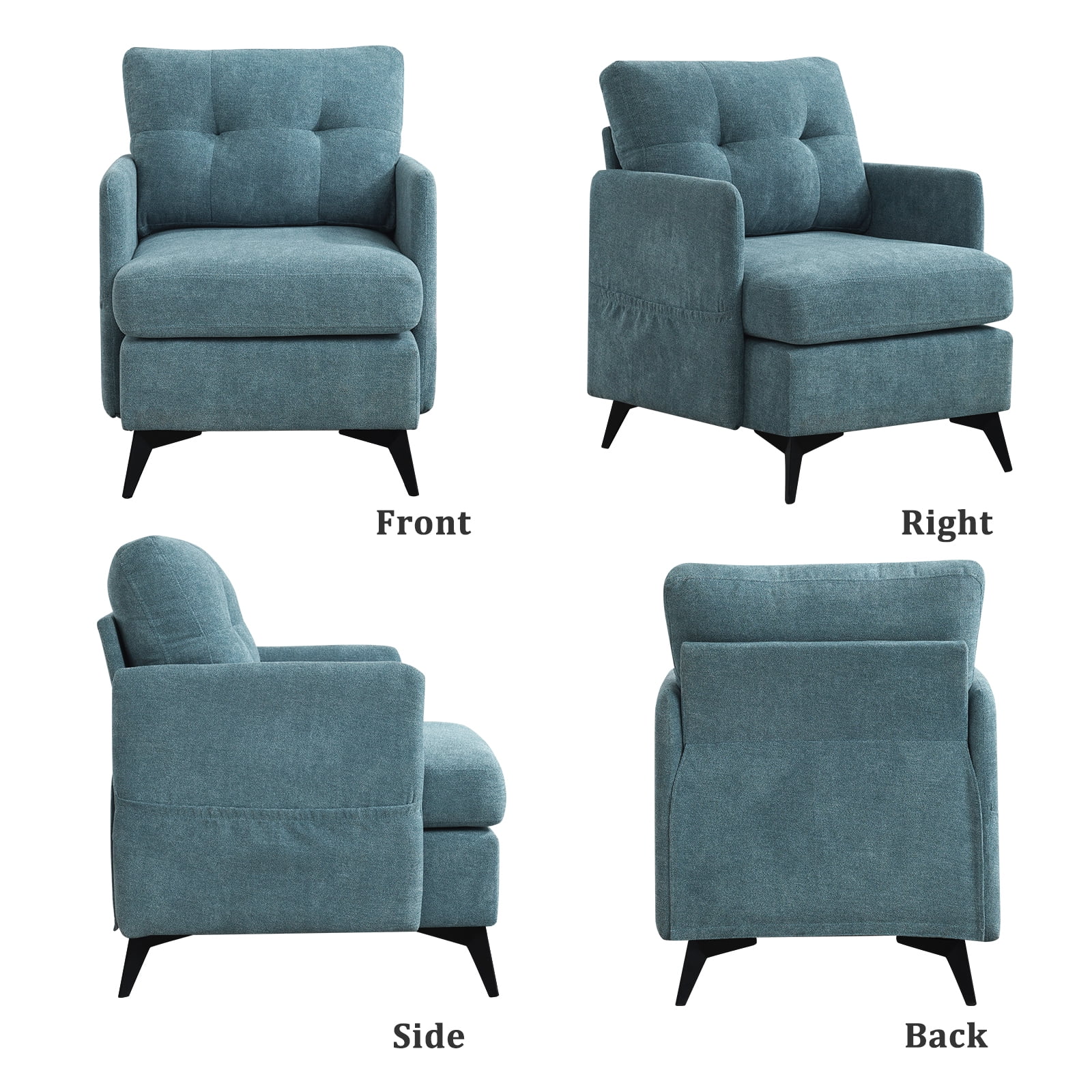 MBBMW Modern Upholstered Accent Chair Armchair, Linen Living Room Chair, Single Sofa with Side Pockets and High Resilience Seating, Blue