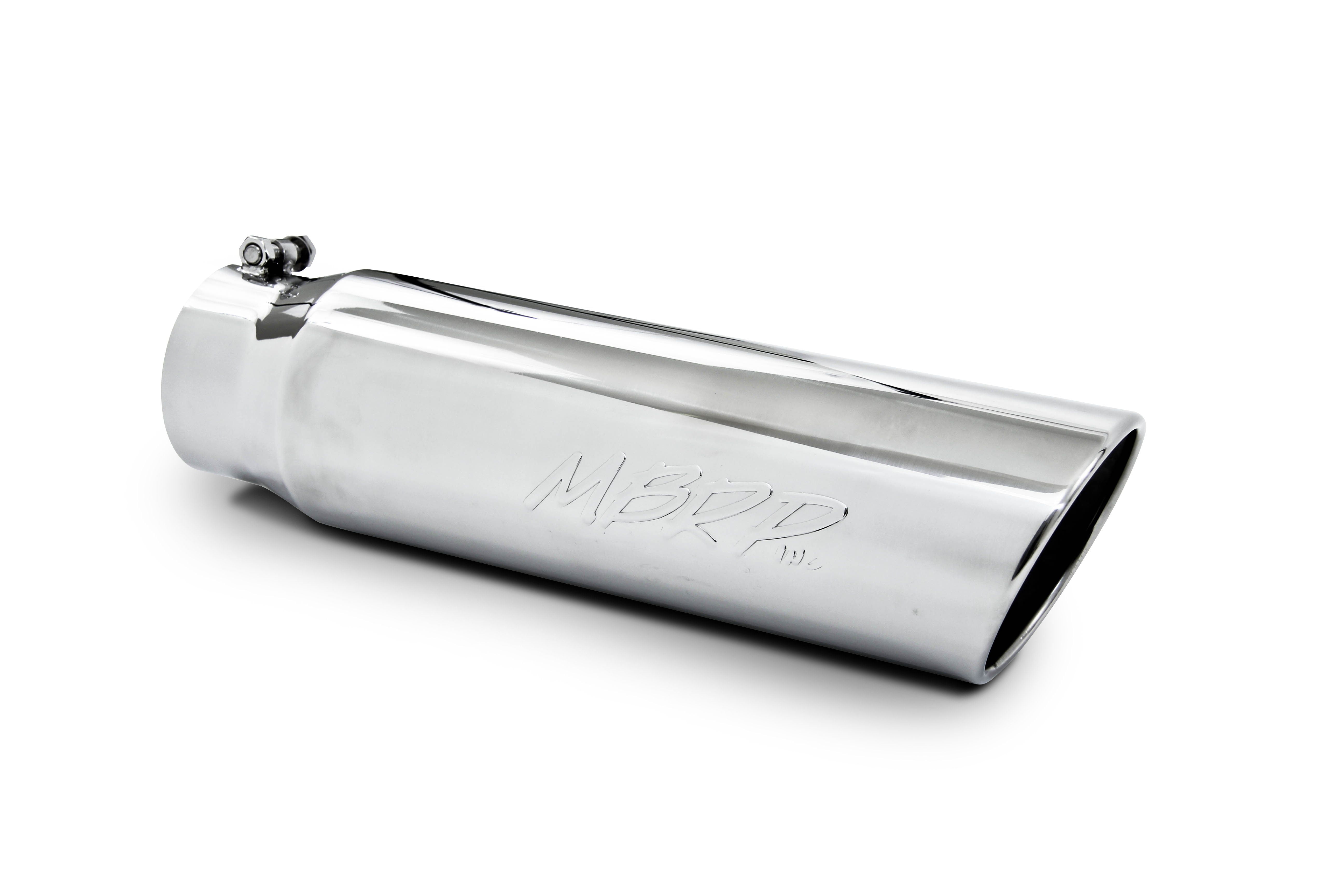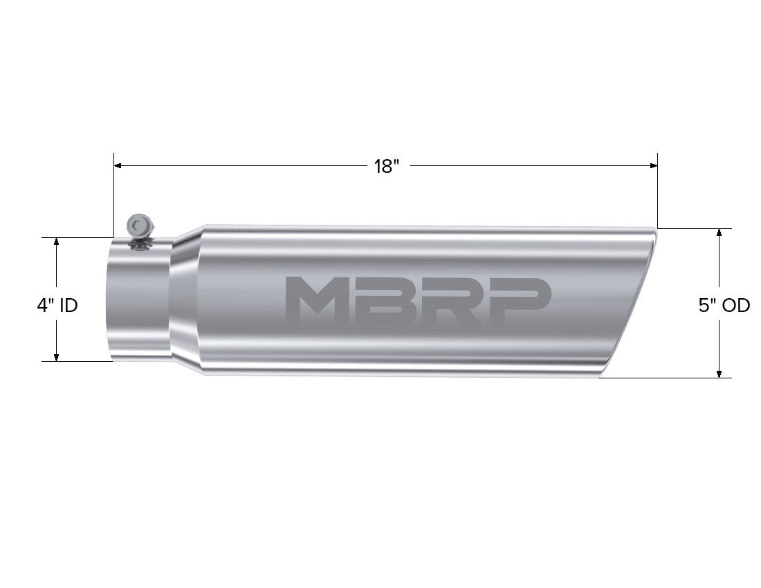 MBRP Universal 5in OD Angled Rolled End 4in Inlet 18in Lgth T304 Exhaust Tip Additional Features Inlet Diameter:4.000 in.