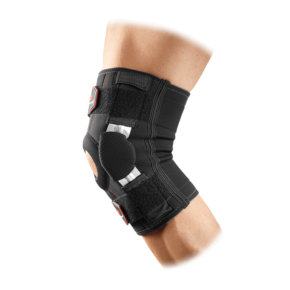 ADVANCED SUPPORT: No gears — each sidearm is independently articulated with cushioned hyperextension stops LIGHT, STRONG HINGES: McDavid’s lightest hinge has wider arms to aid in maintaining strength EASY TO ADJUST: Engineered straps assure personalized fit ADVANCED COMPRESSION: Latex-free neoprene with micro-cell structure and cell memory for superior stretch, greater heat insulation and lighter, longer lasting support COMFORT & SUPPORT: Open 360˚ padded buttress isolates and supports the patella EASY ON SKIN: Bound edges prevent irritation ALL-AROUND COMFORT: Perforated back panel provides heat and moisture management for all-around comfort DURABLE: Exterior layer of nylon fabric for durability IDEAL FOR ANY SPORT, ACTIVITY: Perfect for Walking, Running, Hiking, Soccer, Biking, Basketball, Football, Baseball, Volleyball and more FITS LEFT OR RIGHT KNEE