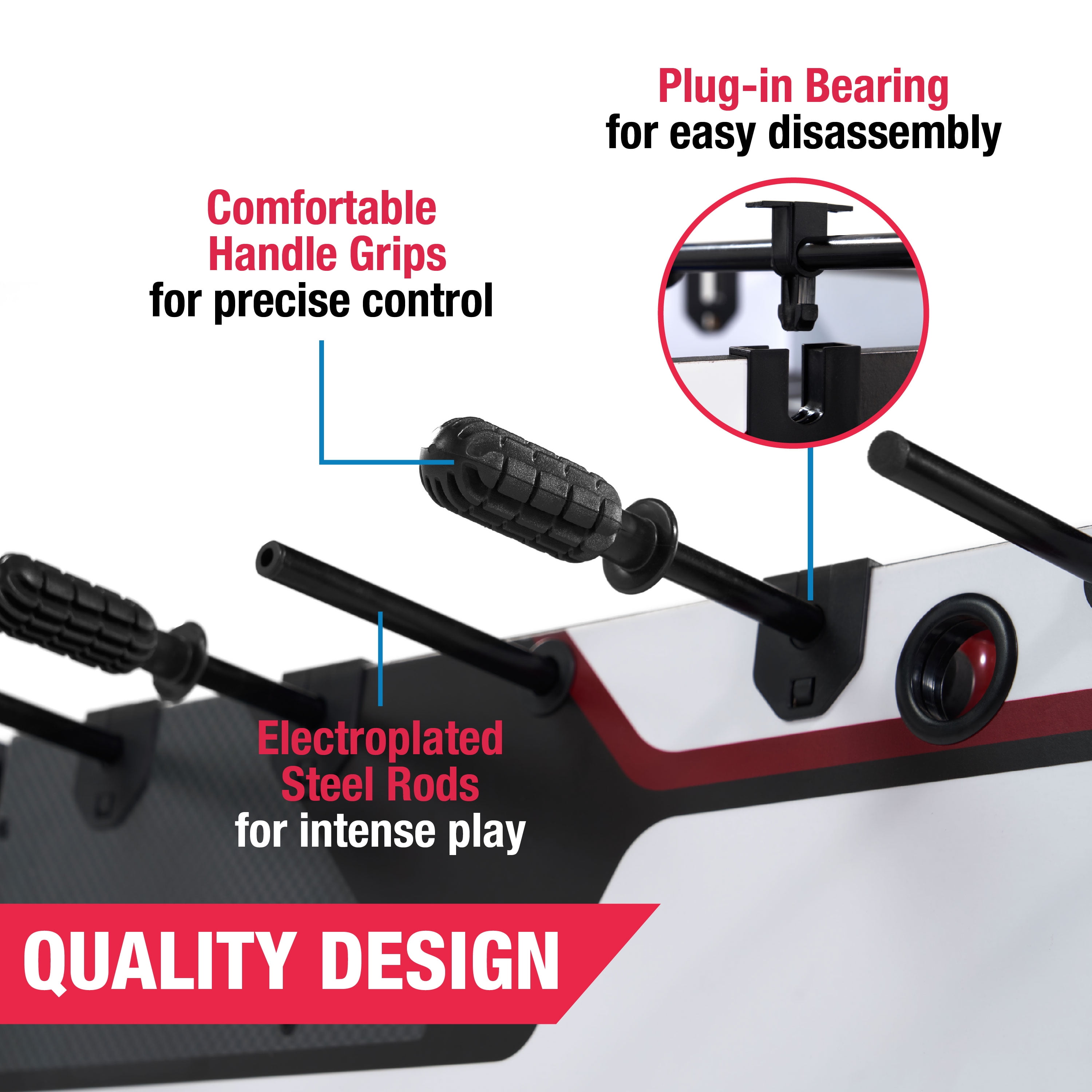 MD Sports 48-inch 2 in 1 Combo Game Table includes a foosball game and a pool game in one great game table. Playing accessories are included for both games with this combo game table. Playing with your friends and family is a lot of fun. Switching between games takes only a few seconds; just use the adjustable knobs to change between games easily. The foosball robot-style players are pre-assembled, saving you about 80% of your time when putting together this table. This game table is ideal for any size game room at 48″ L x 23″ W x 31″ H. All accessories needed to play billiards and foosball are included, and storage in each apron makes it easy to store accessories when not in use. Don’t miss out on this combo game table for your game room or basement.