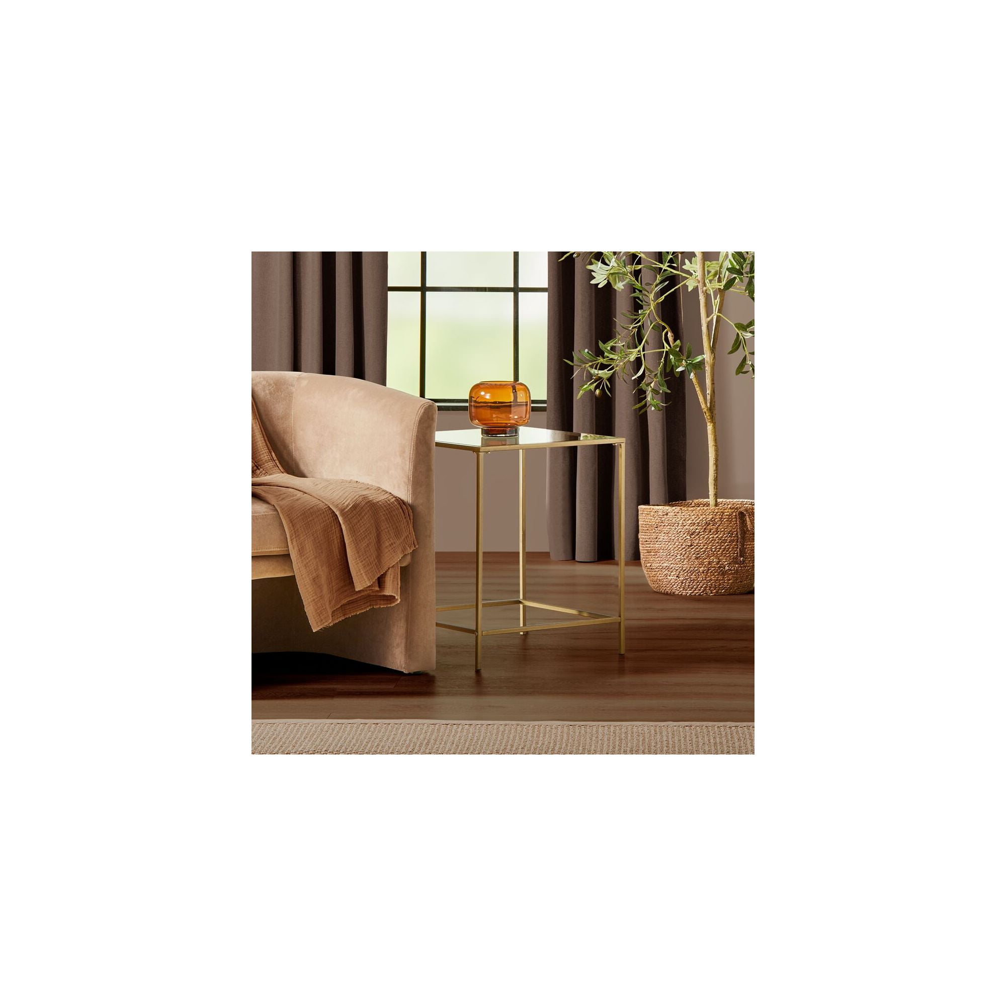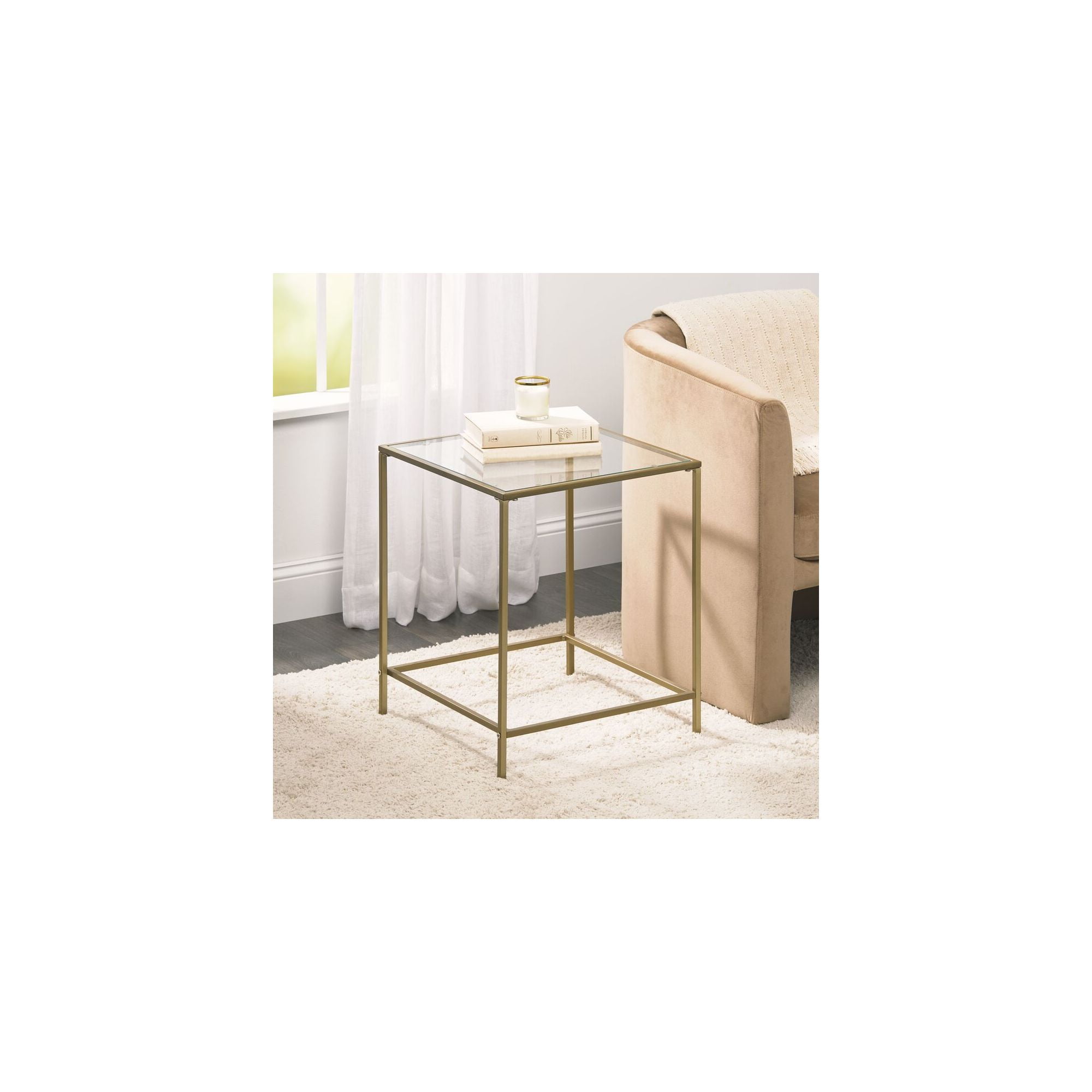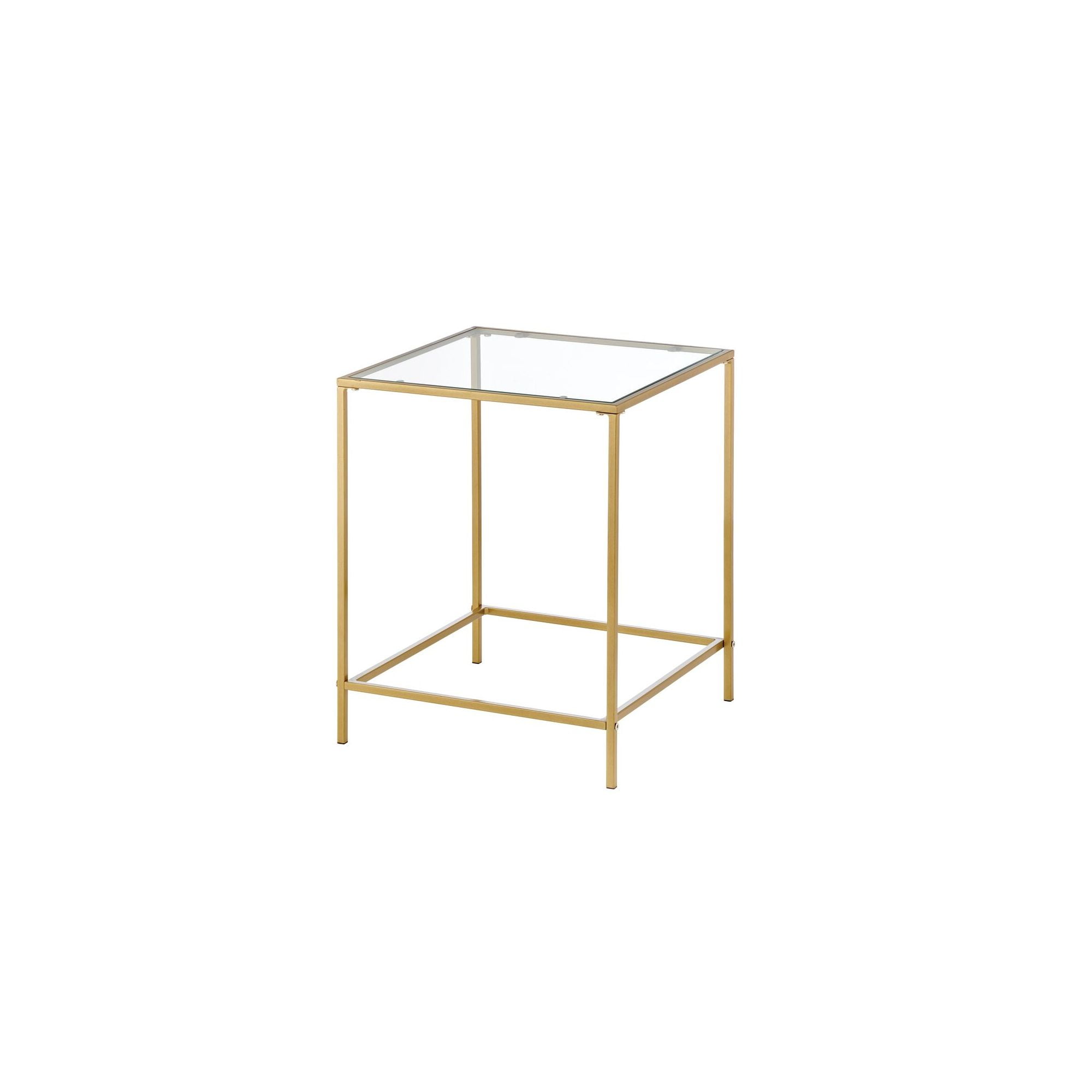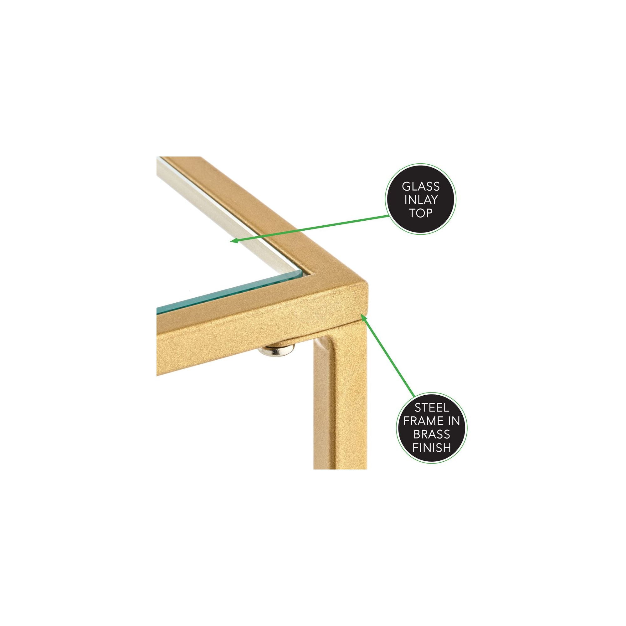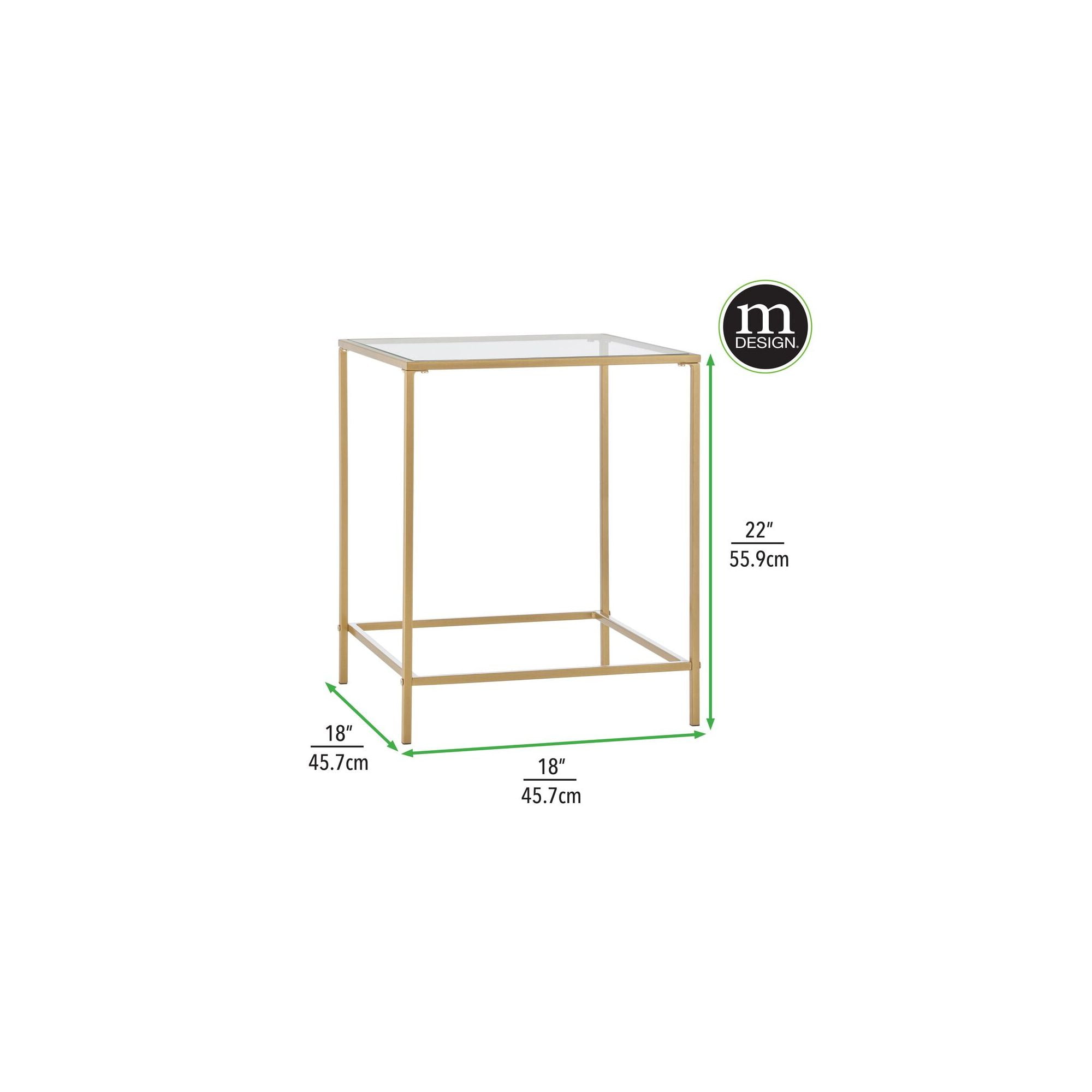 mDesign Glass Top Side/End Table – Small Minimalistic Square Geometric Accent Metal Nightstand Furniture for Living Room, Dorm, Home Office, and Bedroom – Soft Brass