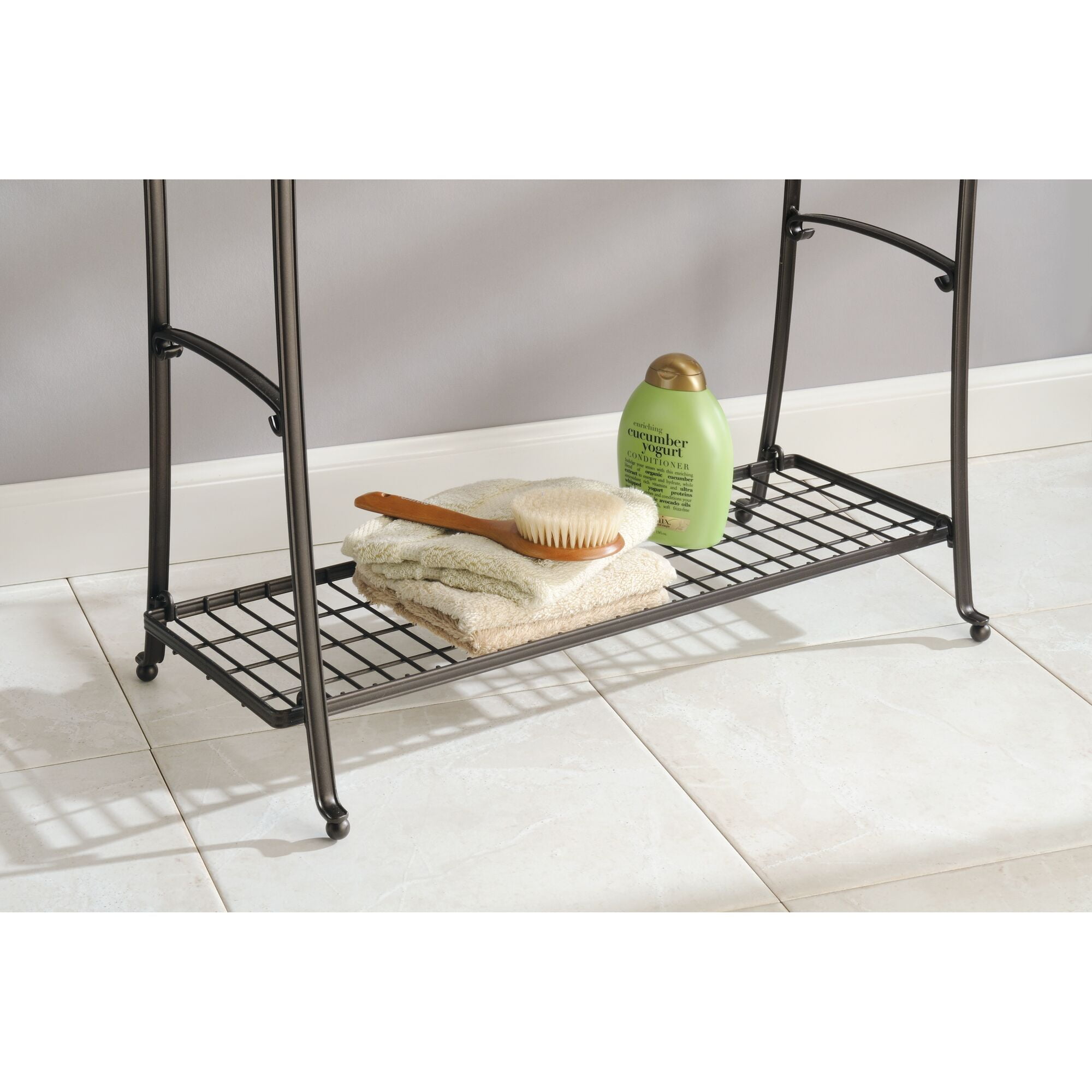 Three bars are placed at different levels for towels of many sizes BUILT-IN SHELF: This towel rack is perfect for holding washcloths, face towels, and full bath sheets stylishly and conveniently; Features a bottom shelf that is just the right size for accessories FREESTANDING: Make the most of unused space in your bathroom; No drilling or mounting into walls – place where it’s most convenient; Hardware and instructions are included for quick and easy assembly QUALITY CONSTRUCTION: Made of strong stainless steel with a durable finish; Designed for use in moisture-rich bathroom environments EASY CARE: Clean with damp cloth THOUGHTFULLY SIZED: Measures 12″ x 25″ x 34″ high