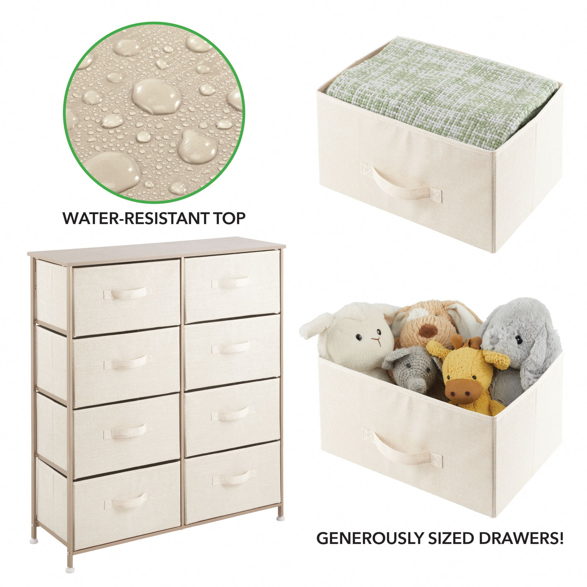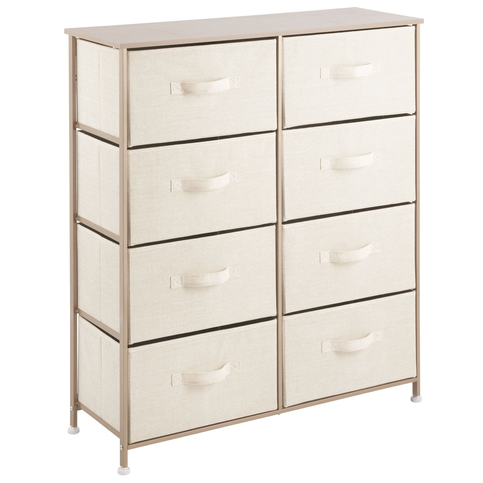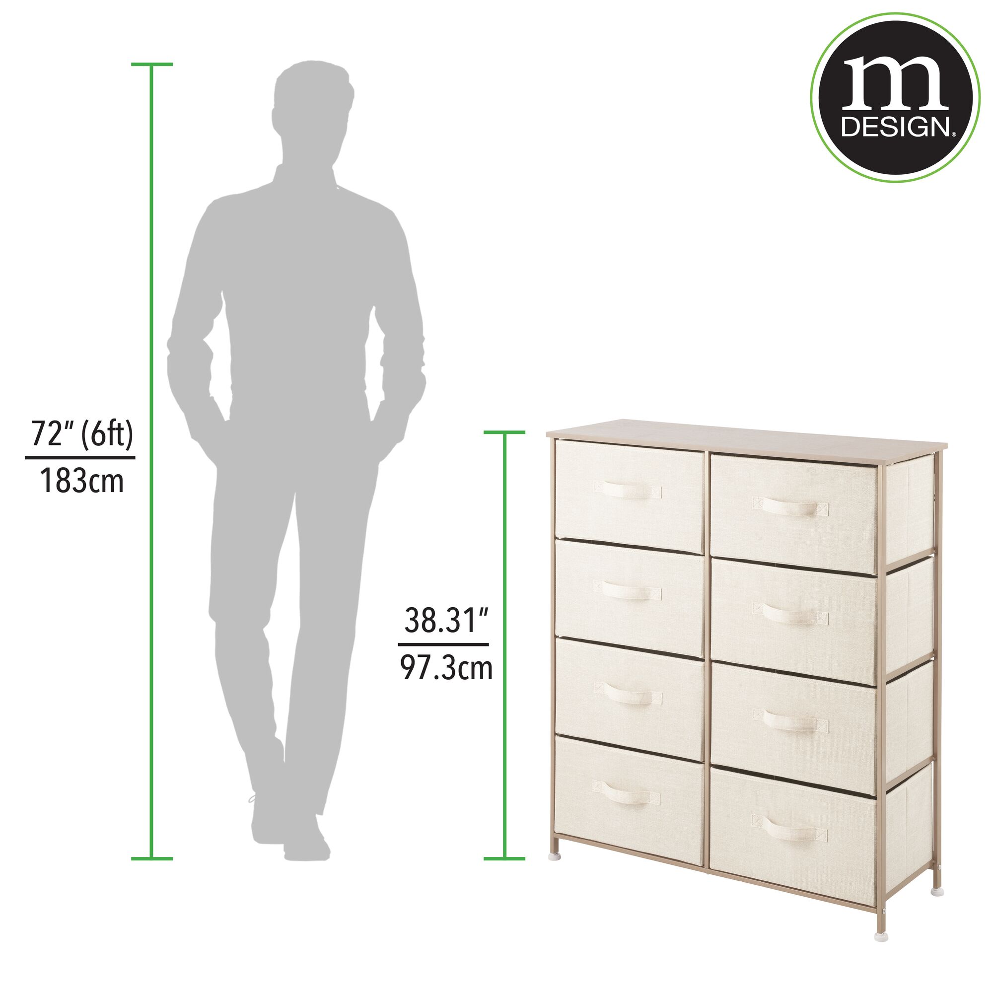 mDesign Large Storage Dresser Furniture, 8 Removable Fabric Drawers, Cream/Gold
