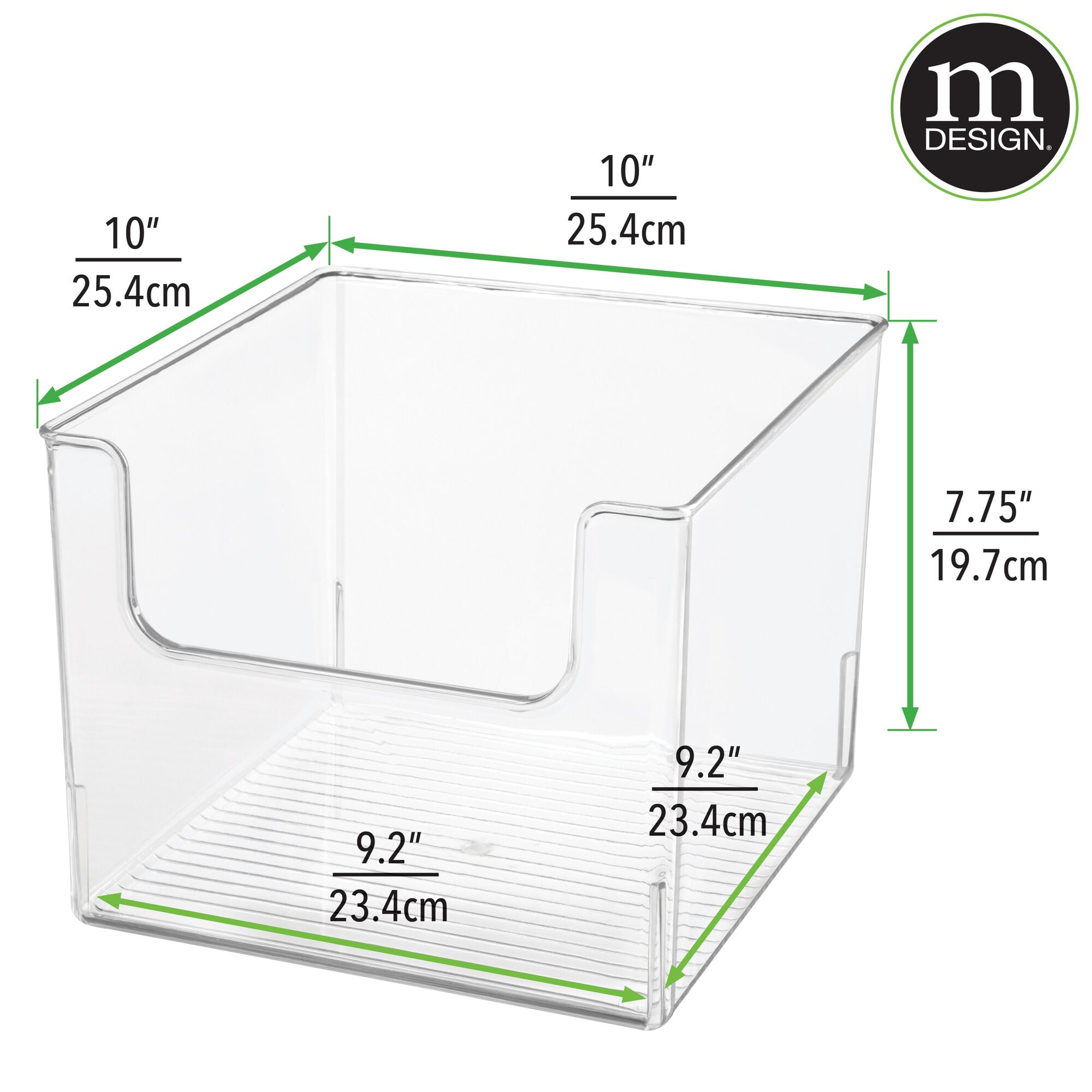 Keep items organized, easy to find, and quick to grab STORAGE MADE SIMPLE: Large opening dips down in front, providing access to extra office supplies and essentials; Unique design brings a modern look to any shelf; Use side by side for custom storage FUNCTIONAL & VERSATILE: Stash away odds and ends with these multipurpose bins that tackle organizing needs throughout the home; mDesign Tip: bins are sized to fit inside cubby furniture units QUALITY CONSTRUCTION: Made of durable shatter-resistant plastic EASY CARE: Clean with mild soap and water; Do not place in dishwasher THOUGHTFULLY SIZED: Overall Outer Dimensions: 10″ x 10″ x 7.75″ high; Tapered design; Inside bottom 9.2″ x 9.2″