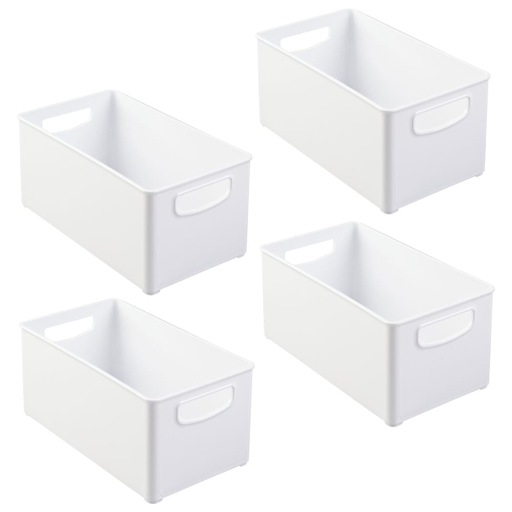 mDesign Plastic Storage Wide Organizer Bin w/Handles for Bathroom, 4 Pack, White