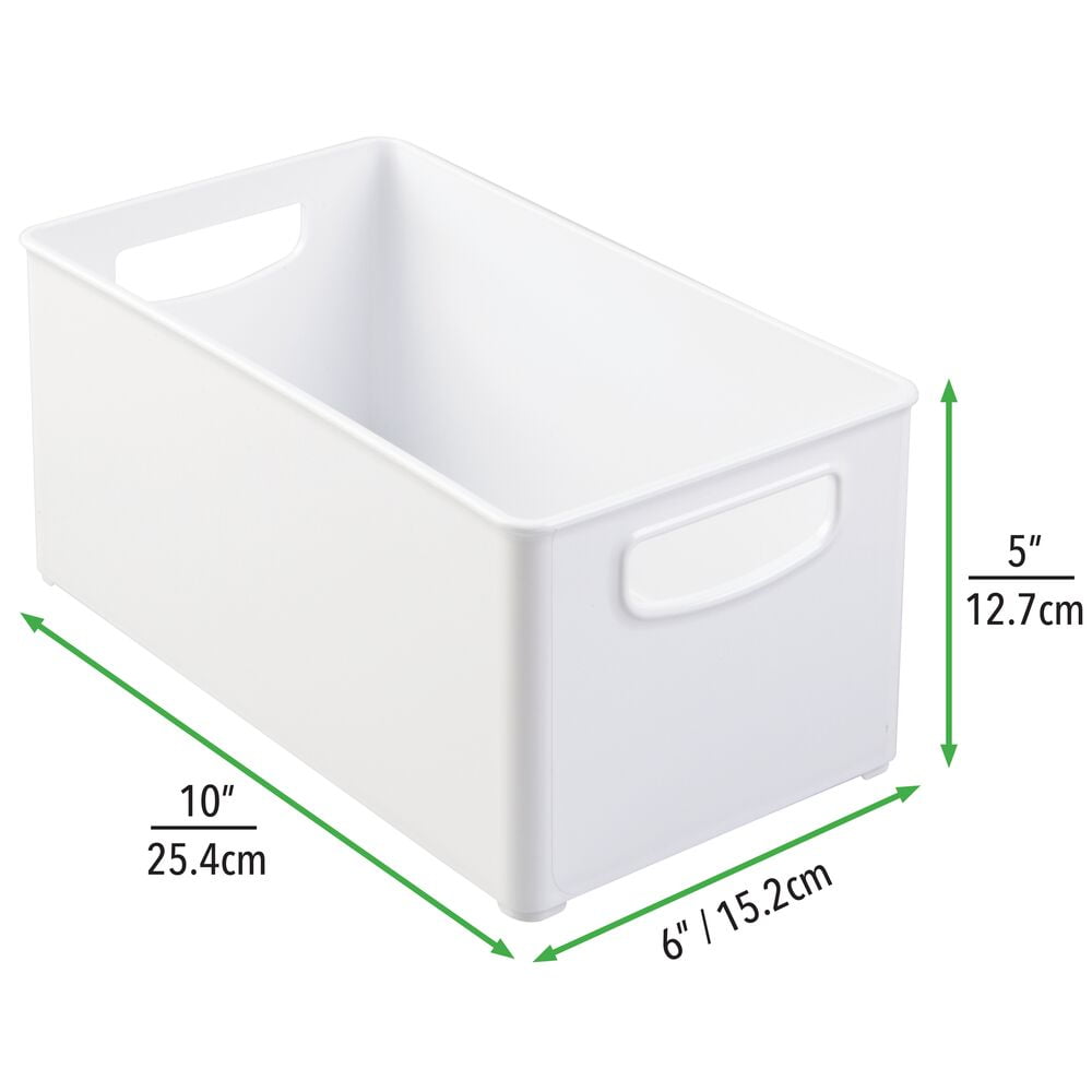 Restore order and create smart storage with stackable bins INSTANT ORGANIZATION: Grab-and-go bins keep contents visible and orderly; Open-top concept allows for easy reach-in access; Built-in handle provides an easy grip for effortless portability FUNCTIONAL & VERSATILE: Stackable design allows you to use multiple units together or separately for custom organization throughout the home; Integrated feet keep bins secure when stacked QUALITY CONSTRUCTION: Made of durable shatter-resistant plastic EASY CARE: Clean with soap and water; Do not place in the dishwasher THOUGHTFULLY SIZED: Each Measures 10″ x 6″ x 5″ high