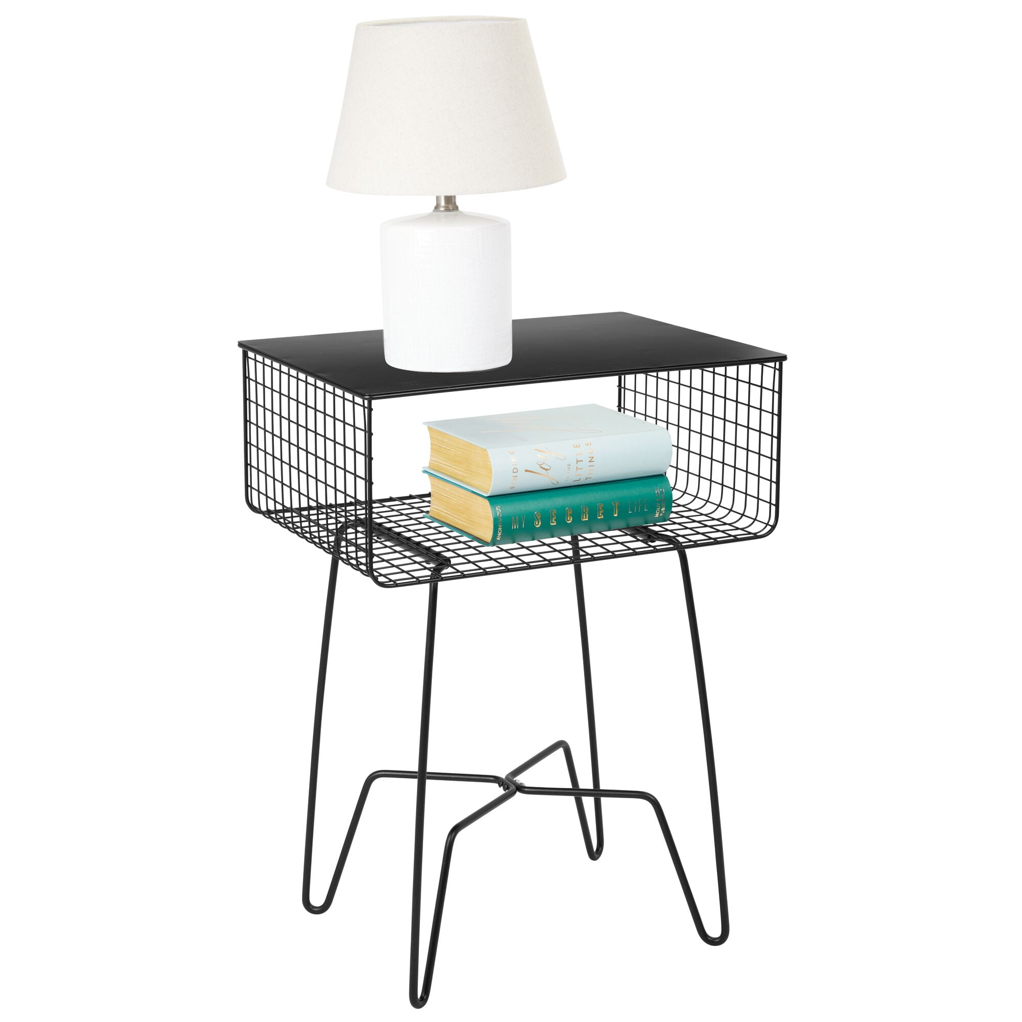 mDesign Steel Side/End Table Nightstand with Storage Shelf Basket – Black