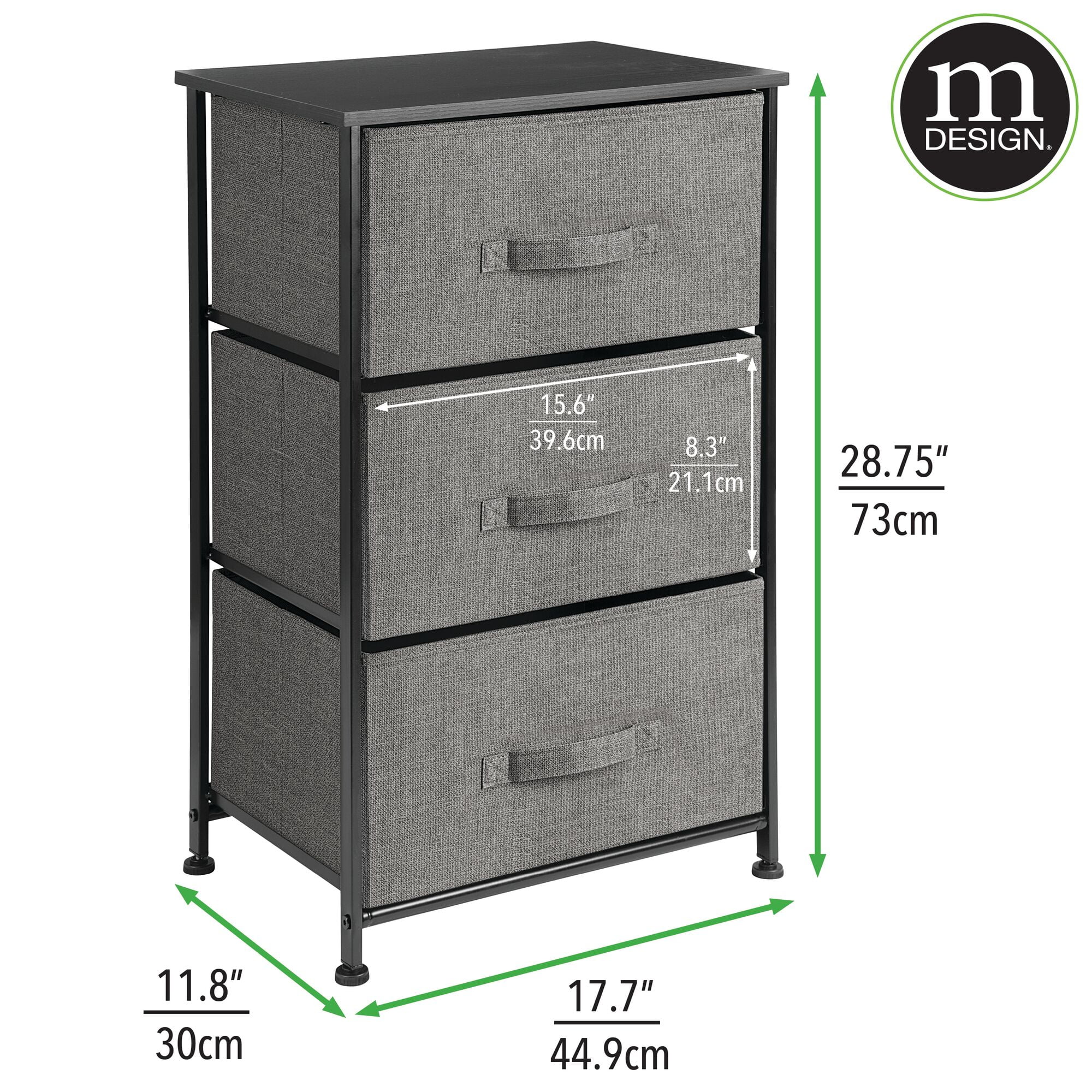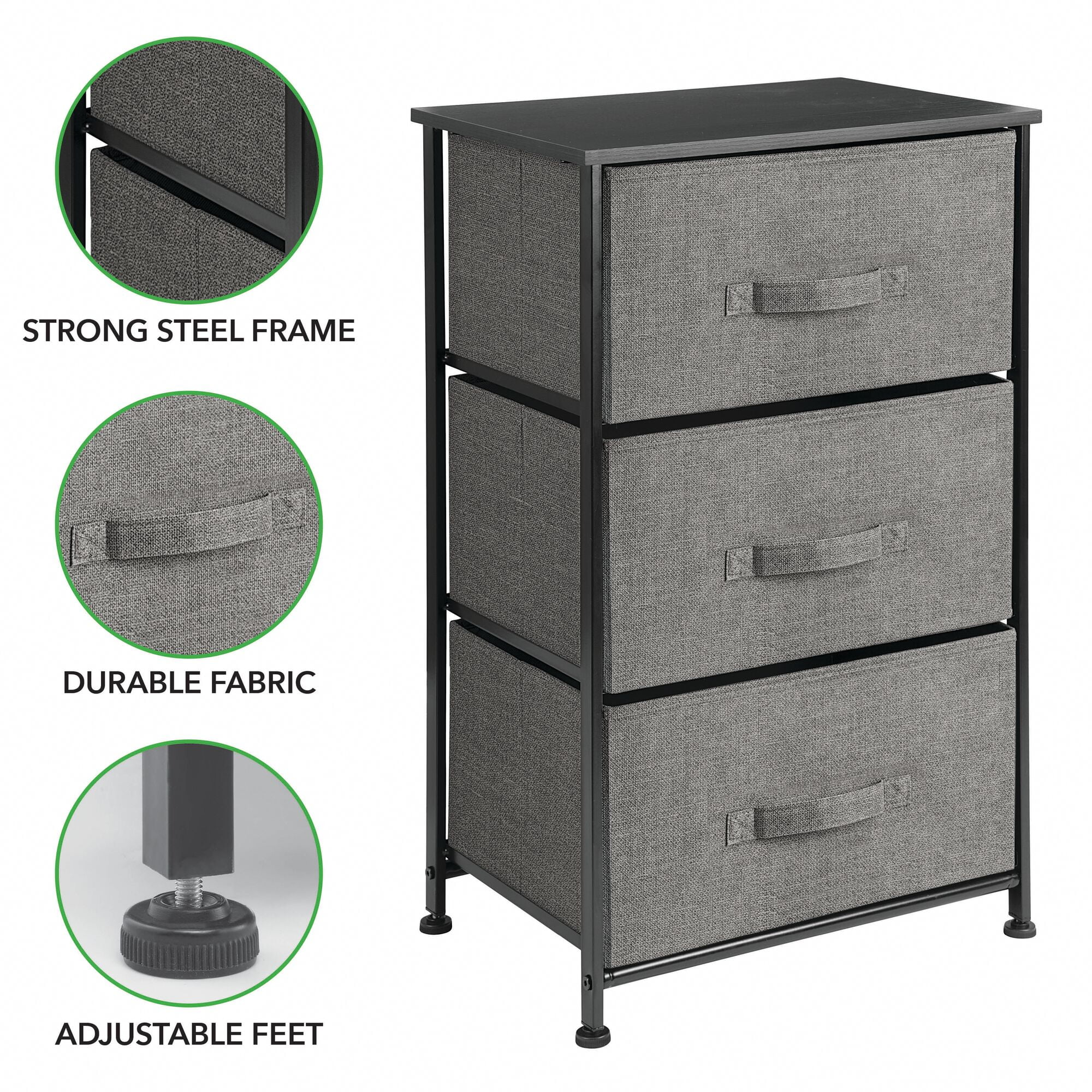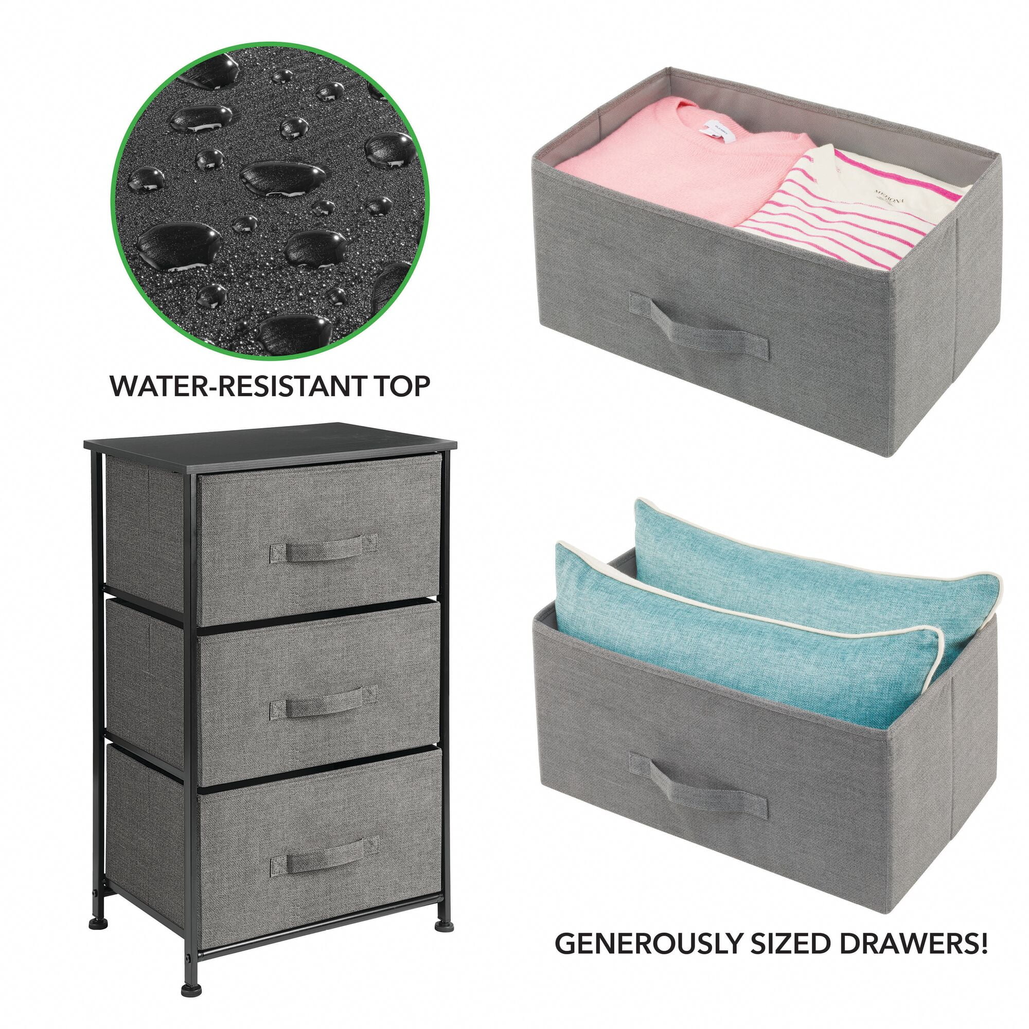 mDesign Storage Dresser Tower Furniture Unit with 3 Drawers – Charcoal Gray