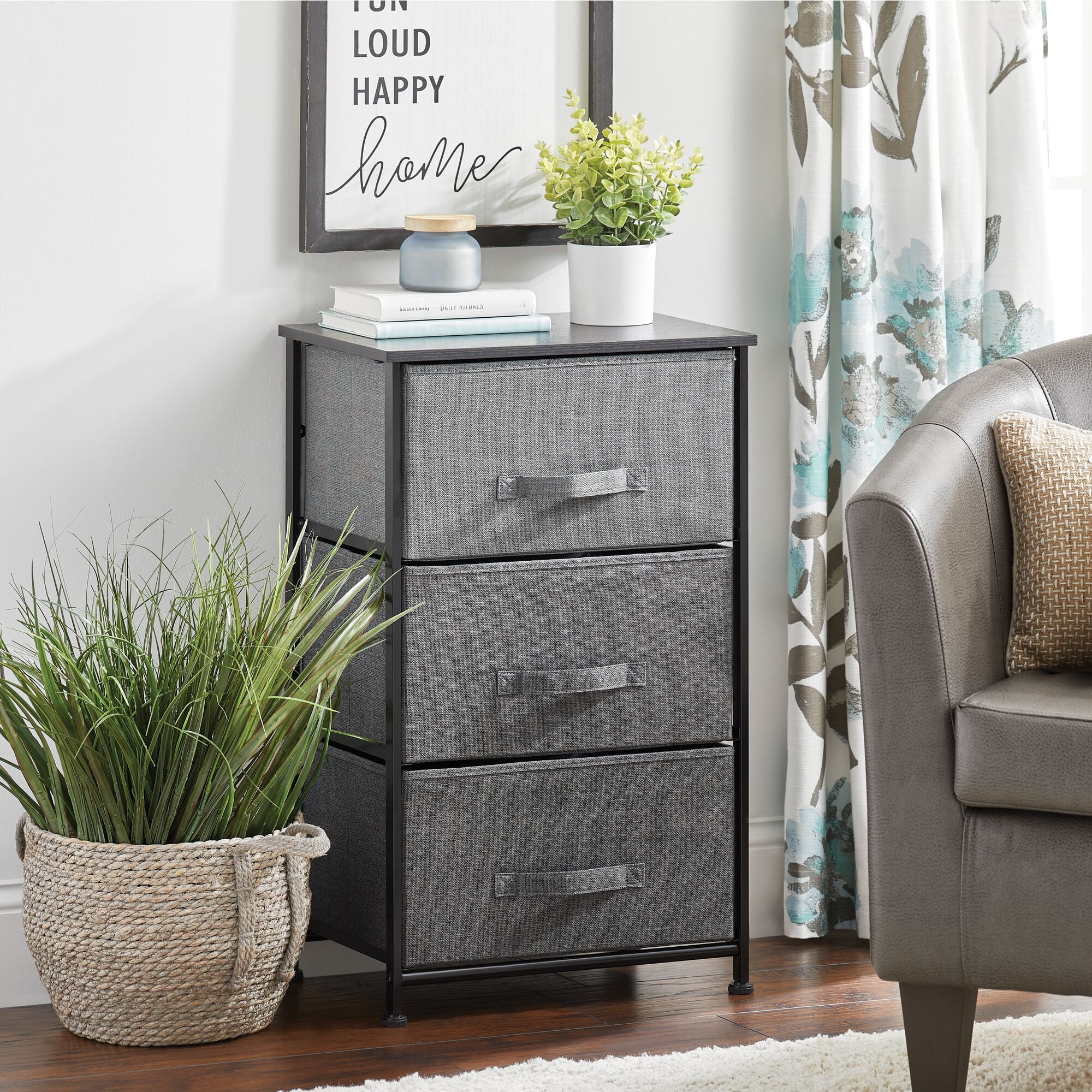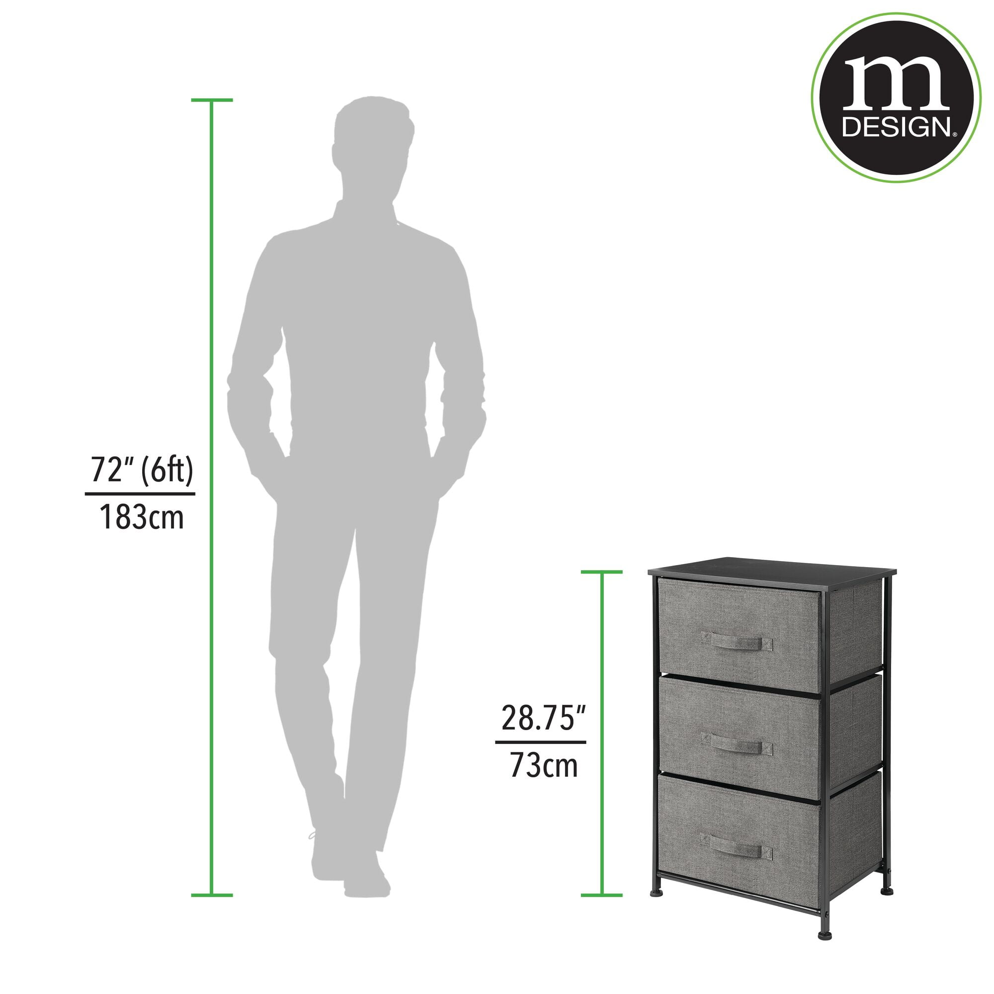Removable drawers store clothing and accessories in one place STYLISH STORAGE: Boasts a slim, lightweight design to easily fit into smaller spaces while still providing plenty of storage space; The generously sized removable drawers have an easy pull handle FUNCTIONAL & VERSATILE: Create coordinated organization in any room of the house; Great to tuck inside closets or add storage in the bedroom, nursery, kids playroom, entryway, the home office and more QUALITY CONSTRUCTION: Made of breathable non-woven synthetic fabric; Strong steel frame and durable MDF wood top; Plastic feet protect floors; Hardware is included for easy assembly EASY CARE: Clean with a damp cloth and allow to air dry THOUGHTFULLY SIZED: Measures 11.8″ x 17.7″ x 28.75″ high