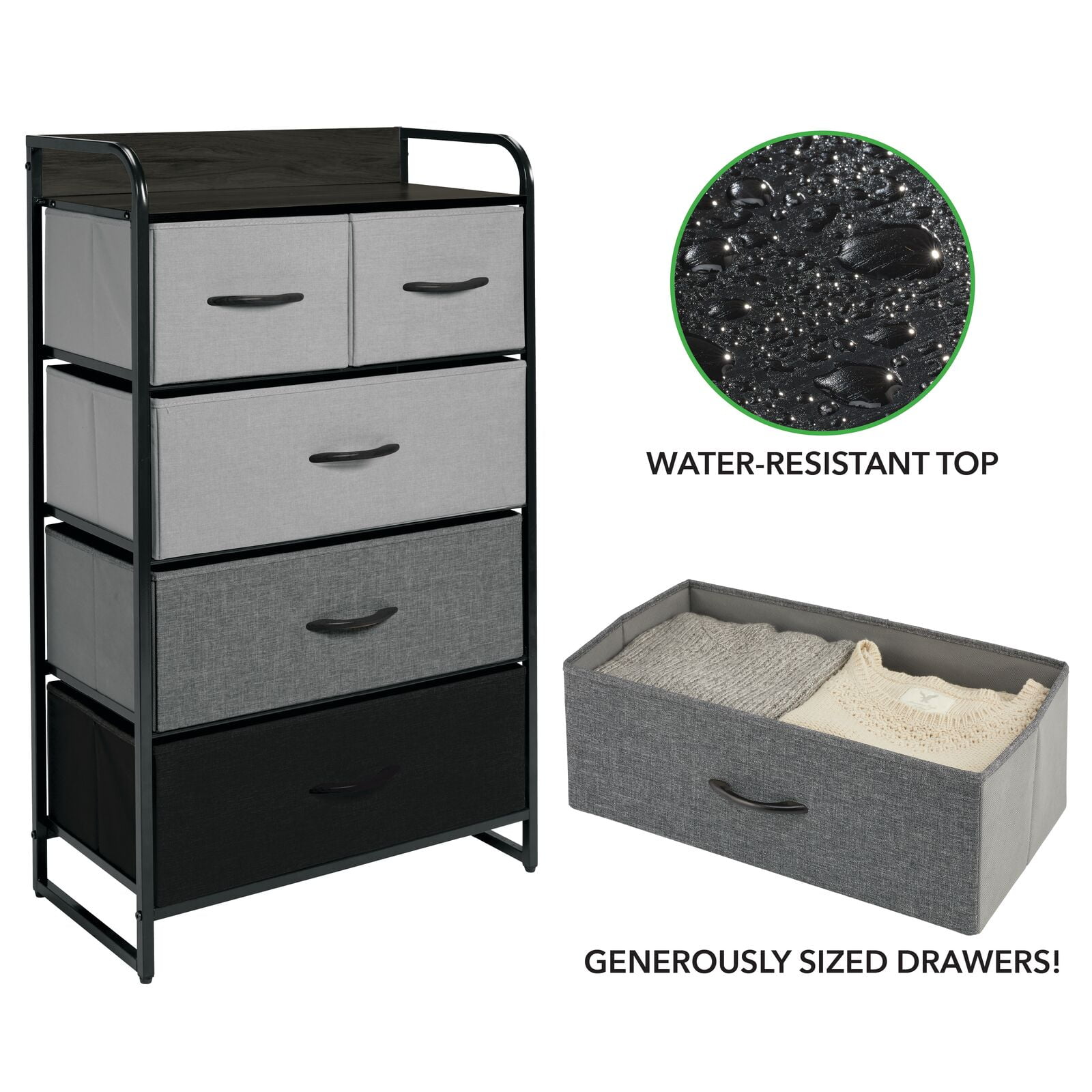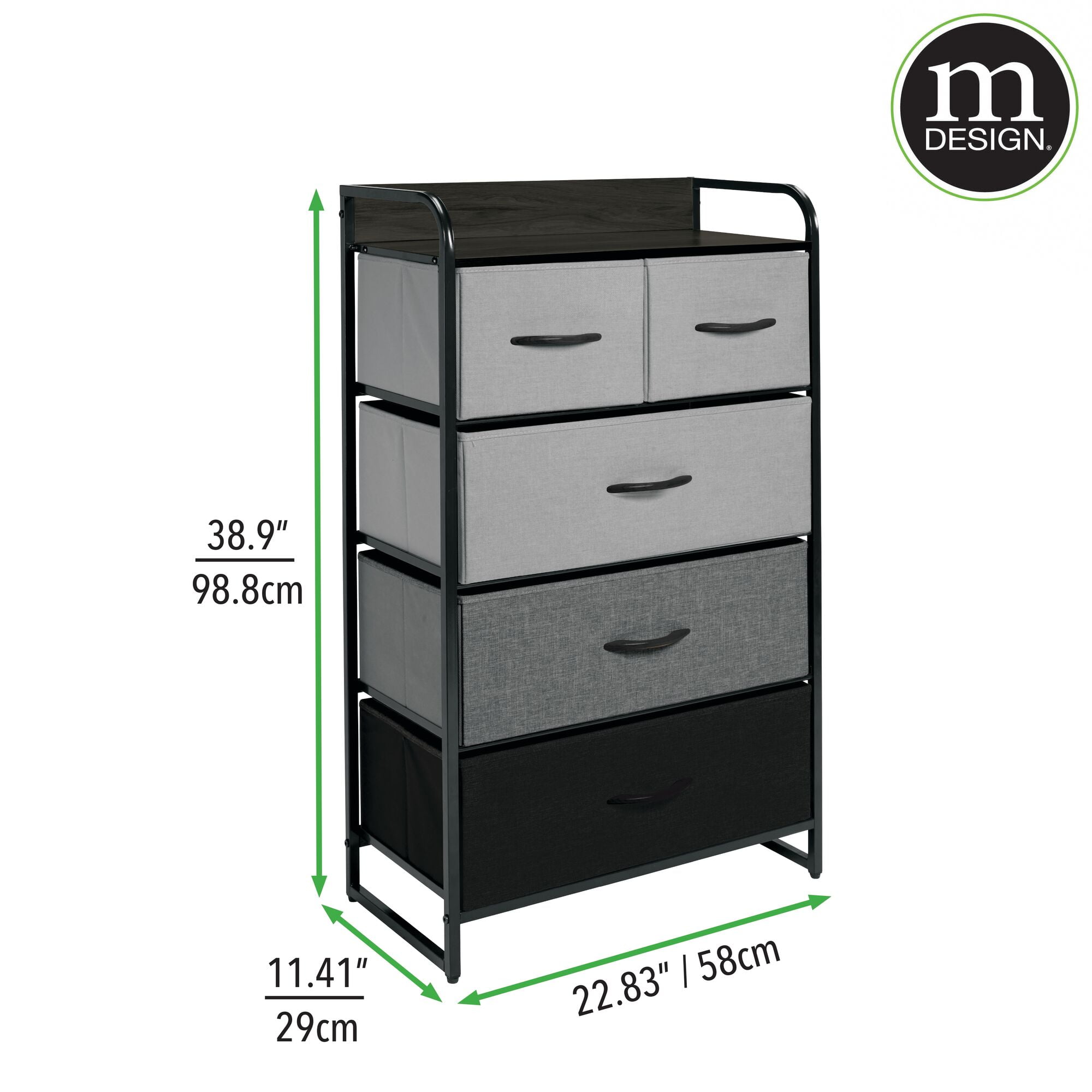 mDesign Tall Dresser Storage Chest, 5 Fabric Drawers – Gray/Multi-Color/Black