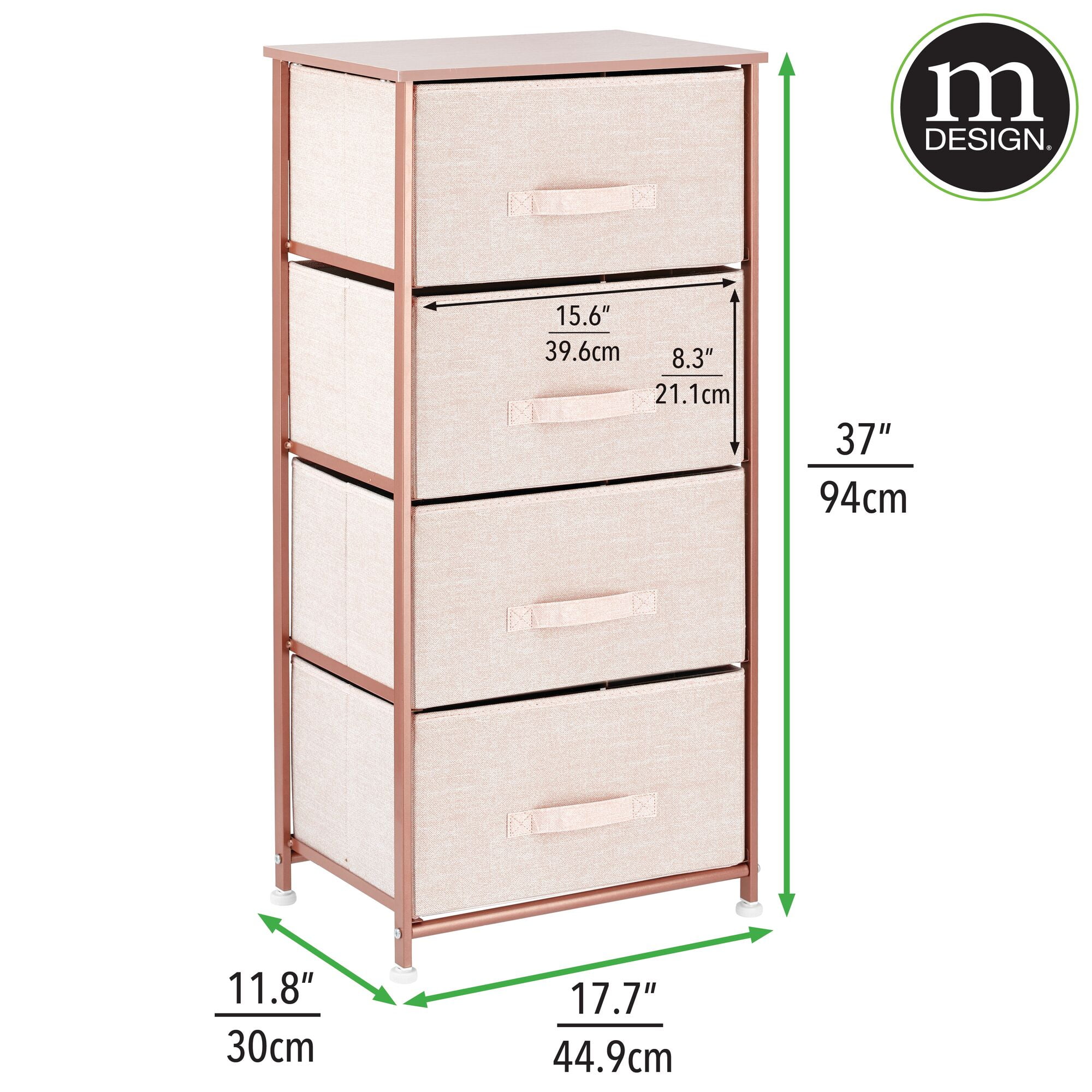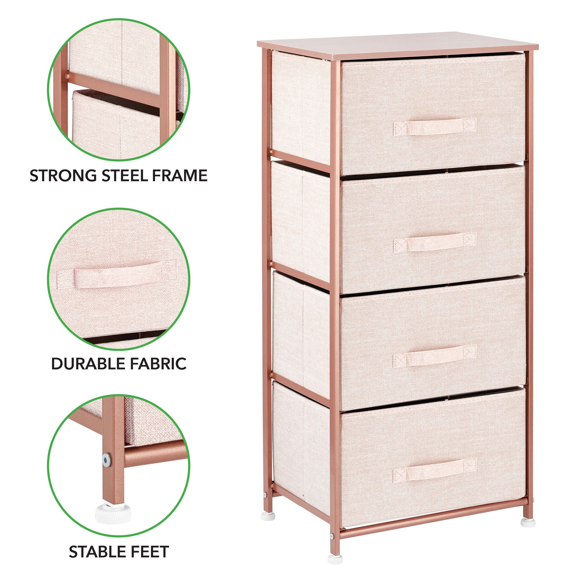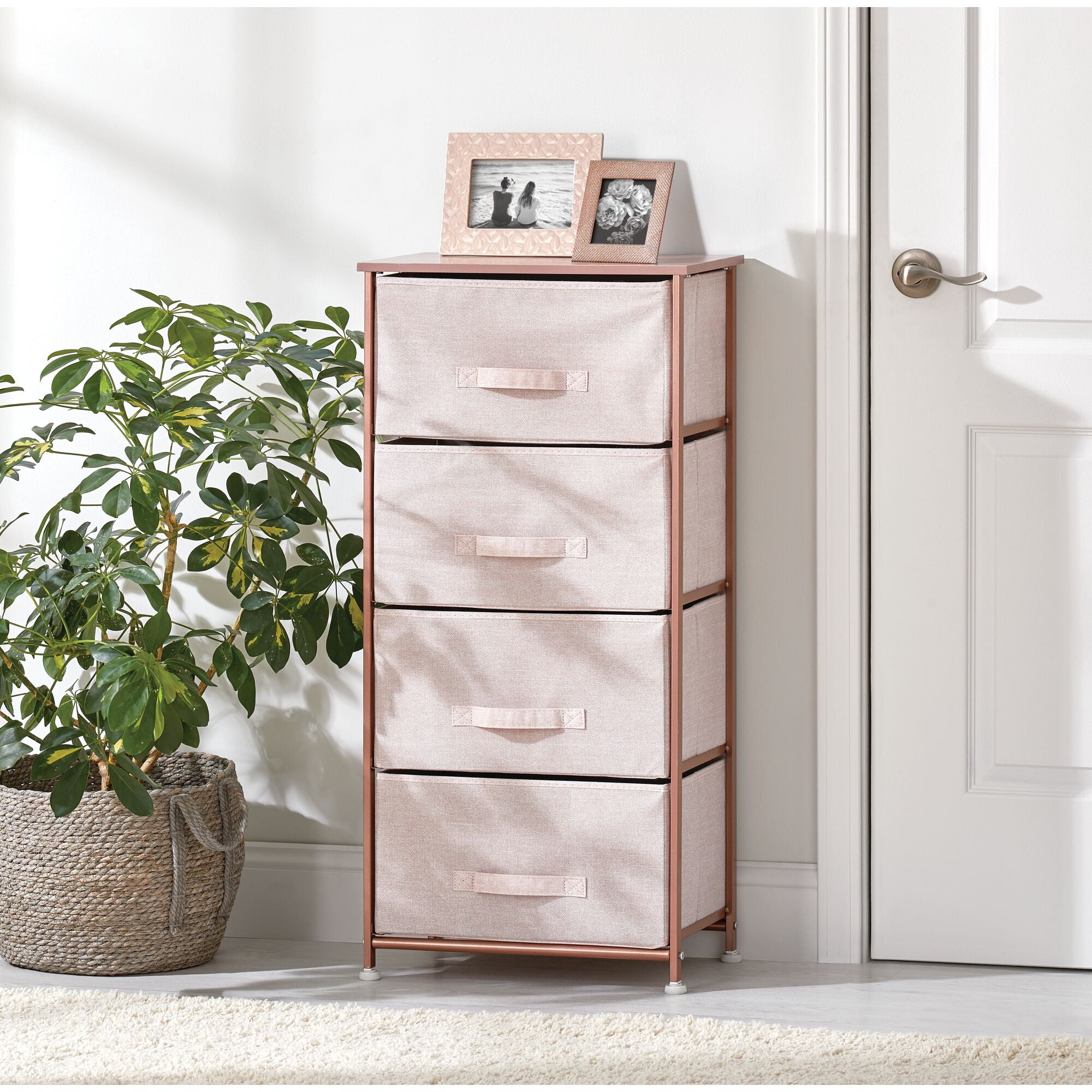 mDesign Tall Dresser Storage Tower Stand, 4 Fabric Drawers – Lt. Pink/Rose Gold