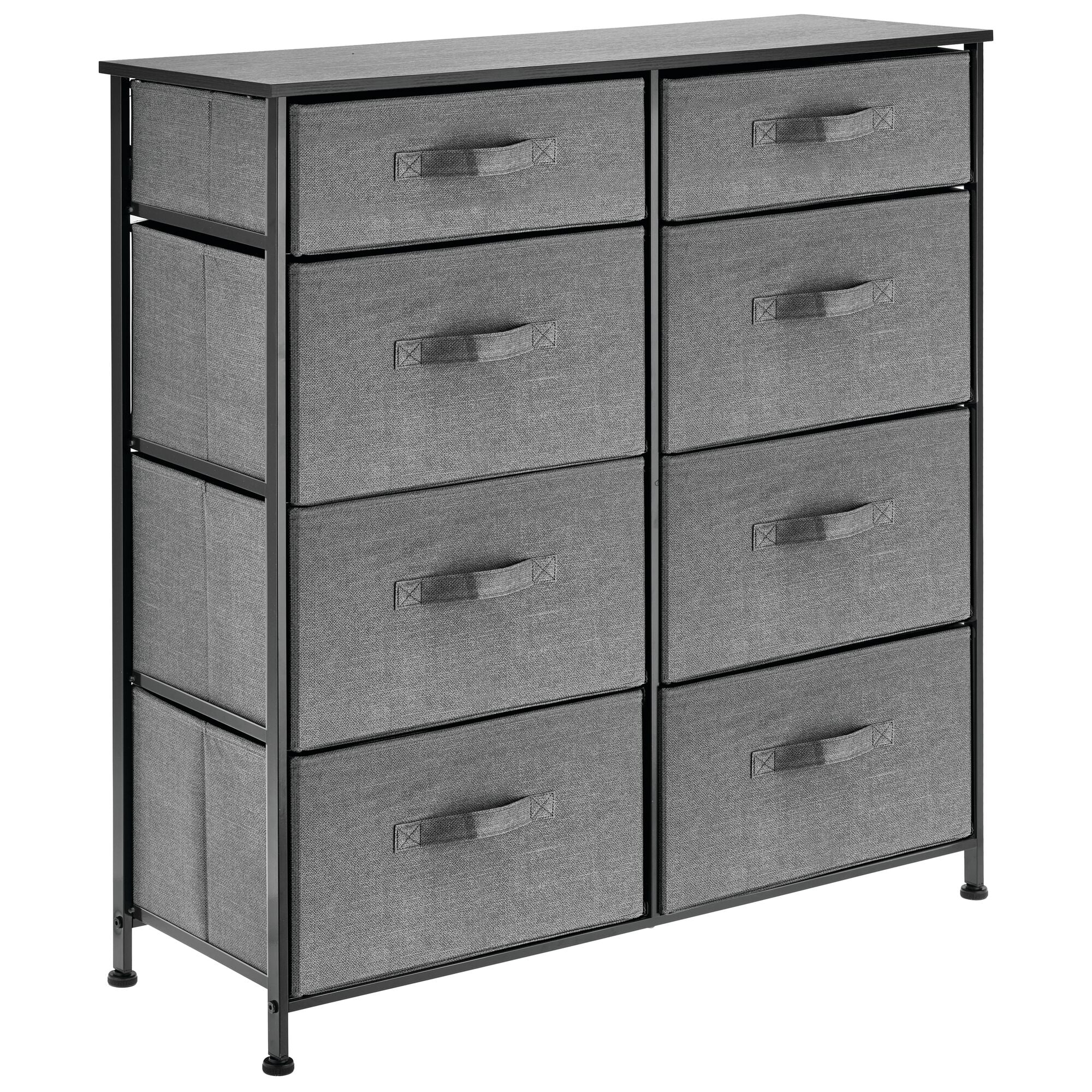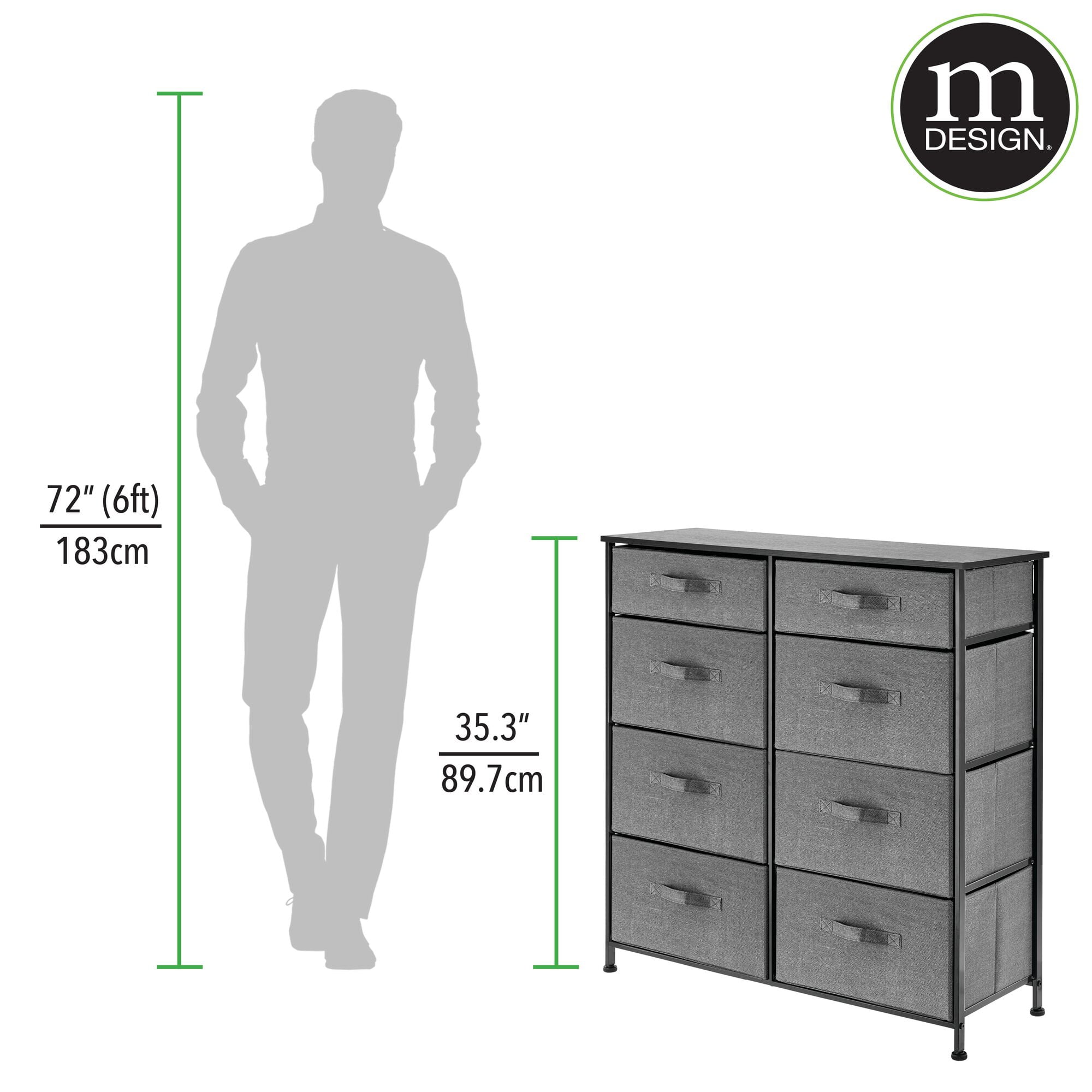 mDesign Tall Storage Dresser Furniture with 8 Slim Fabric Drawers, Dark Gray