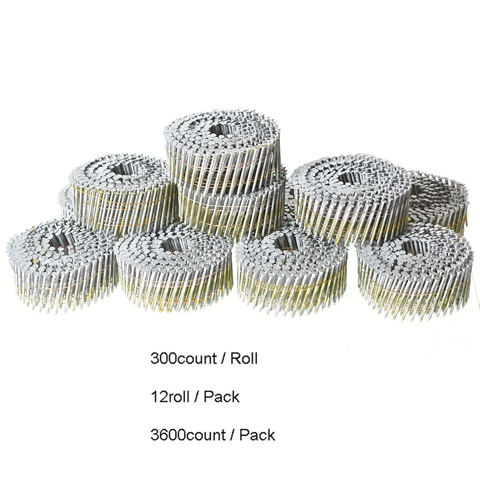 MechEquip Collated Nails, 3600 Pcs, 1-3/4 inch x 0.092 inch, Hot-Dipped Galvanized, 15 Degree