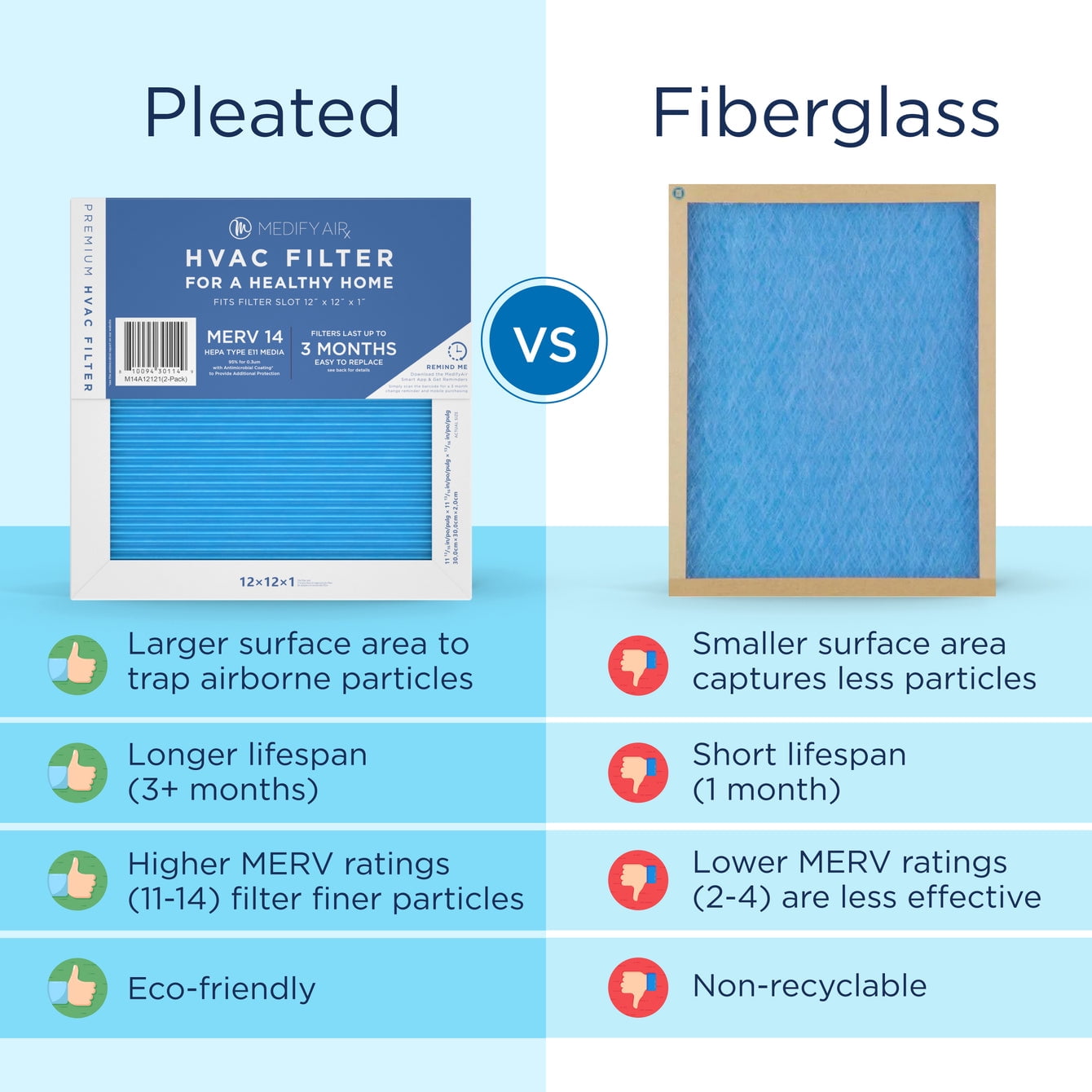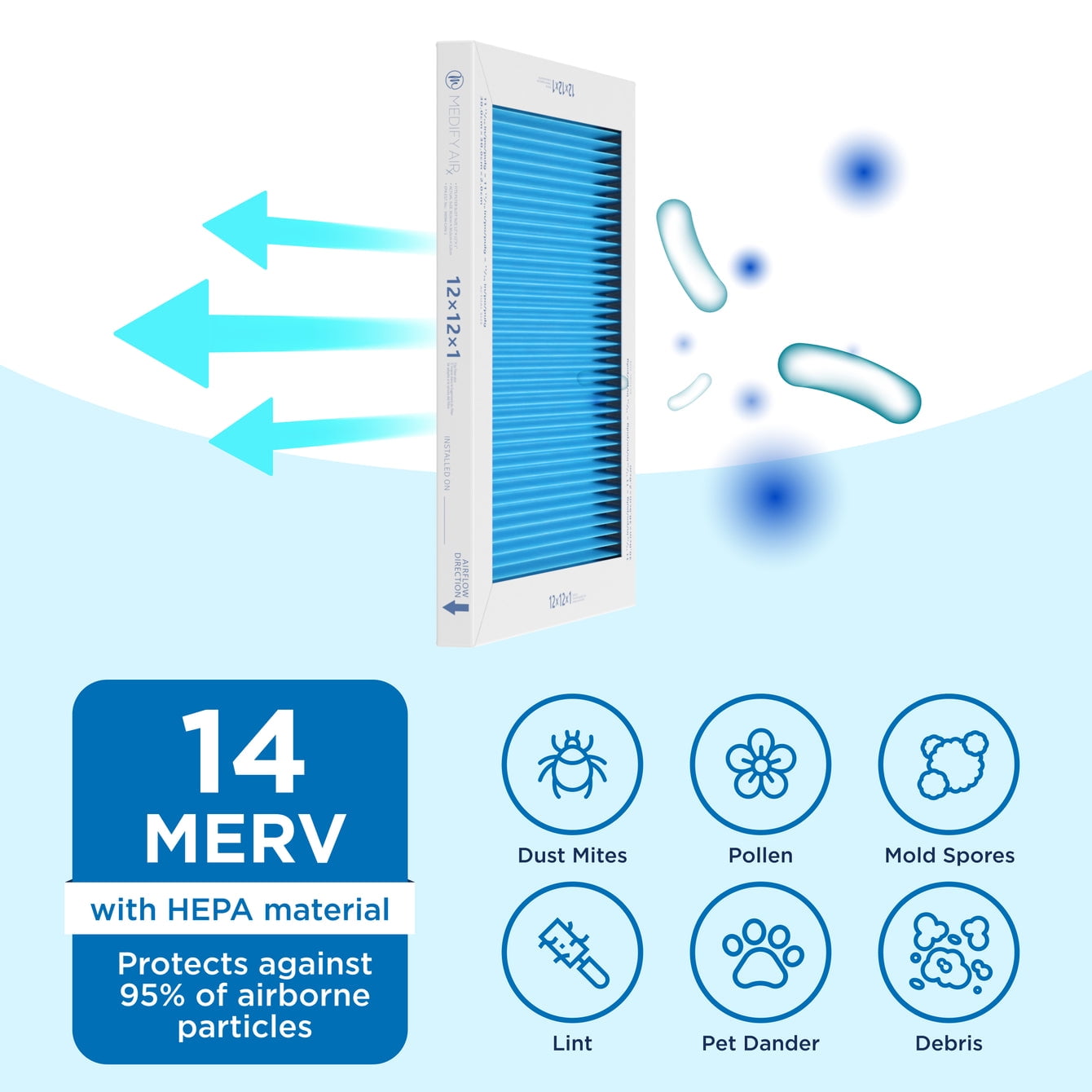 Medify Air 12x12x1 Air Filter, MERV 14 Pleated with HEPA, HVAC Furnace Filter, 2-Pack