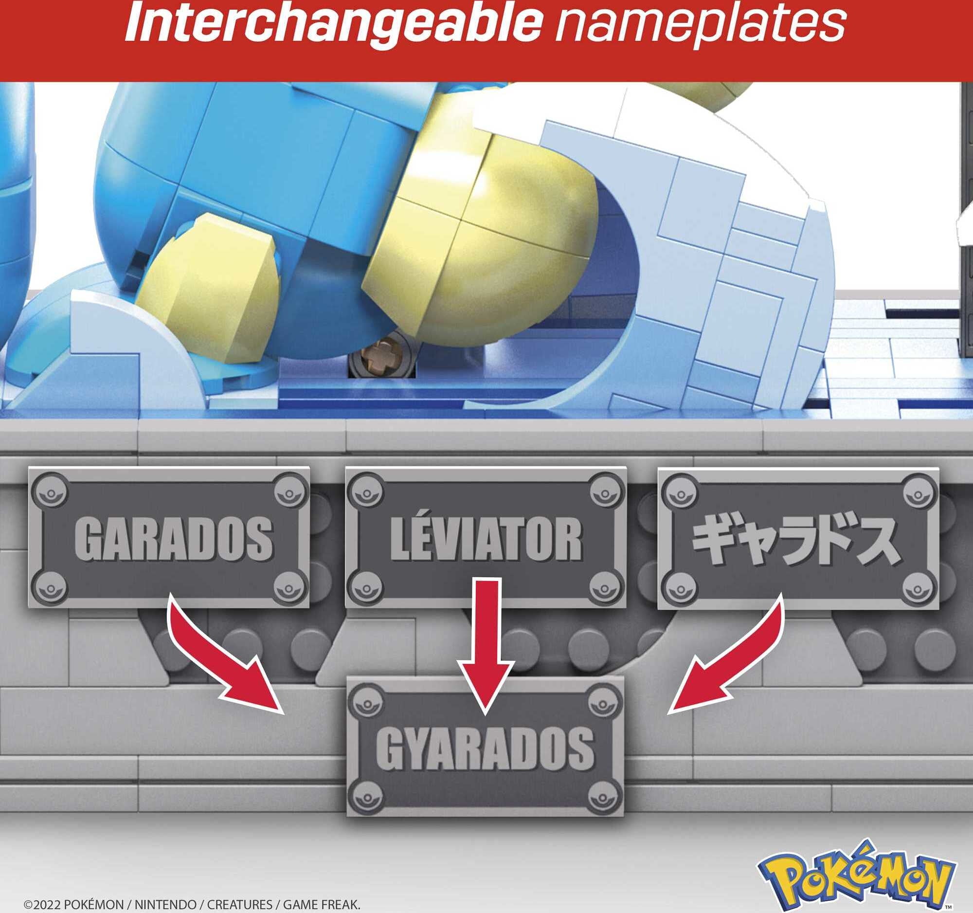 Fully mechanized Gyarados building set designed for adult builders Includes buildable display case with animated ocean environment Turning hand-activated crank activates swimming motion, opening mouth, flapping tail and pivoting neck 2186 bricks and pieces combine with all MEGA Pokémon building sets and are compatible with other name brands Ideal for ages 12 and up, toy helps to develop creativity and problem-solving skills Officially licensed by The Pokémon Company International