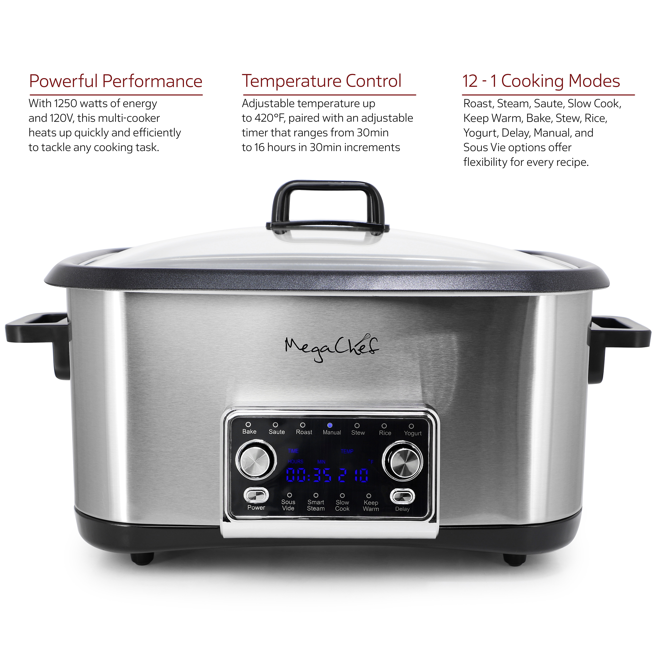 MegaChef 8 Quart 12-in-1 Deluxe Multi Cooker with Sous Vide and Multi-Functions