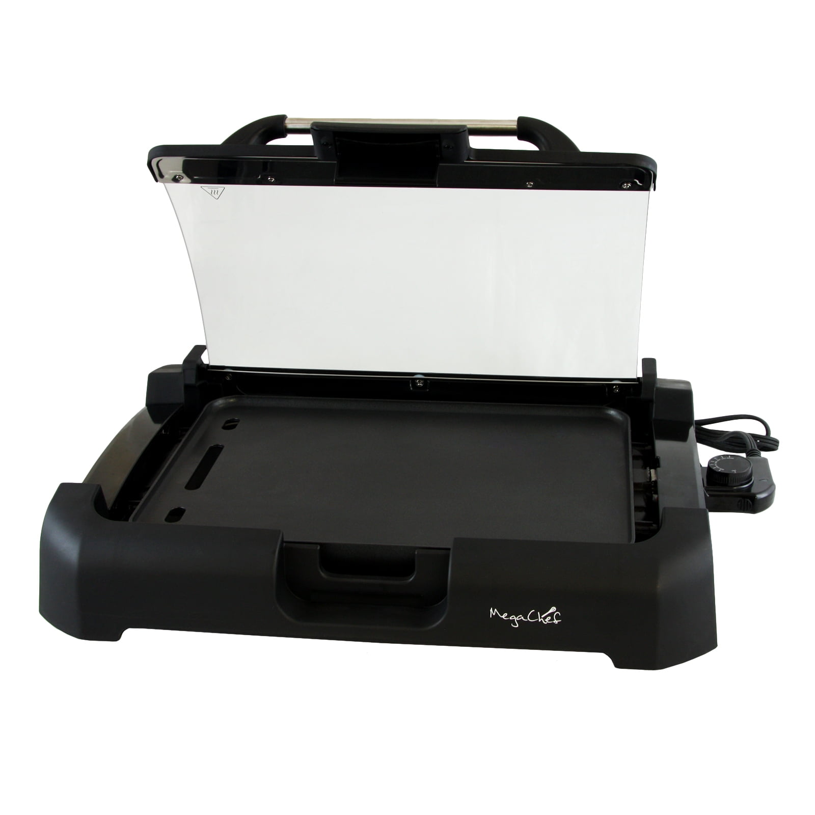 The Megachef Reversible Indoor Grill and Griddle with Removable Glass Lid is designed with a non-stick coating so that you can easily prepare delicious and appetizing meals with less oil than traditional cooking methods. MegaChef understands that no matter the weather outside, friends and family should always be welcome to enjoy juicy grilled meats and vegetables. Rain or Shine, this grill will be your ticket to those perfect grill lines everyone loves to see! The versatility of a reversible cooking surface means you can grill your meats and veggies, flip the grills cooking surface over and use it as a griddle for eggs, pancakes and much, much more! The non stick surface also means that your clean up is a breeze! Simply and easily wipe down any remaining foods with a moist dish cloth and you’re done! This grill is designed to be light weight and easily portable. You can easily take this reversible grill to your next vacation or getaway! The removable, adjustable temperature control accurately sets cooking temperature to achieve desired results when cooking a variety of foods. This grill offers a 15″ by 11″ cooking surface on both sides of the cooking surface panel. Which means you are getting both a 15″ Griddle and a 15″ Grill all in one! A removable glass lid is included for your safety and convenience. You can easily attache and remove the lid as needed to accommodate any cooking style you choose. The lid also features a closing latch to ensure it is not opened accidental and is securely held in place. Once fully opened and secured in the slots where the lid is attached to the grill, it will remain in a secure upright position to avoid the the possibility of closing. * Item Dimensions: 19.50″ L x x14.50″ W x 3.50″ H Item Dimensions: 19.50″ x 14.50″ x 3.50″ Item Weight: 9.00lbs