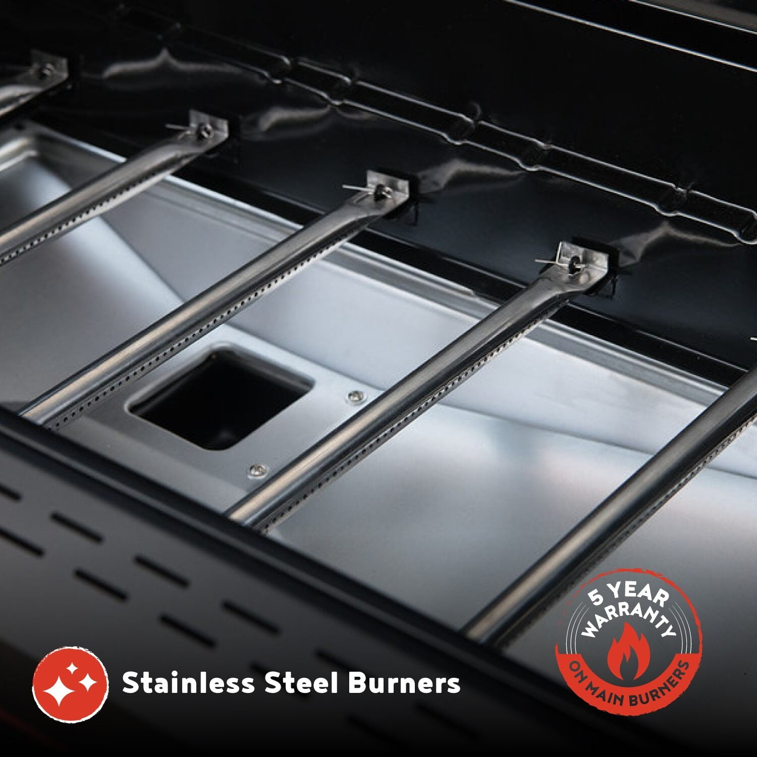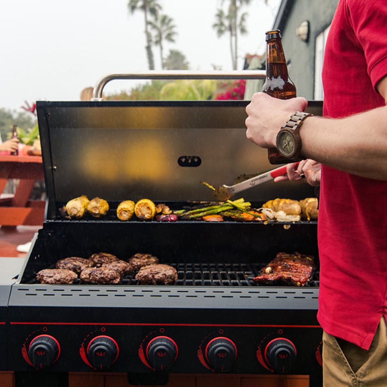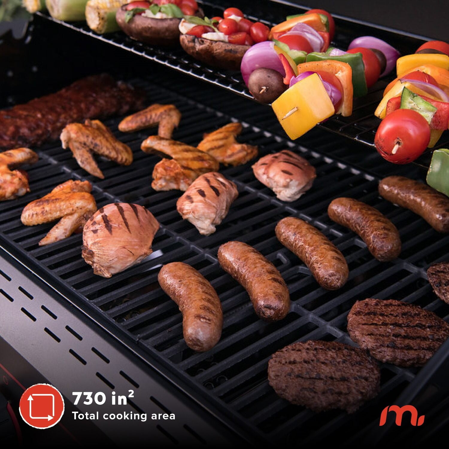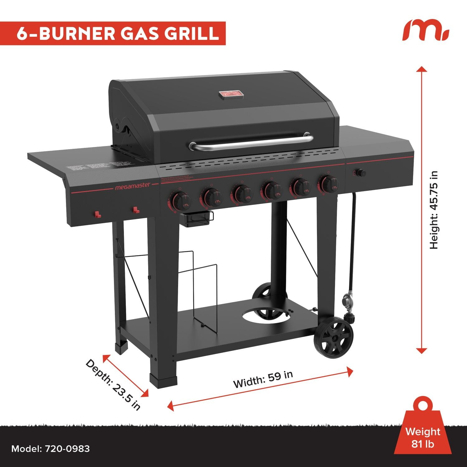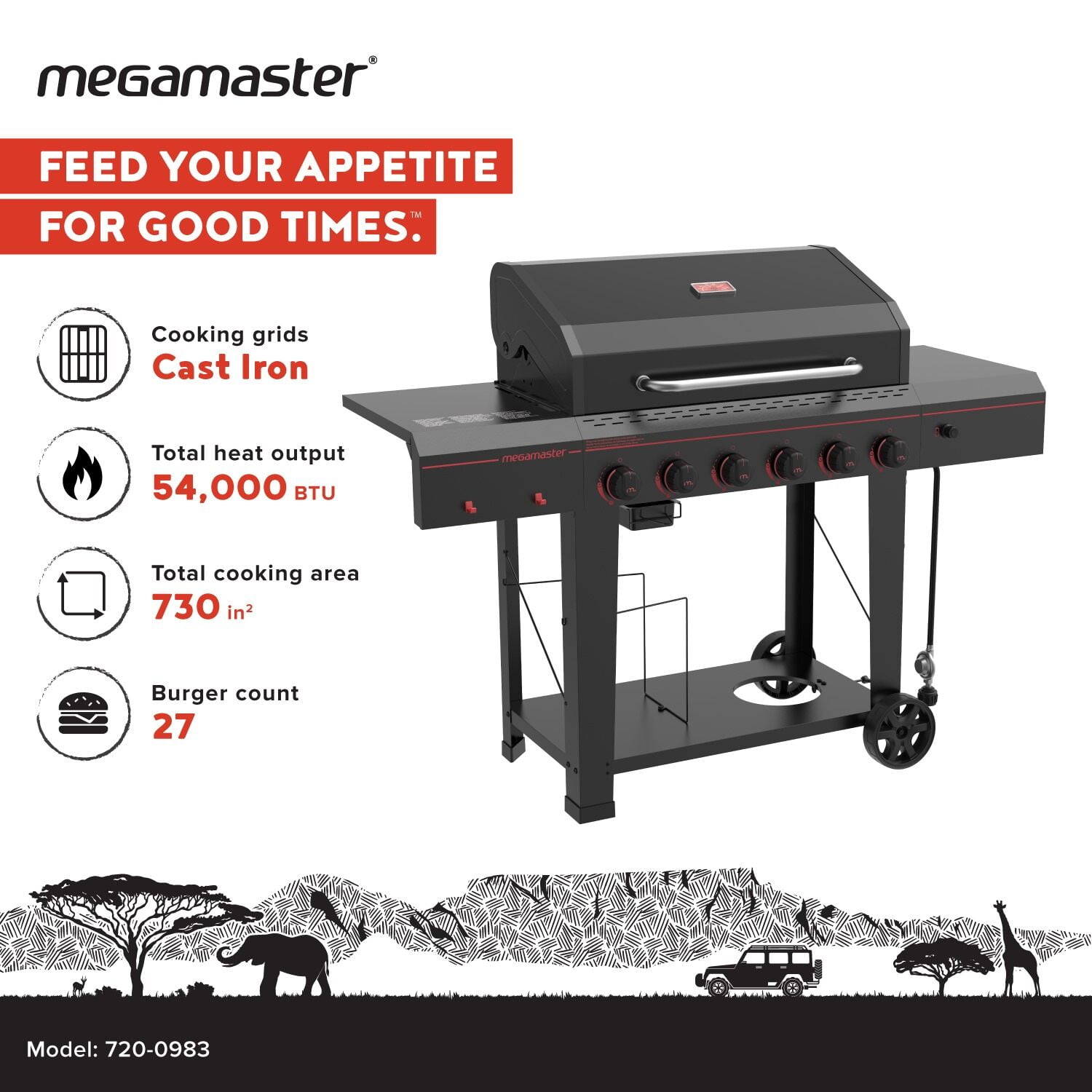 The Megamaster 6 Burner Outdoor Gas Grill 720-0983 is a powerhouse designed to meet the needs of serious grilling aficionados. Offering 54,000 BTUs of cooking energy, this high-performance patio grill heats up quickly and evenly, ensuring your food cooks perfectly every time. With a generous 753 square inches of cooking space, it offers ample room to propane BBQ grill everything from steaks to veggies to chicken wings, whether you’re cooking for a crowd or just enjoying a casual family dinner. The durable porcelain cast iron grids provide superior heat retention, delivering consistent cooking results and are easy to clean after a long day of grilling. A built-in thermometer helps you maintain precise temperature control, so you can grill with confidence. The oversized side tables give you extra space to prep your ingredients, sauces, or side dishes, while the convenient tool hooks keep your grilling accessories organized and within reach. Built with a heavy-duty porcelain steel firebox, this propane grill is built to last and withstand the elements, ensuring it will provide reliable service for years to come. Whether you’re hosting a BBQ party or cooking a weekend meal, the Megamaster 6 Burner BBQ Gas Grill is the ideal choice for any grilling enthusiast.