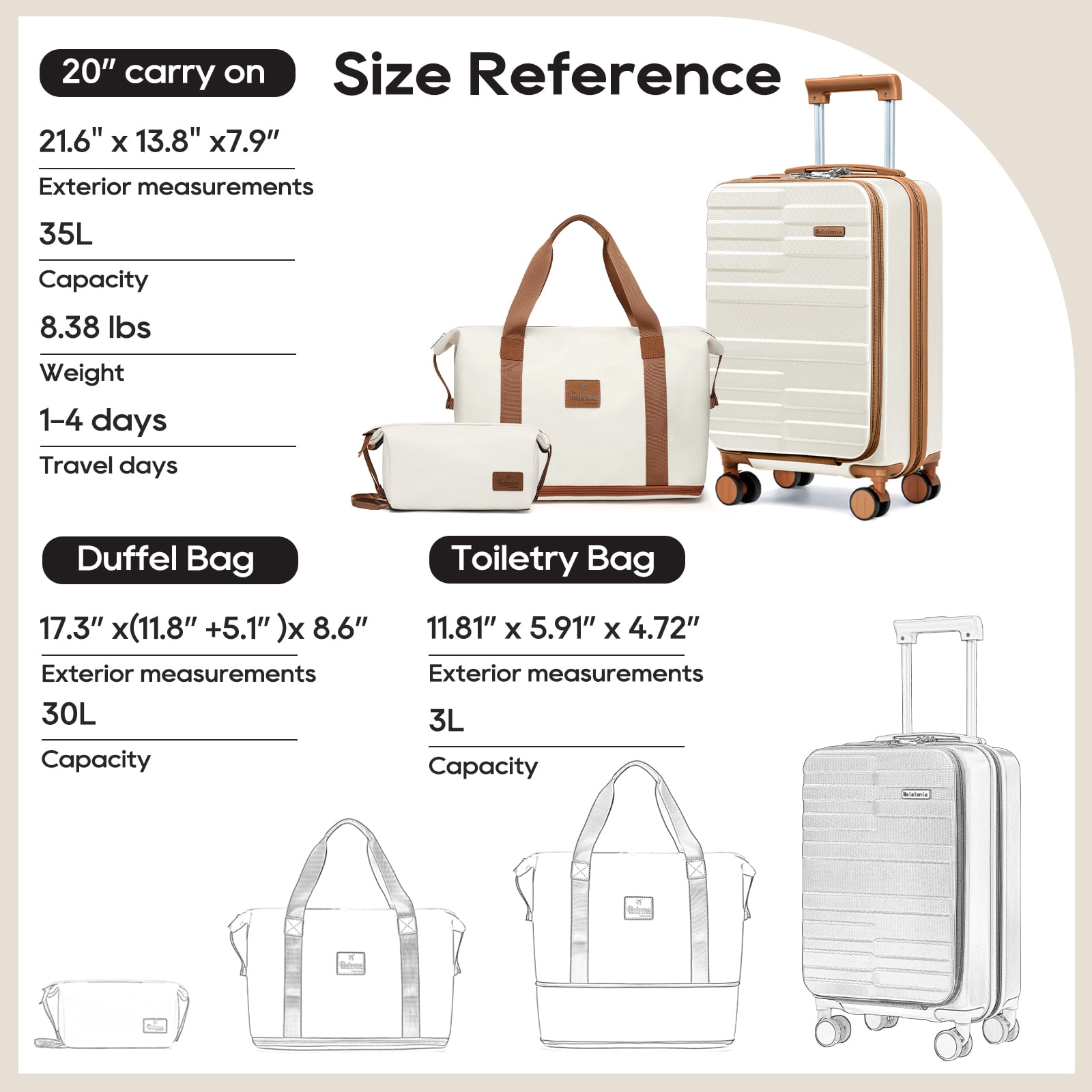 Melalenia luggage is designed for modern travelers with both durability and style, using high-strength ABS (Acrylonitrile Butadiene Styrene) is a thermoplastic resin with high tensile strength. Mainly used in aviation products and high-end luggage. It has the characteristics of light weight, softness, strong flexibility, and not easy to deform. Anti-impact, anti-fall, explosion-proof, waterproof, and anti-collision, and can rebound immediately afterwards to protect the luggage. Lightweight and durable. Let you go anywhere with ease and confidence. Product Introduction: 20″ : L13.9′ W’ 8.66′ H’ 21′ Weight: 8.8lb – Capacity: 45L HOW DO I RESET THE COMBINATION LOCK 1.The lock is set to 0-0-0 at the factory. 2.Locate the reset button adjacent to the dials, push it and hold while you rotate the dials to your desired 3-digit code. 3.Release the reset button and your code is now set. 4.Scramble the dials and test your new code to be sure the correct one is set.