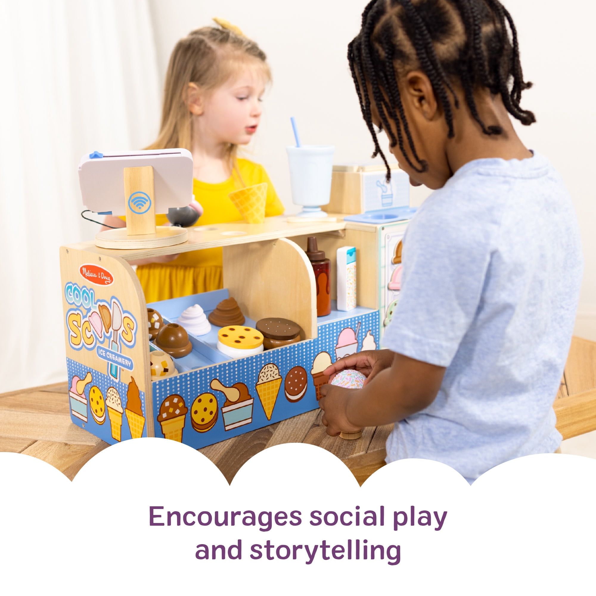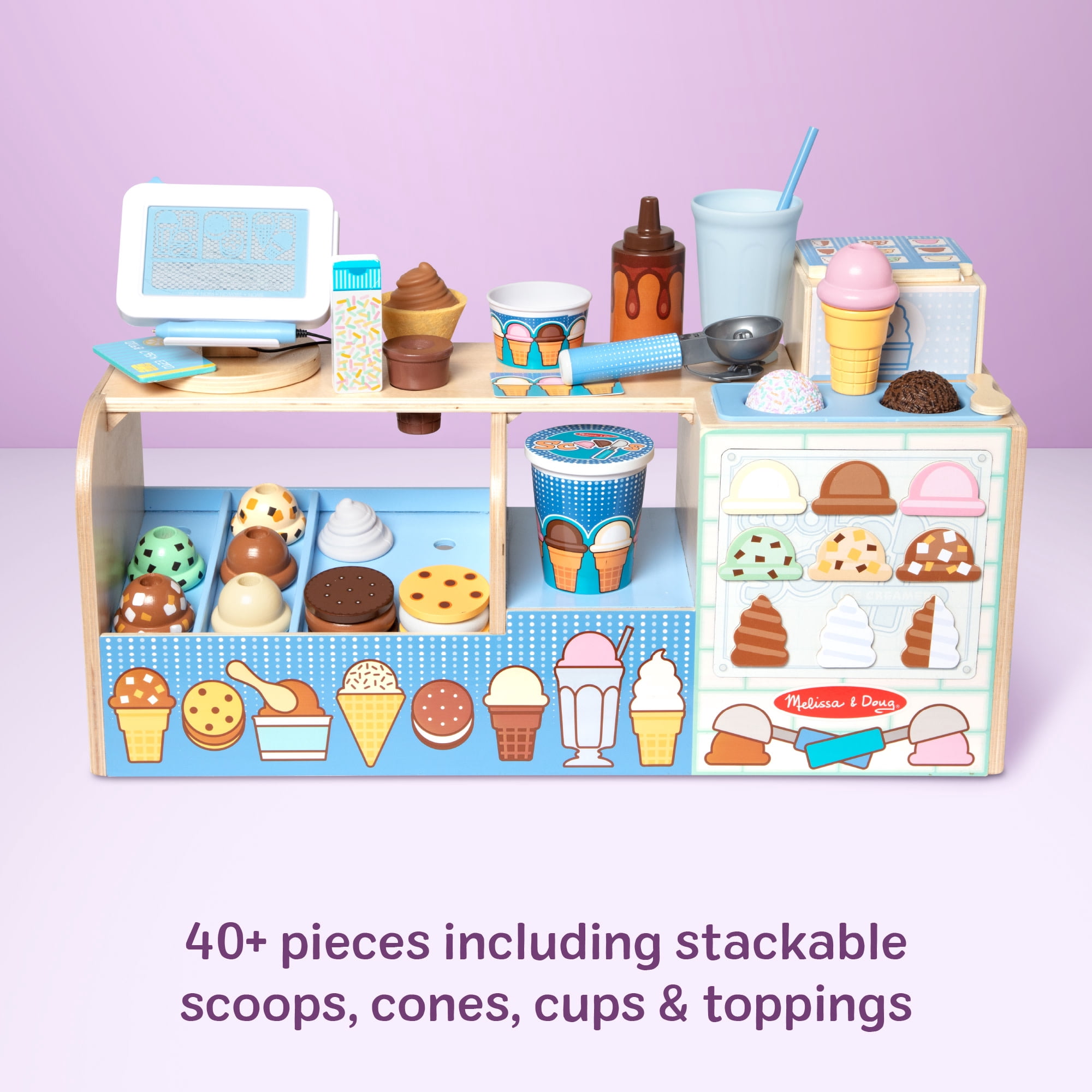 Melissa & Doug Cool Scoops Ice Creamery Wooden Counter with Play Food Preschool Toy – FSC Certified