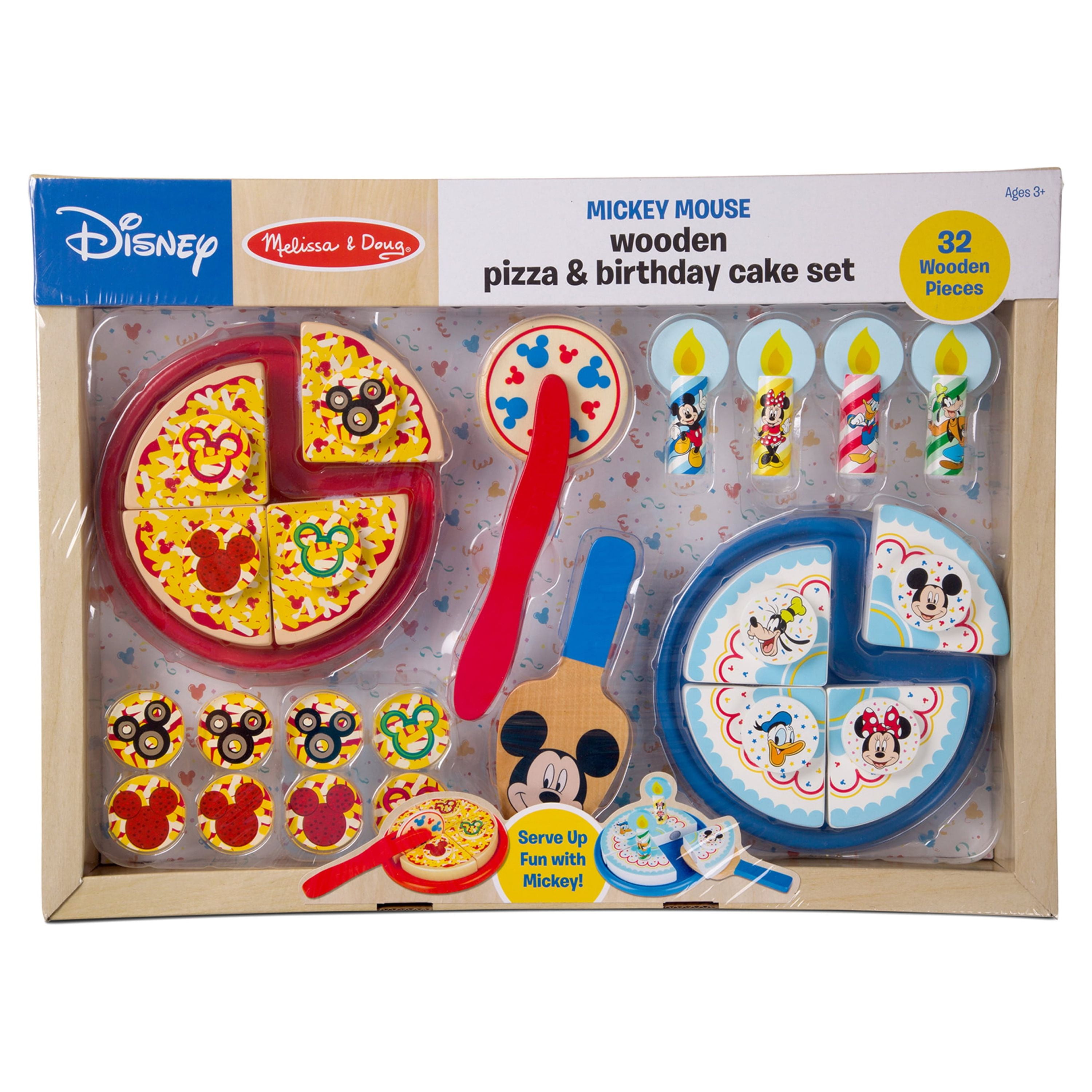 Melissa & Doug Disney Mickey Mouse Wooden Pizza and Birthday Cake Set (32 Pieces, Play Food, Great Gift for Girls and Boys – Best for 3, 4, 5 Year Olds and Up)