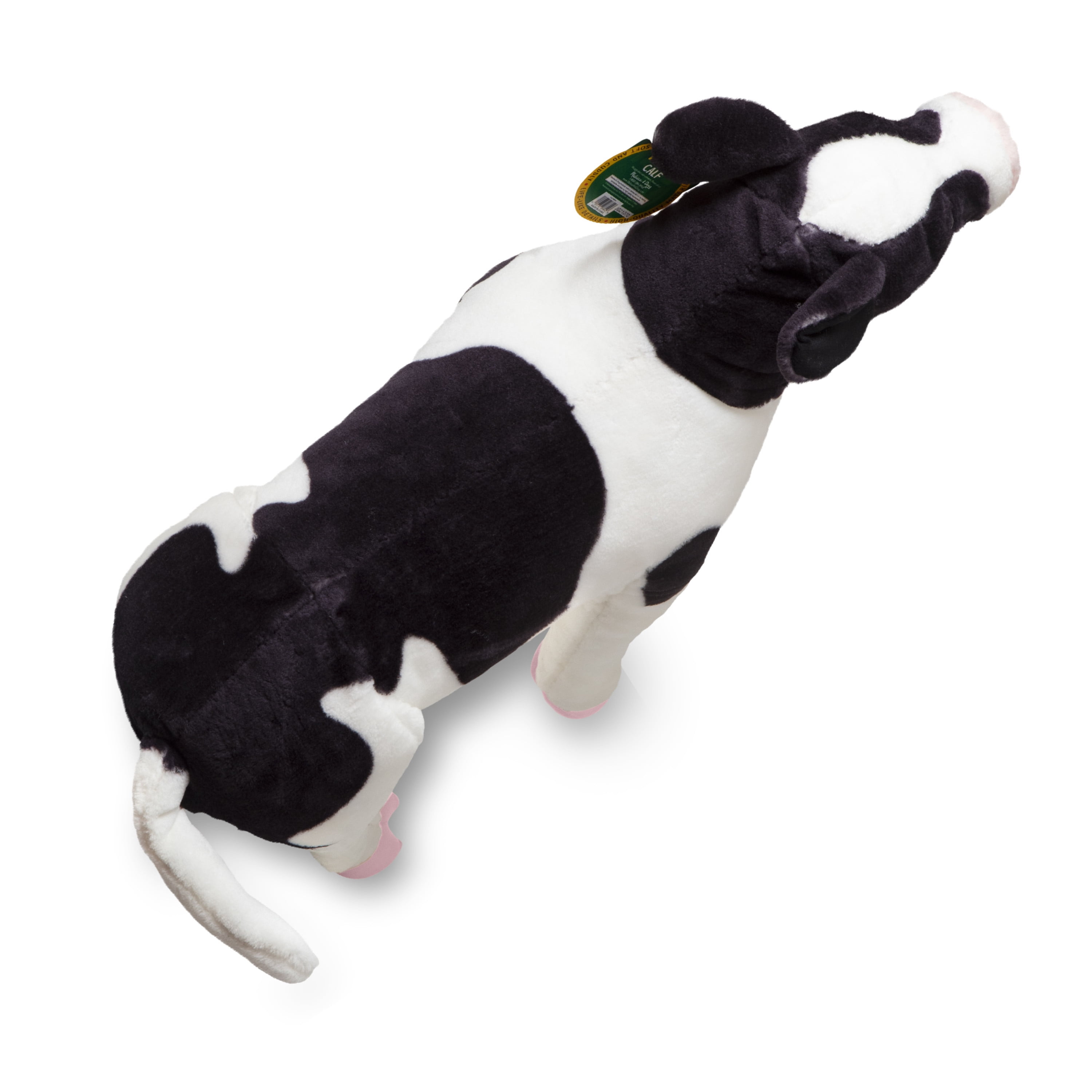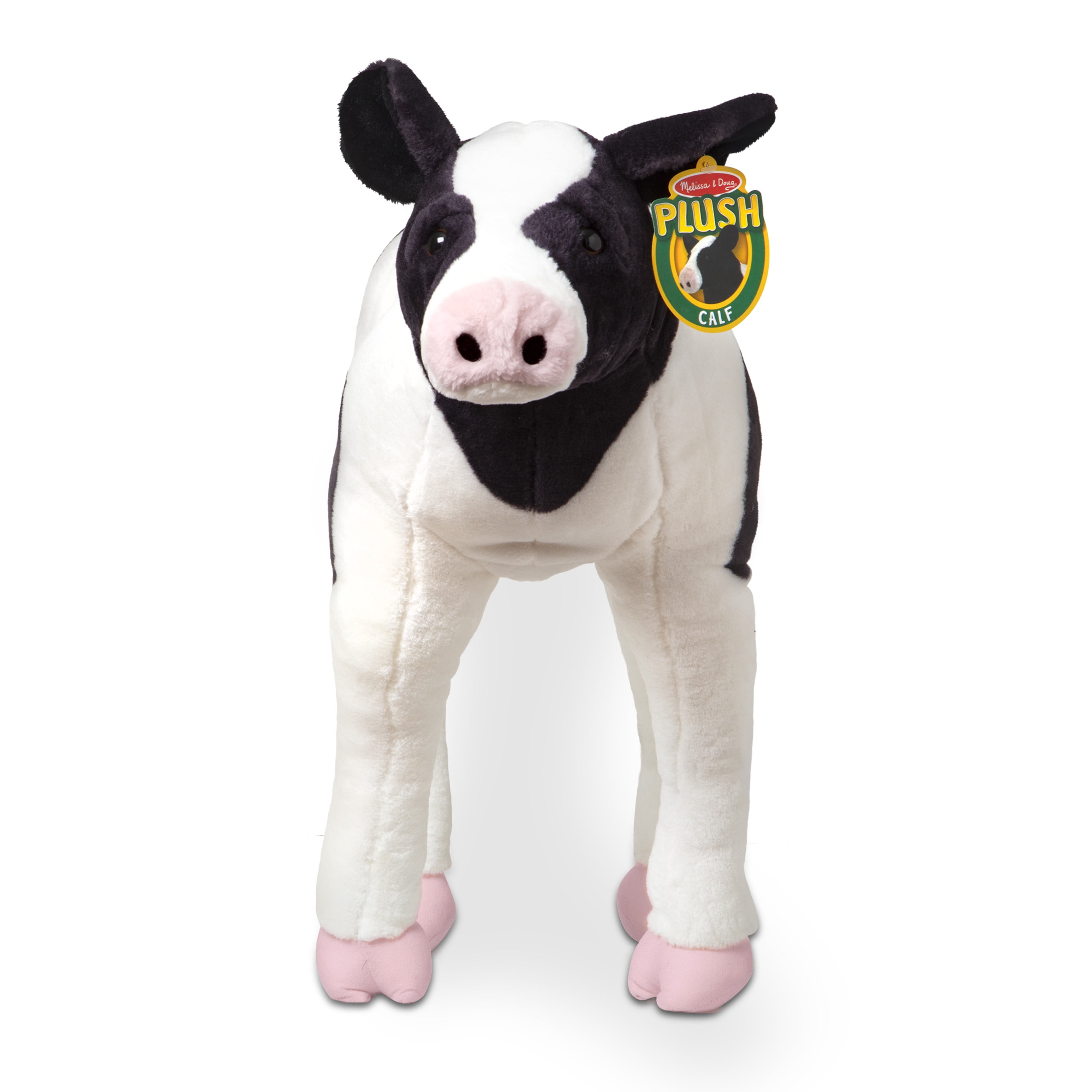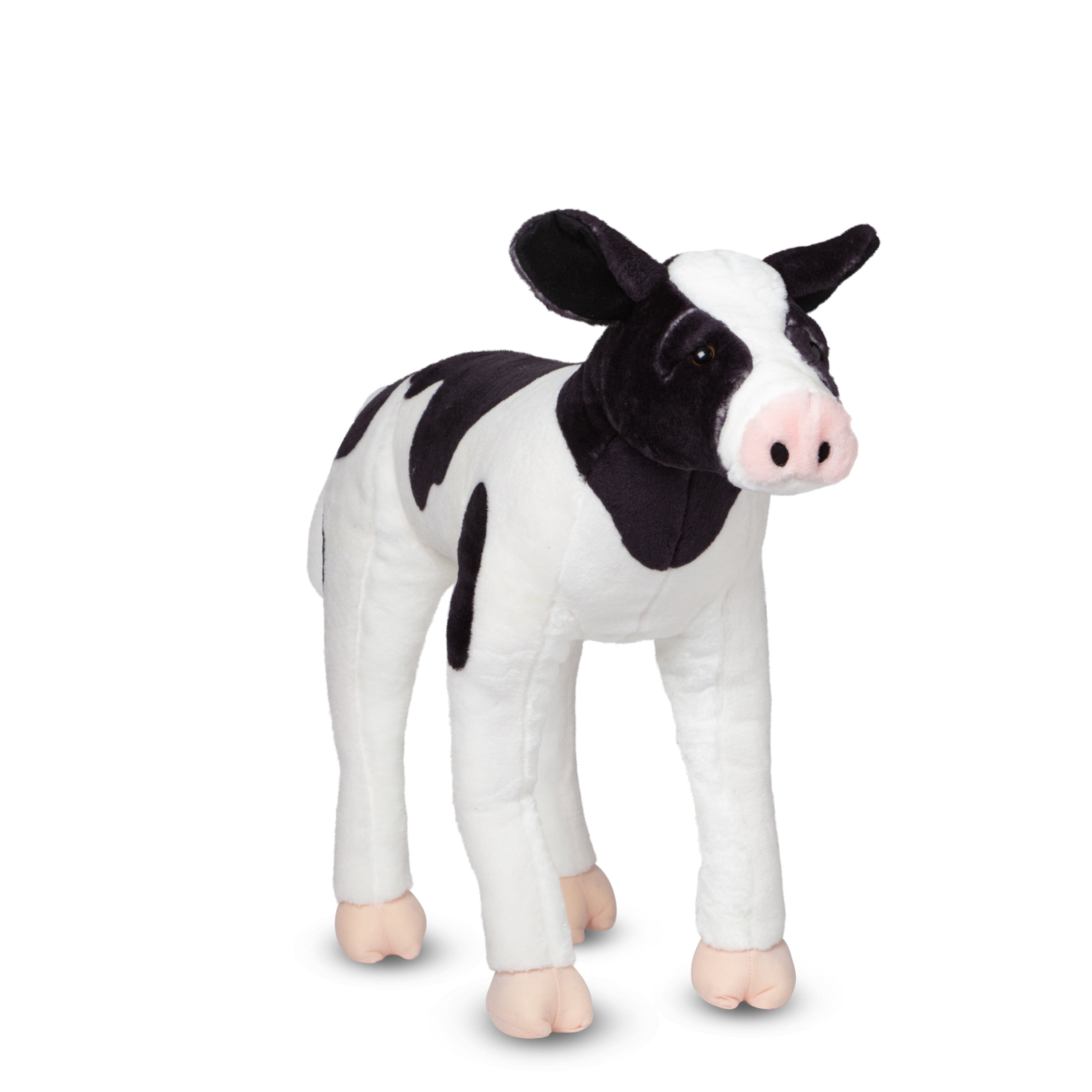 Standing stuffed plush lifelike baby cow Realistic details include black and white markings, floppy ears, pink snout, and soft hooves Soft and squeezable with sturdy interior structure; quality craftsmanship Not intended as a seat or ride-on; 31″L x 24″H x 11.5″W Makes a great gift for kids 3 to 103, for hands-on, screen-free play