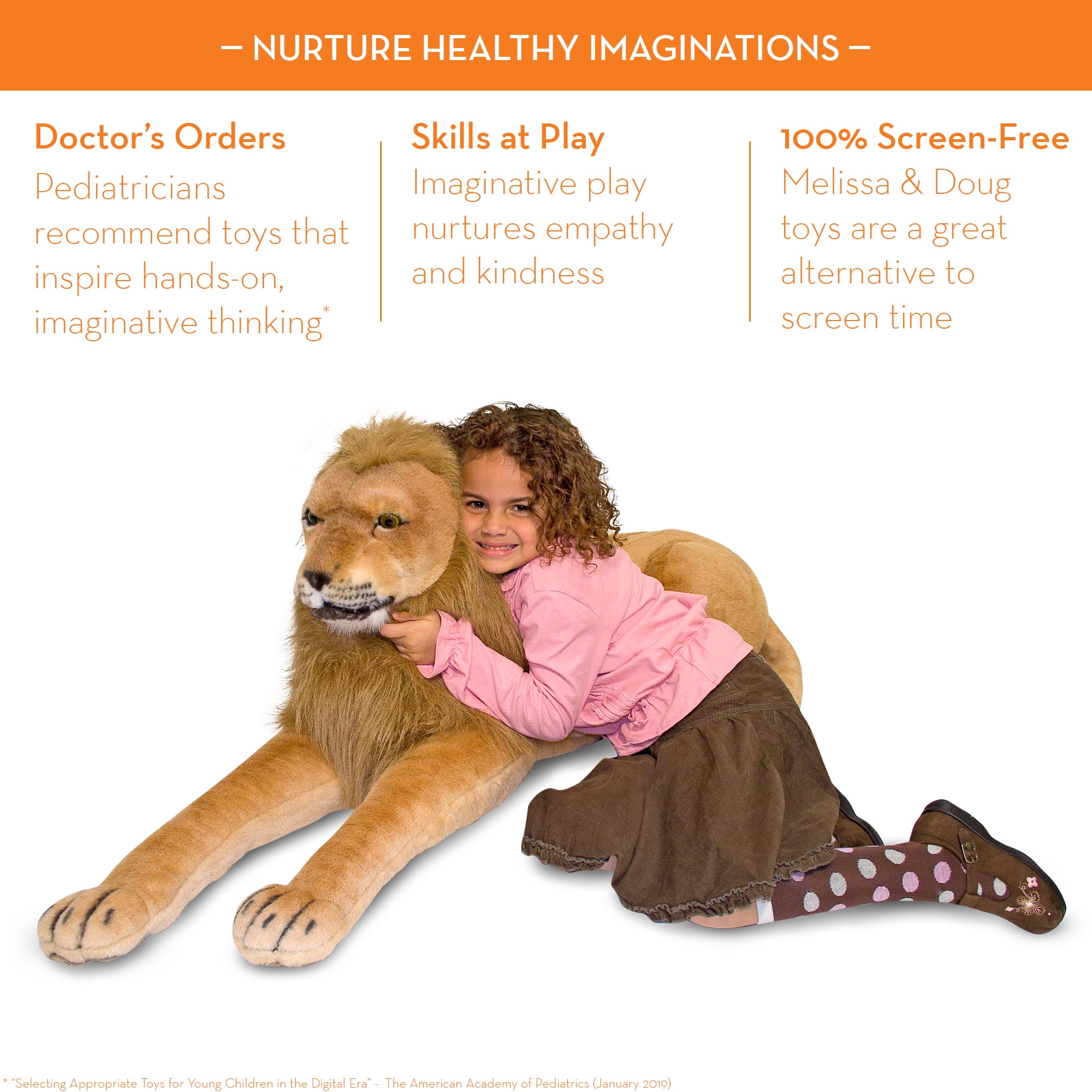 This lifelike regal plush lion is truly the king of stuffed animals Quality-crafted with a flowing mane and adorable regal face Soft polyester fabric and a sturdy interior structure Measures approximately 70 inches long Makes a great gift for ages 3 to 103, for hands-on, screen-free play
