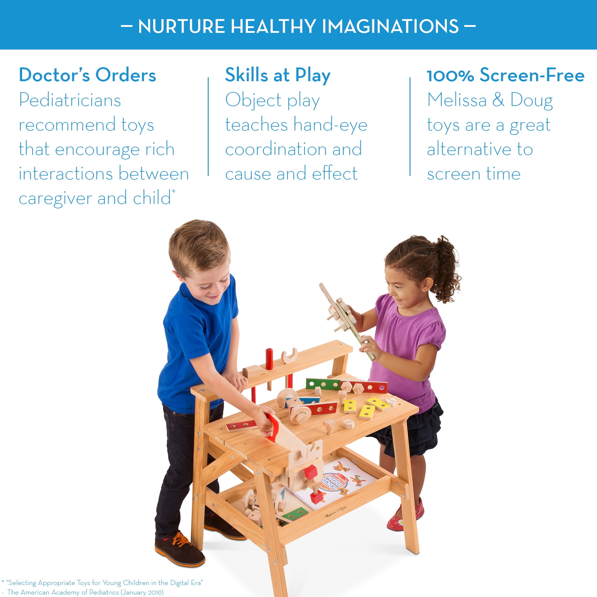 Kid-sized workbench includes a functioning vise, tool rack, wooden tools, and hardware Equipped with storage shelf Includes project ideas to spark imagination Sturdy wooden construction; high-quality materials ensure durability and safety Makes a great gift for preschoolers, ages 3 to 6, for hands-on, screen-free play