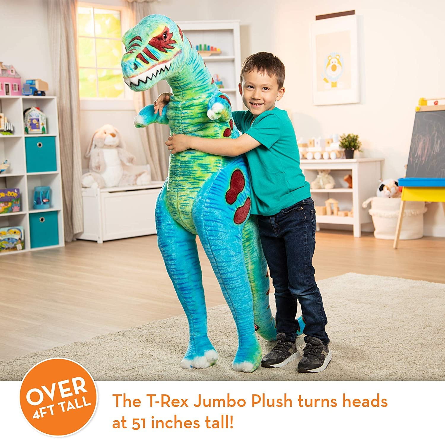 Standing plush multi-colored giant T-Rex dinosaur Stands more than four feet tall Quality craftsmanship and strong interior structure Promotes creative and imaginative play Make a great gift for ages 3 to 103, for hands-on, screen-free play