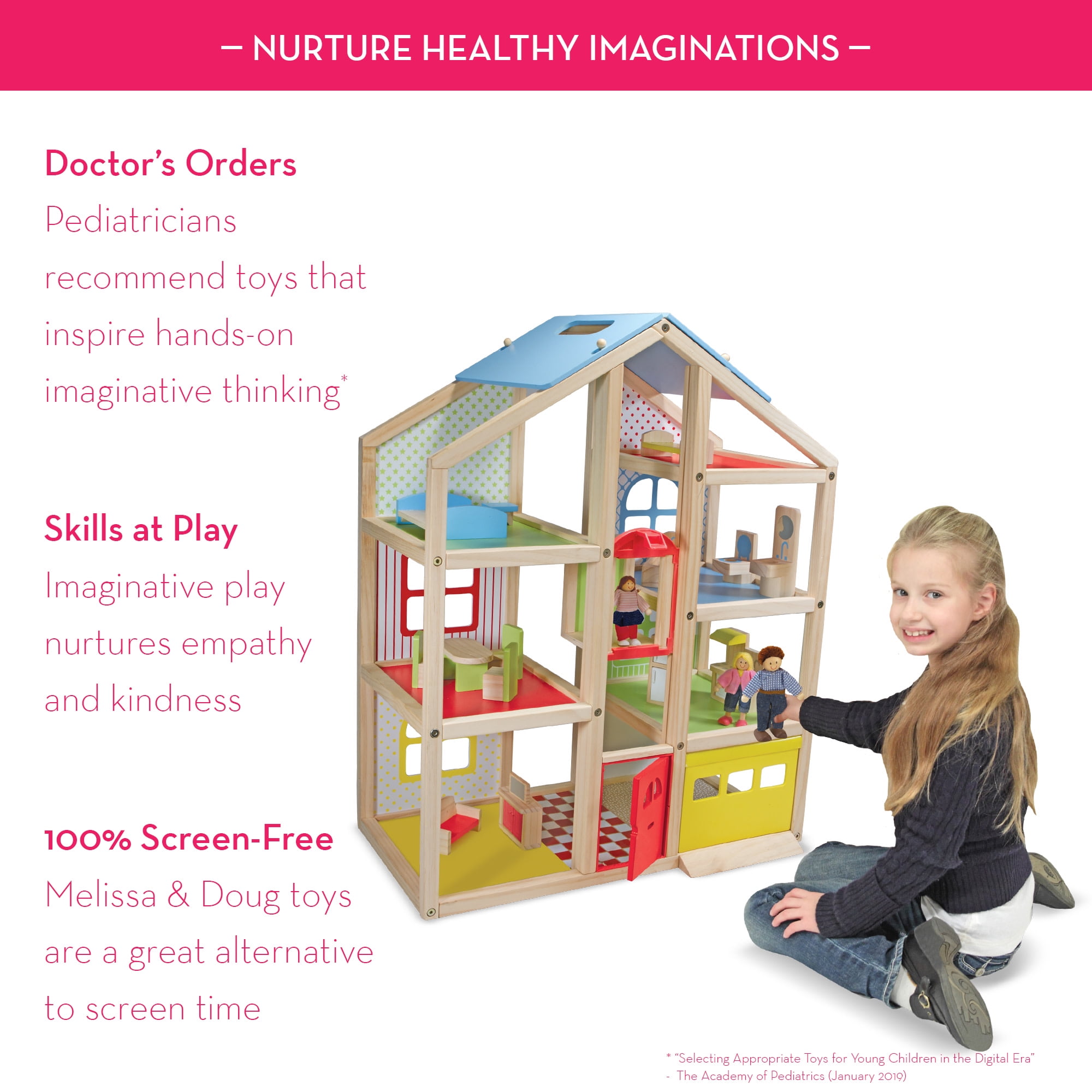 Melissa & Doug Wooden Hi-Rise Dollhouse With 15 Furniture Pieces, Garage, Working Elevator