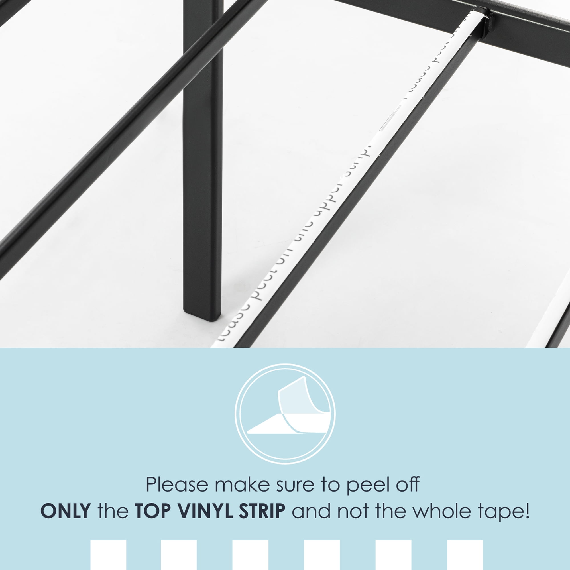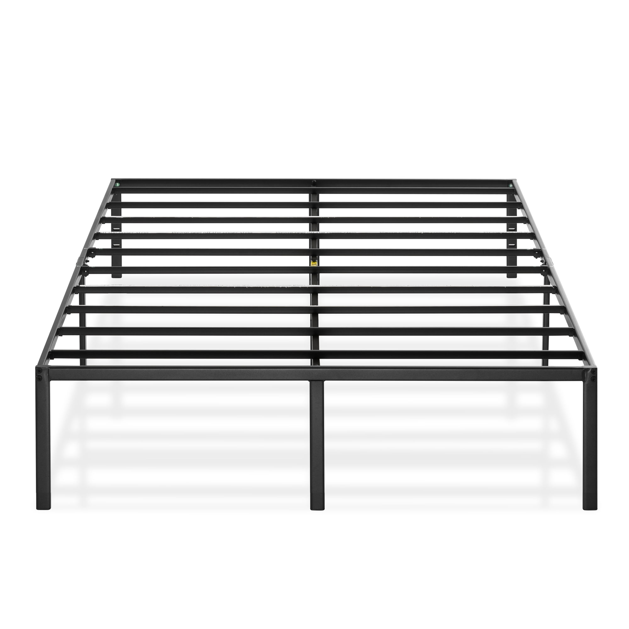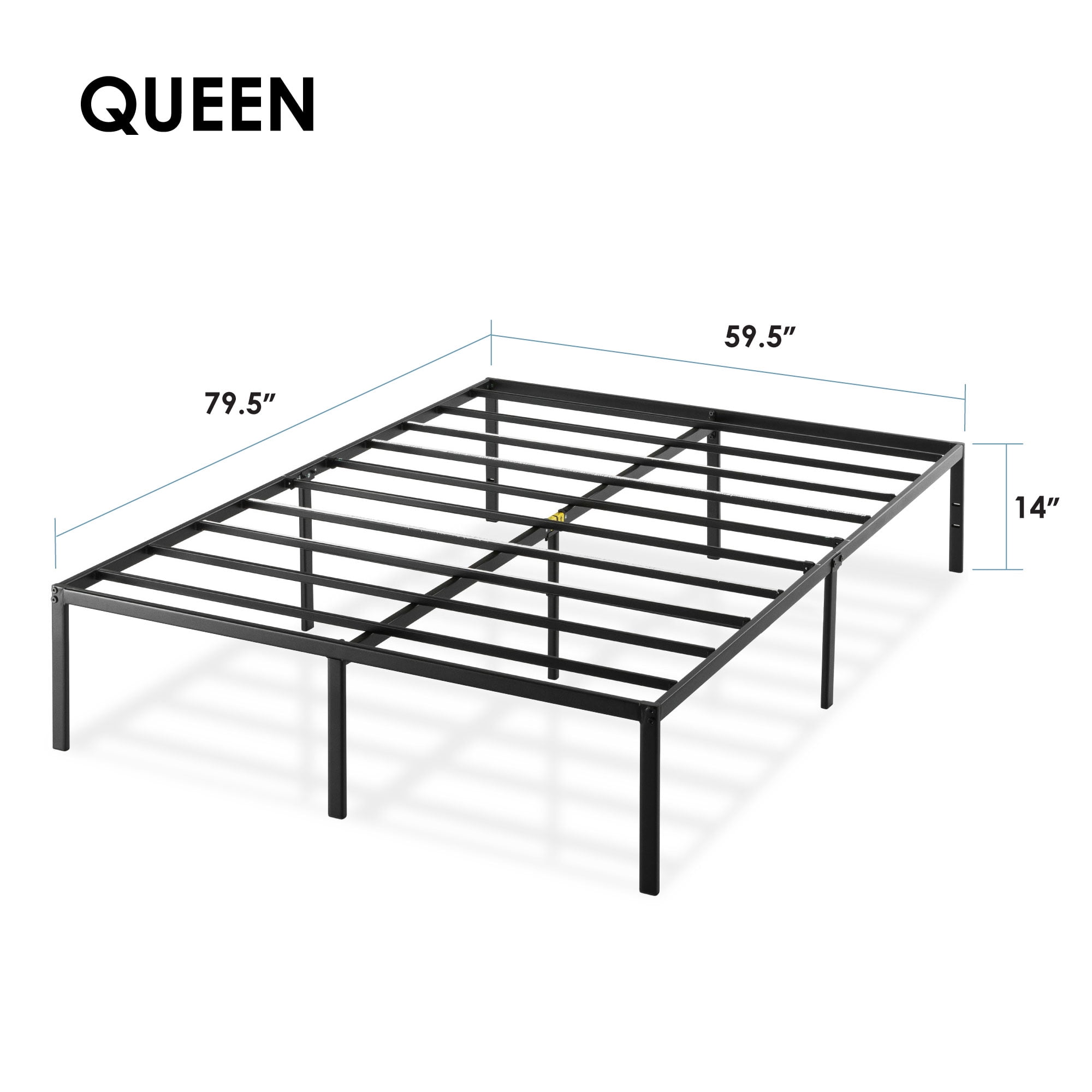 Metal platform bed with steel slat support, no box spring needed Durable and noise-free construction made with heavy duty steel Additional legs and center bar for sturdy support Easy assembly in minutes with no additional tools required 12 inch vertical clearance for convenient under bed storage space Available Sizes: Twin, Twin-XL, Full, Queen, King and California King