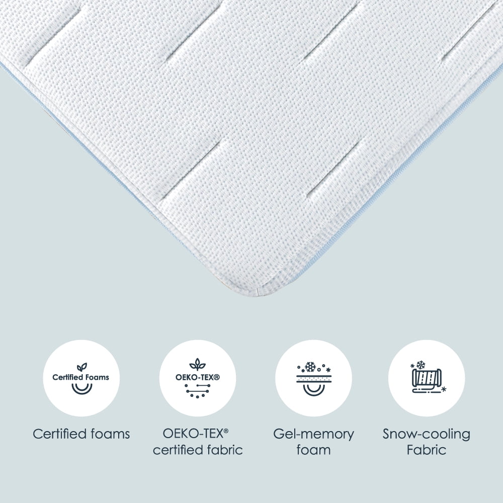 Cooling Cover – Keep the heat away with a fabric cover that’s cool to the touch Gel Infusion – Memory foam infused with gel helps reduce trapped heat for cool and refreshing sleep Quilted top with tufting provides deep sleep without the need for another mattress pad Easy to move handles along the sides Anti-slip bottom helps keep your mattress in place Mellow Quality – OEKO-TEX® certified fabric and CertiPUR-US® certified foams 10-year manufacturer’s warranty Height options: 10″, 12″ and 14″ Available in Twin, Full, Queen and King sizes Age Group: All Ages, Universal.