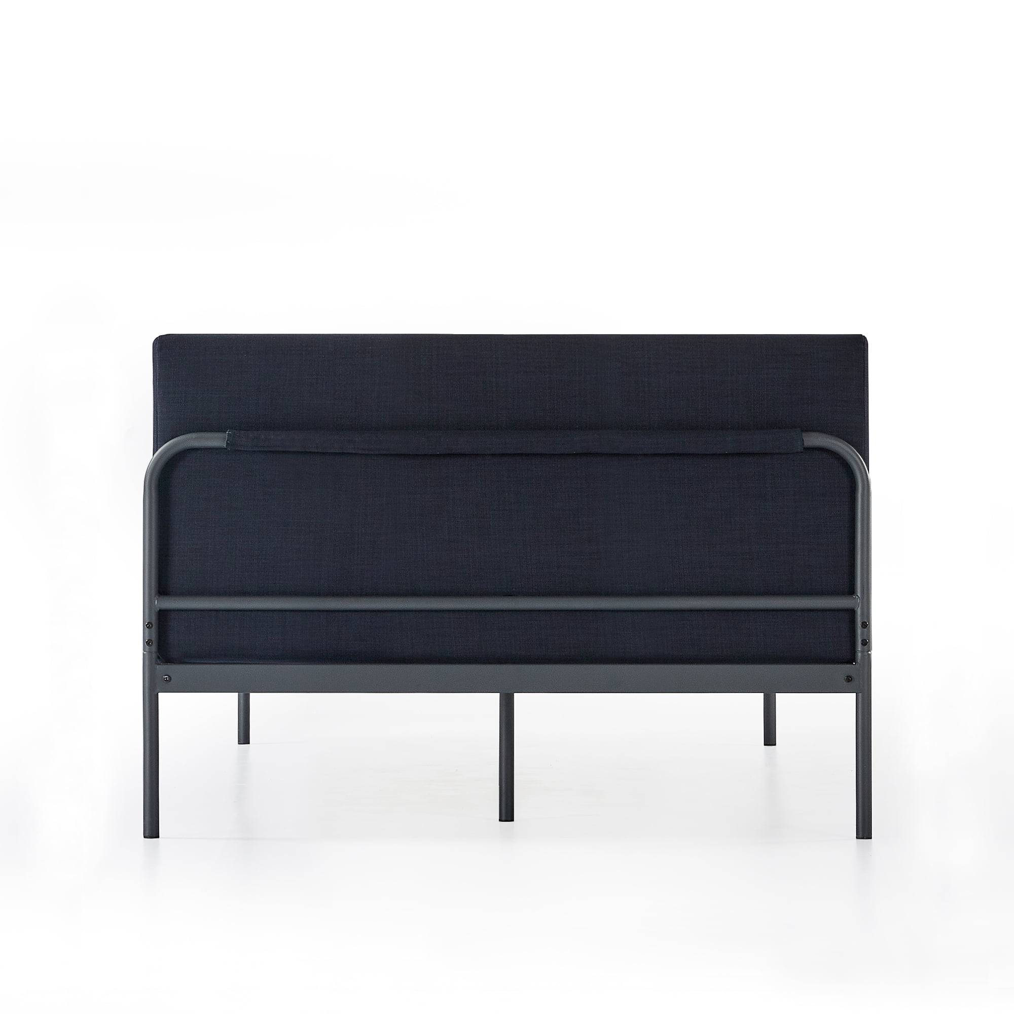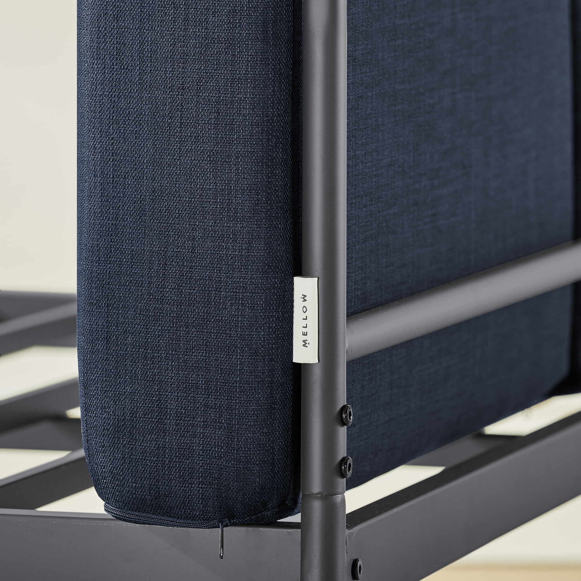 Mellow Maggie Metal Platform Bed with Upholstered Cushion Headboard, Navy, Queen